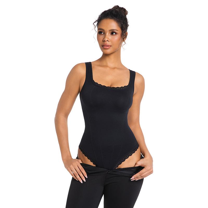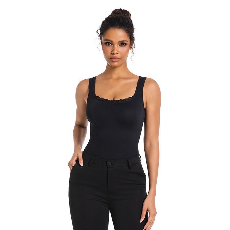 Tops Chaleco Populares Transfronterizos Europeos y Americanos para Mujer, Control de Abdomen Ajustado, Monos de Encaje Nicho para Yoga