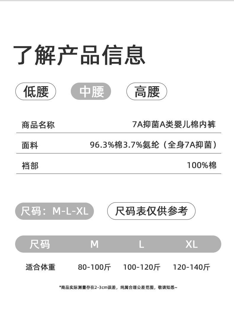 Ropa interior de algodón puro Clase A para mujer, Entrepierna de algodón completo, Cubre cadera, Calzones de algodón antibacteriano 7A para mujer, Entrepierna de algodón puro antibacteriano