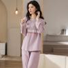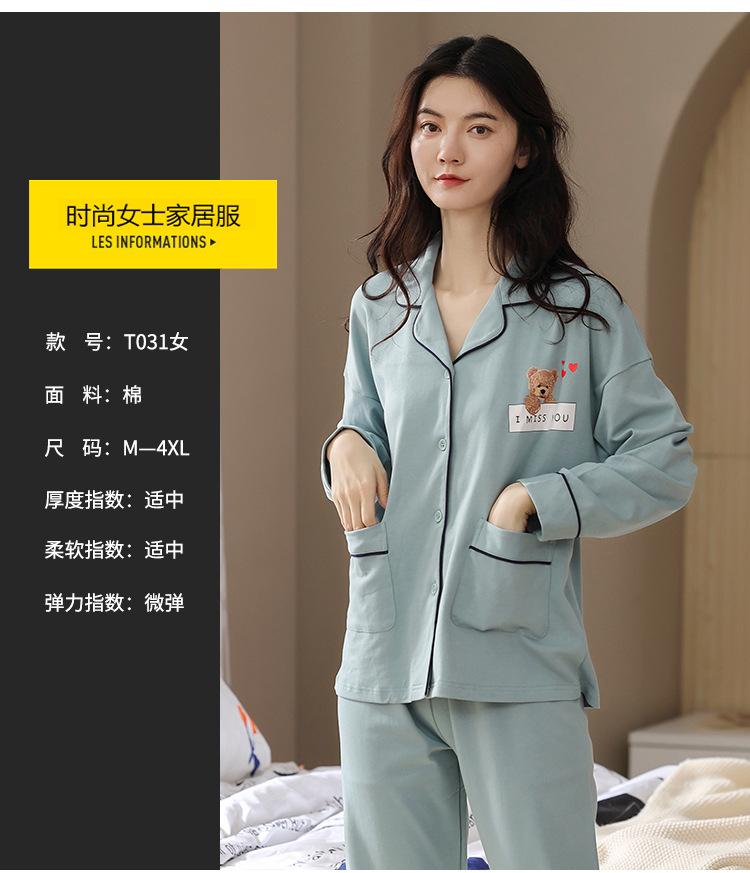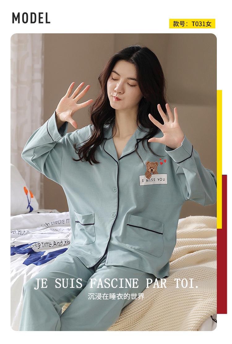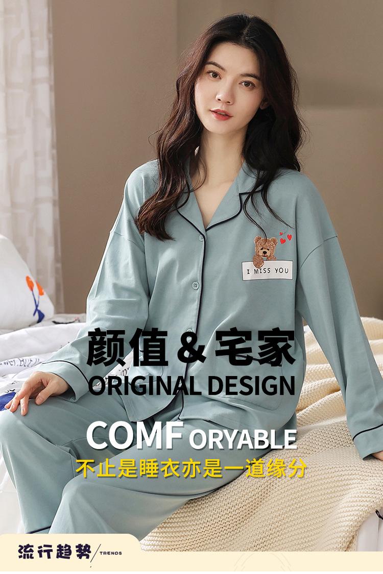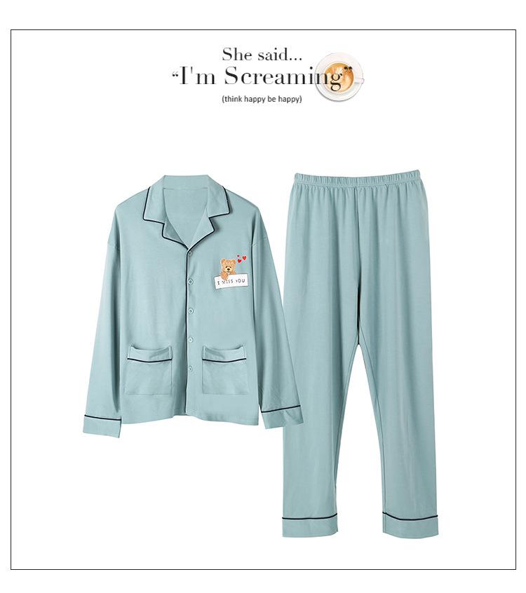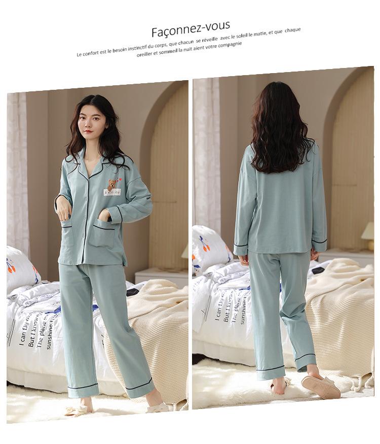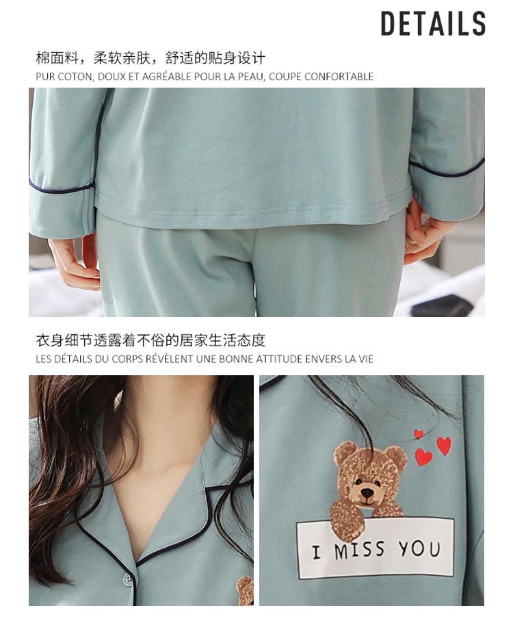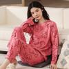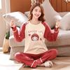 Pijama para Mujer Primavera y Otoño Manga Larga Pantalón Largo Set Multicuello Estampado de Dibujos Animados Dulce y Lindo Se Puede Usar Afuera Ropa de Casa para Señoras
