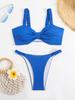 Traje de Baño de Playa de Comercio Exterior Europeo y Americano con Almohadilla en el Pecho Bikini Moderno Sexy Dividido Tejido de Alta Elasticidad Casual Color Sólido