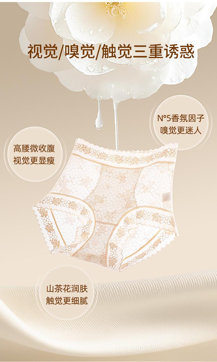 Ropa Interior para Mujer con Fragancia a Camelia 10A Antibacterial Cintura Alta Control de Abdomen Levanta Caderas Transpirable Sin Costuras Talla Grande Calzones Triángulo Mujer