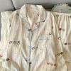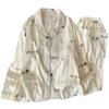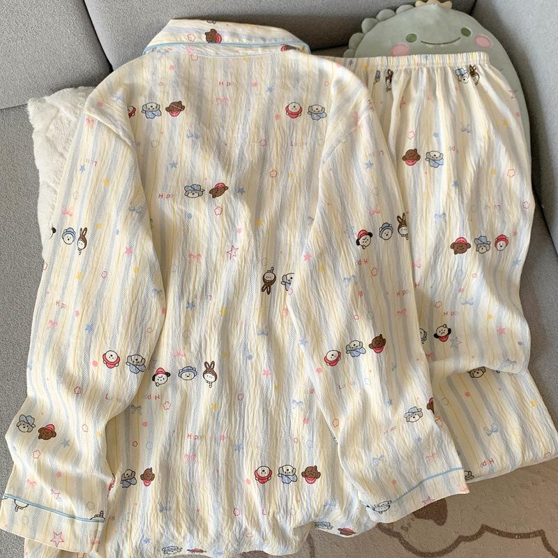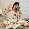 Fabricante Transfronterizo Tallas Grandes Pijamas Mujer Otoño Primavera Manga Larga Pantalón Largo Suave Lindo Rayado Oso Adorable Ropa de Casa Conjunto de Dos Piezas
