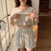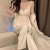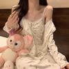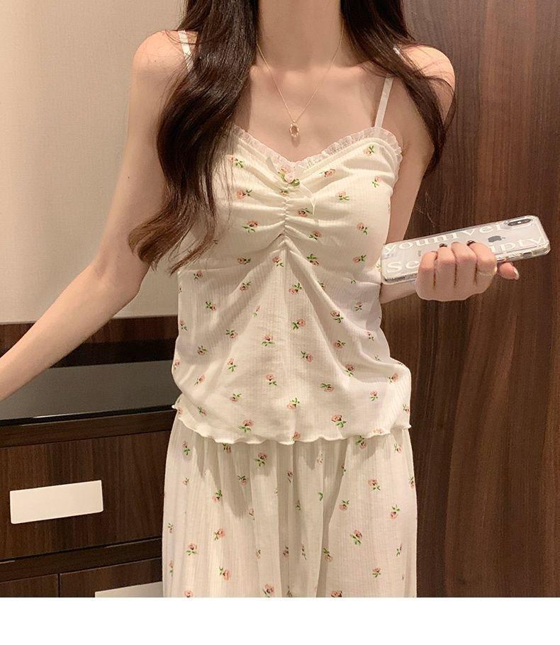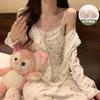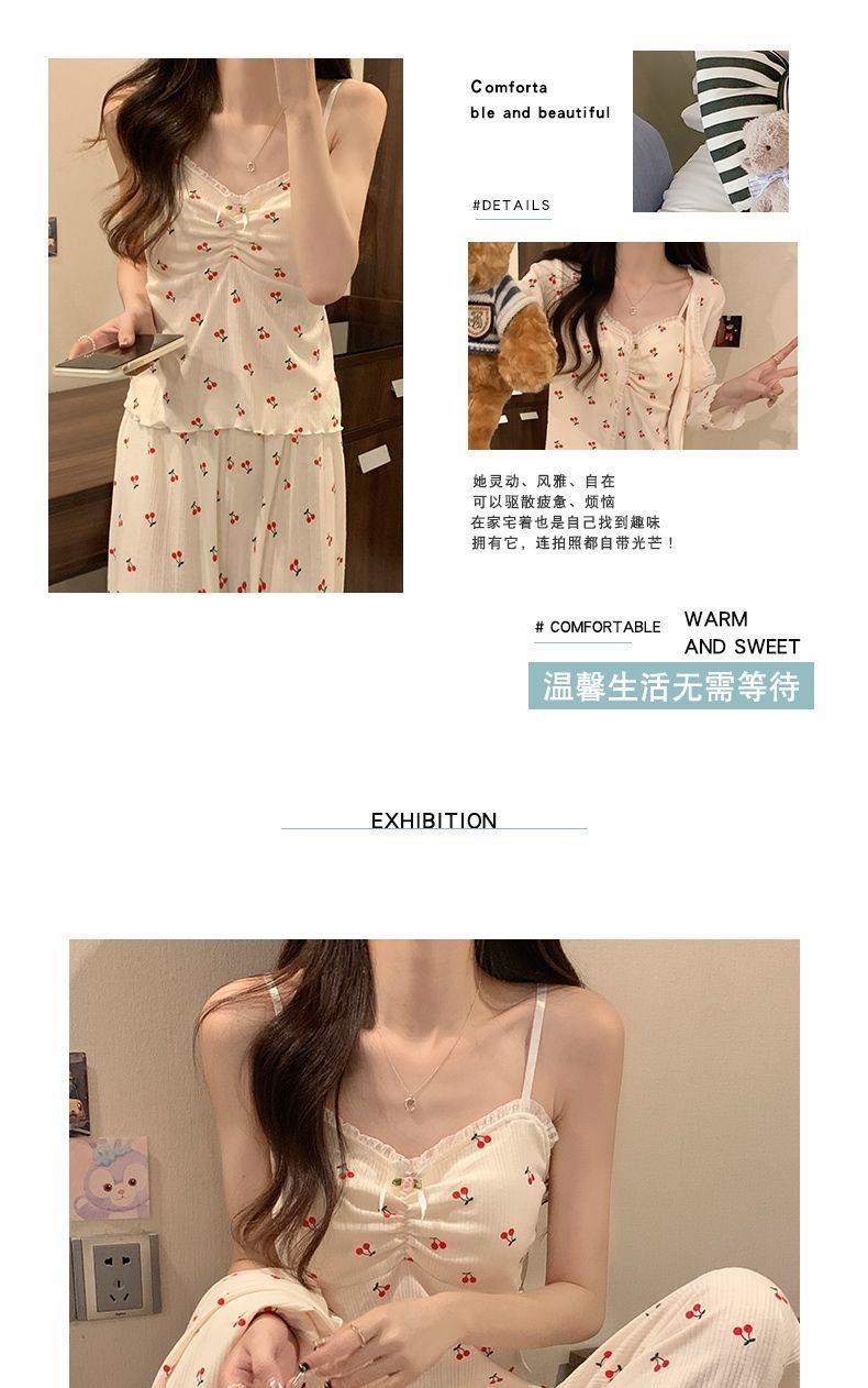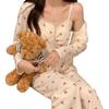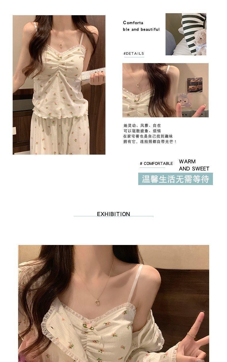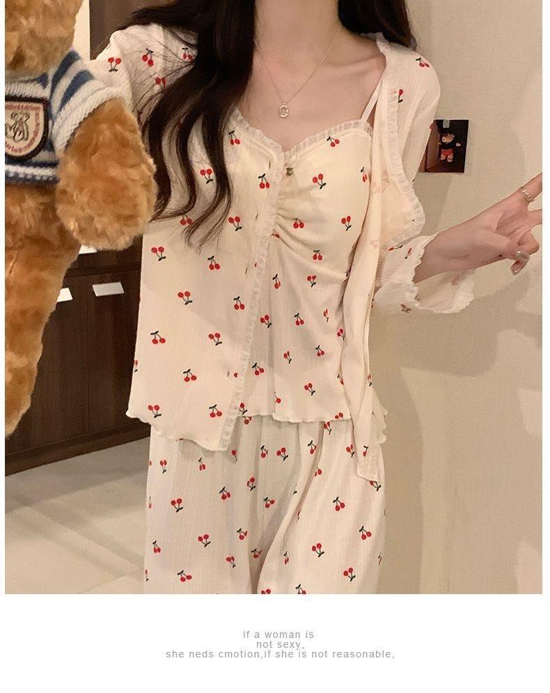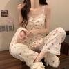 Pijama con Almohadillas para el Busto para Mujer Primavera y Otoño Estilo Pure Lust Pantalones de Manga Larga Dulce Casual Delgada Pequeña Conjunto para Estar en Casa