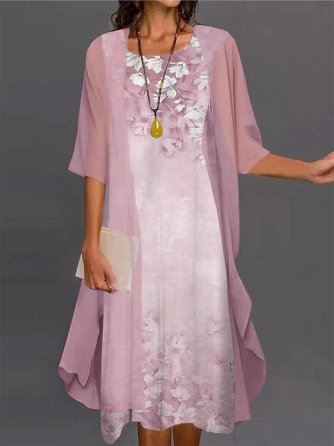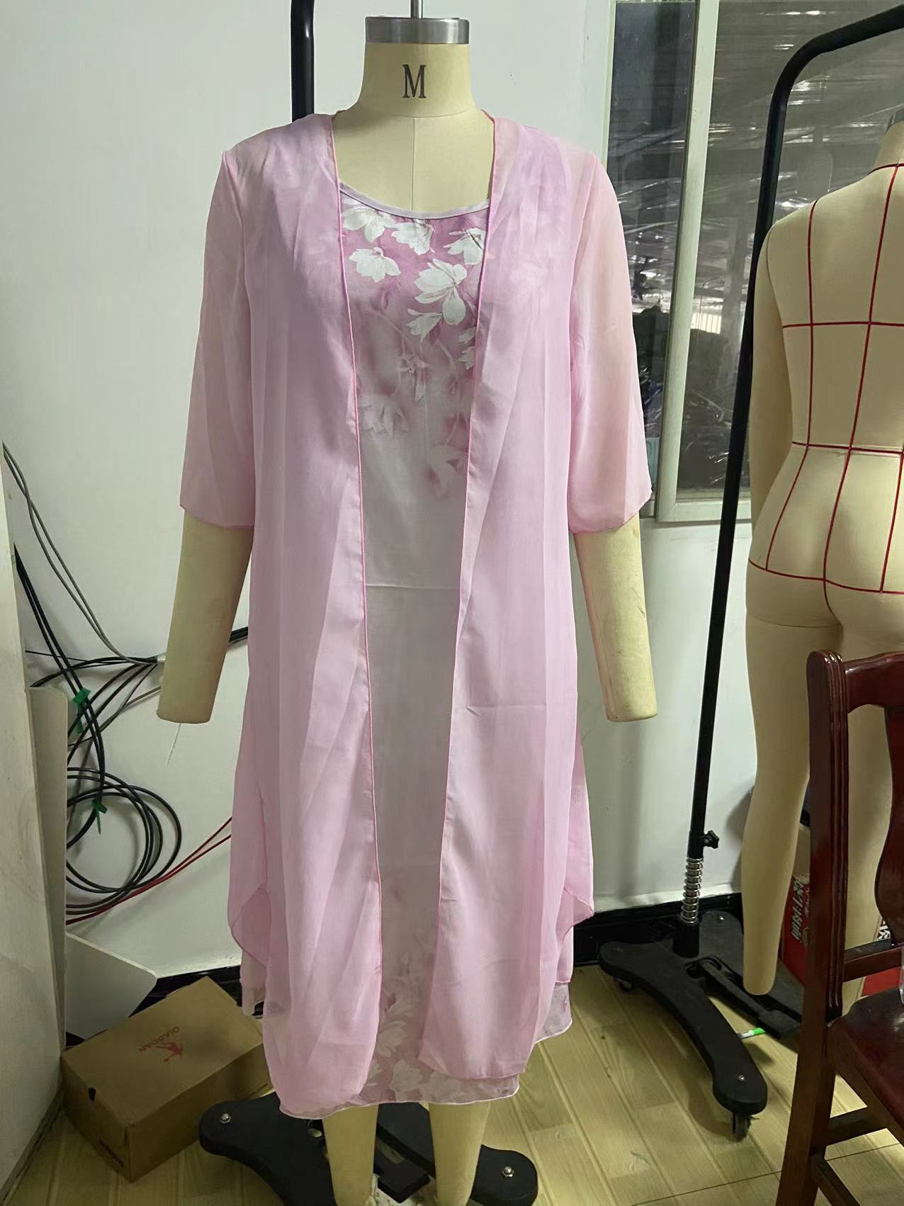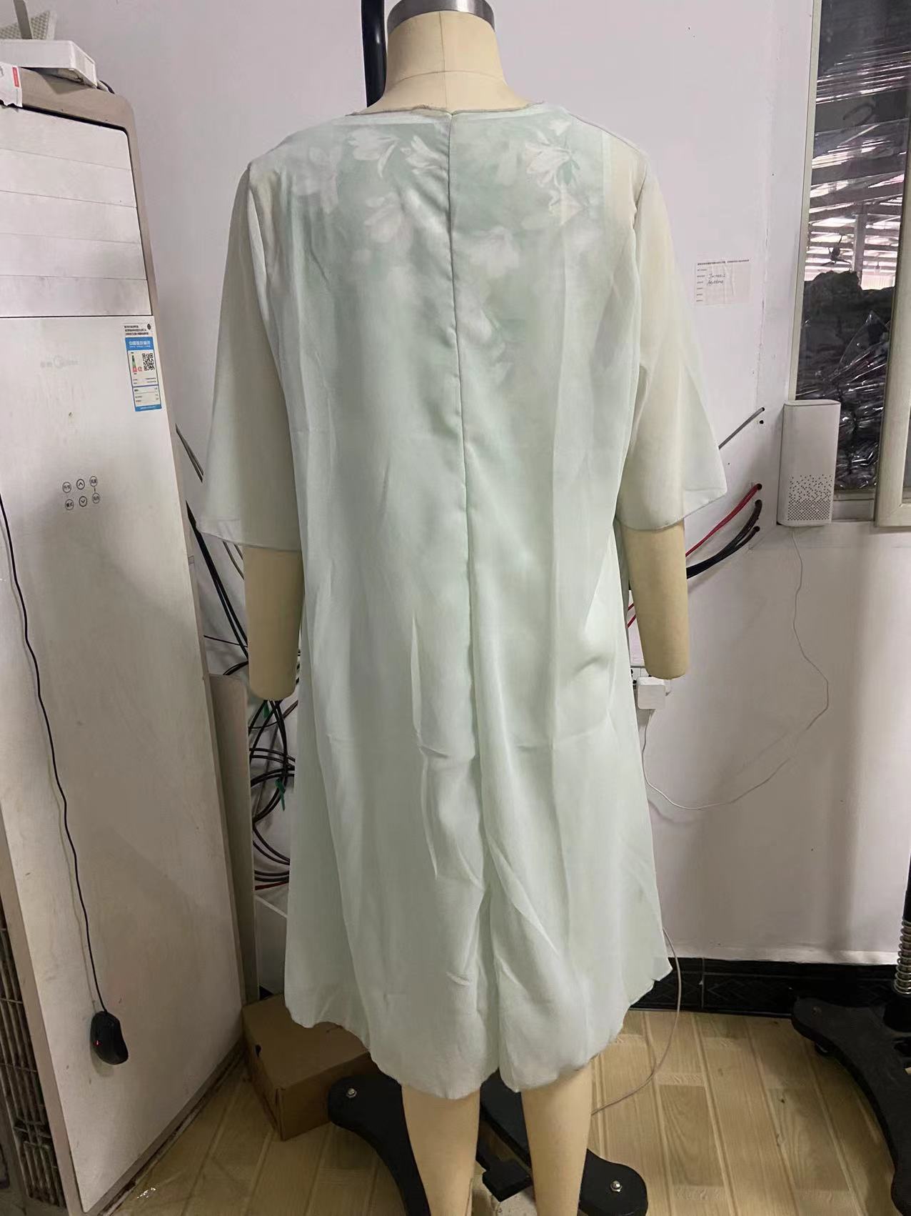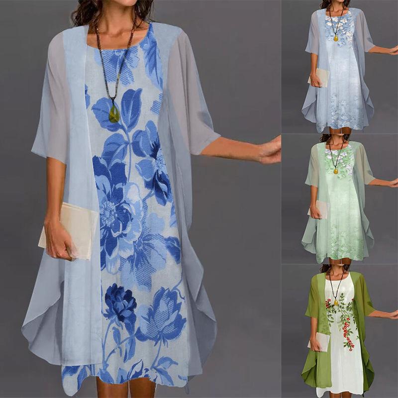 2024 Vestido Casual de Verano Europeo y Americano de Amazon para Mujer Conjunto de Dos Piezas Estampado de Flores y Hierba Cuello Redondo Falda Larga Ajustada para Mujer