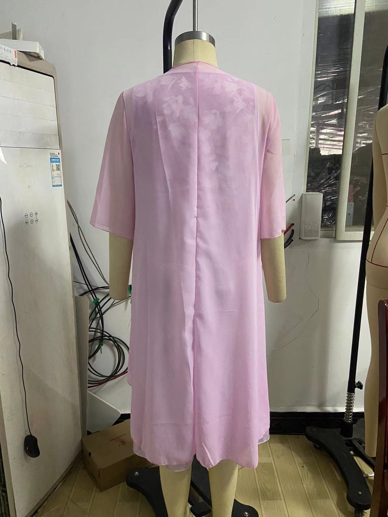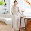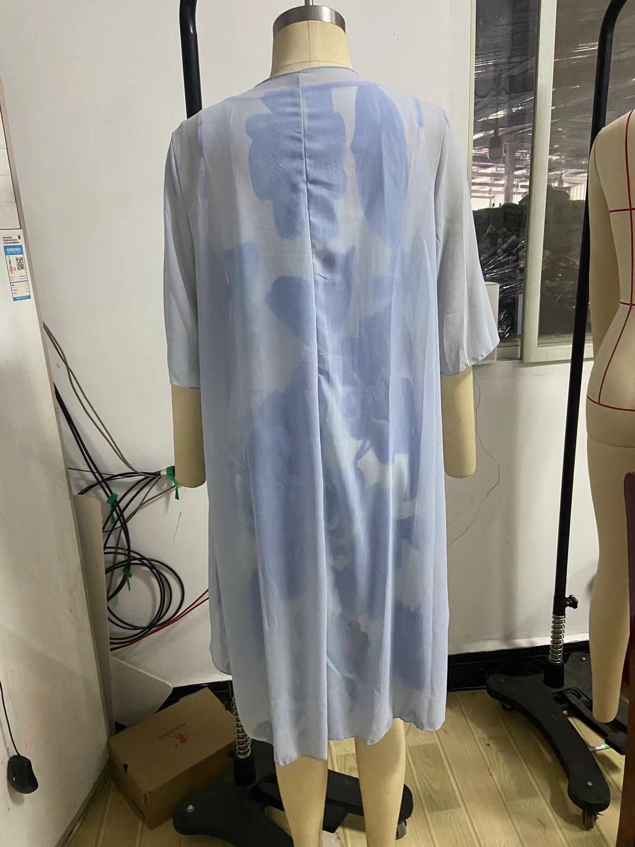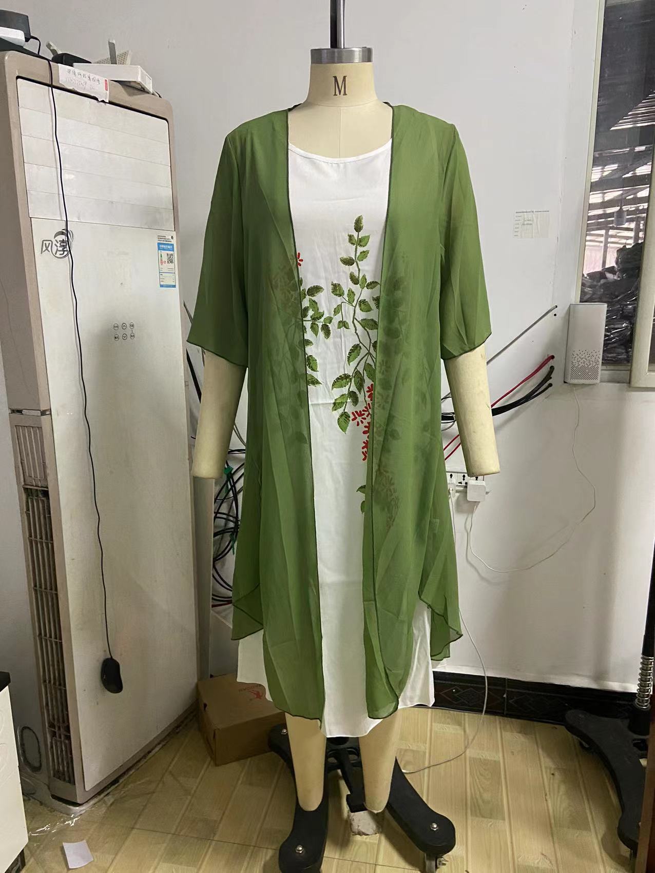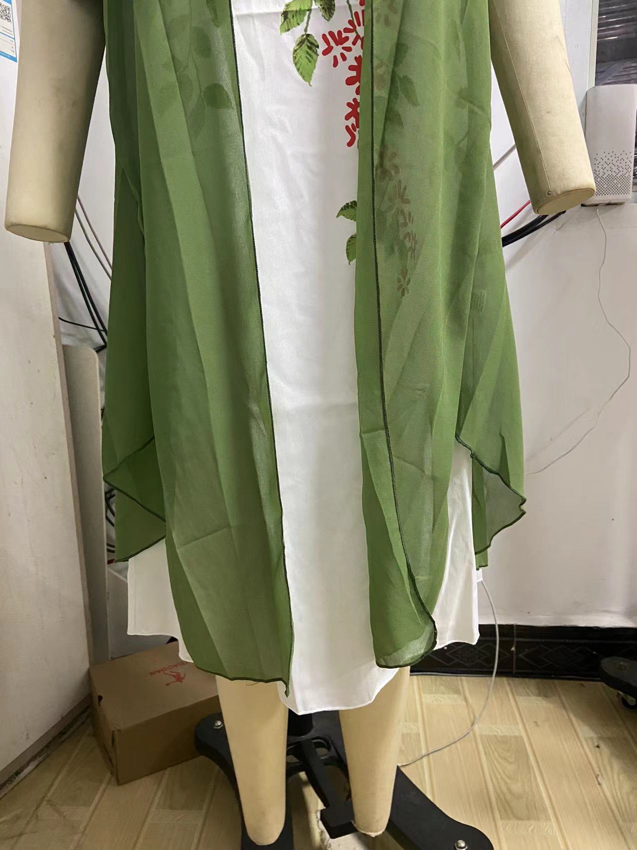 2024 Vestido Casual de Verano Europeo y Americano de Amazon para Mujer Conjunto de Dos Piezas Estampado de Flores y Hierba Cuello Redondo Falda Larga Ajustada para Mujer