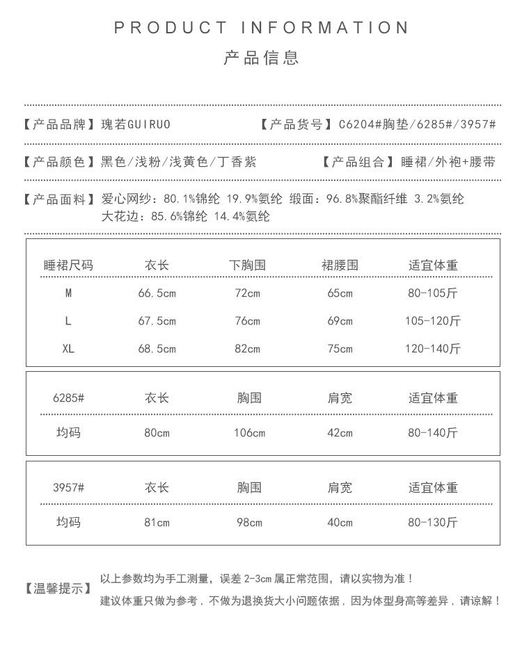 C6204 black (nightgown), 6285 black (outer robe + belt), C6204 Lilac Purple (Nightgown), 6285 Lilac Purple (Ou...