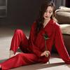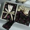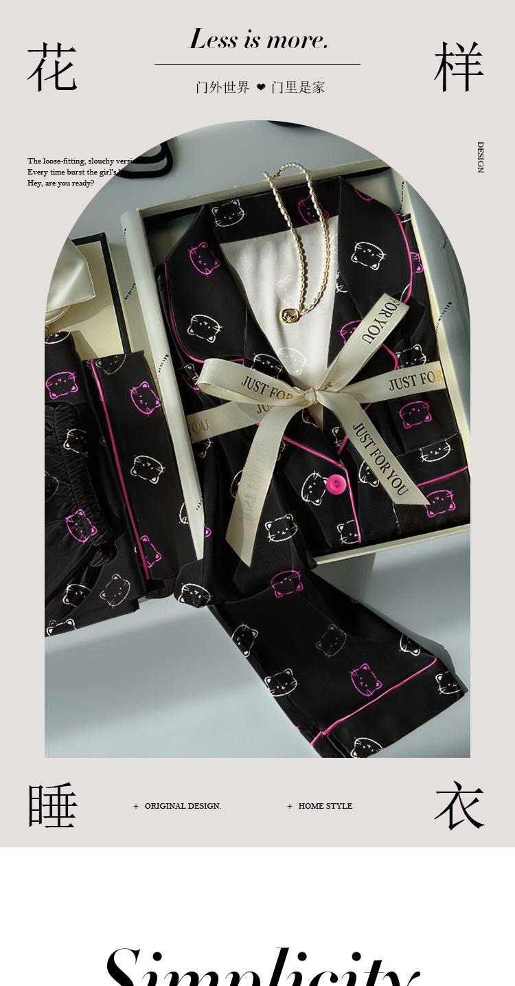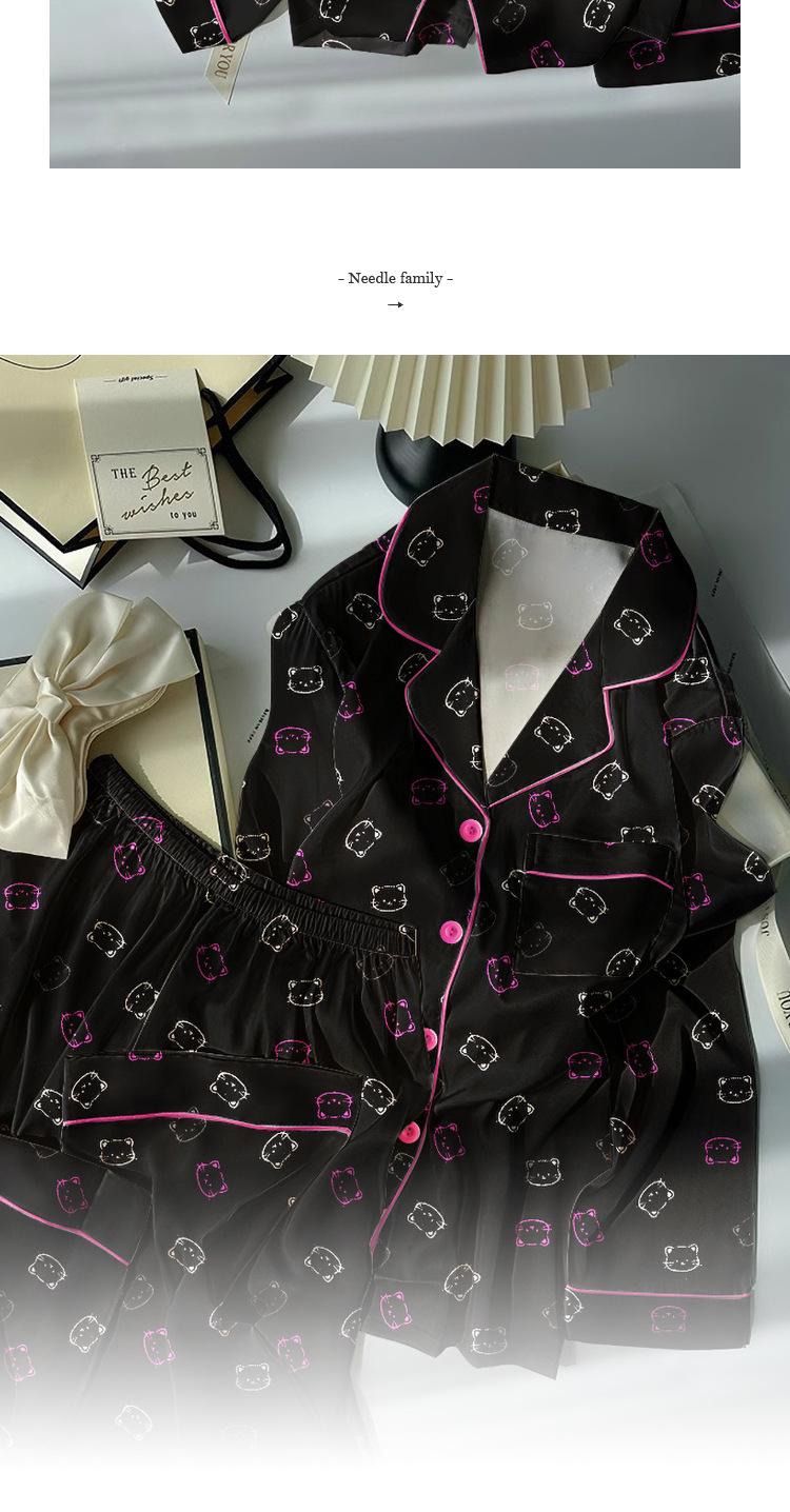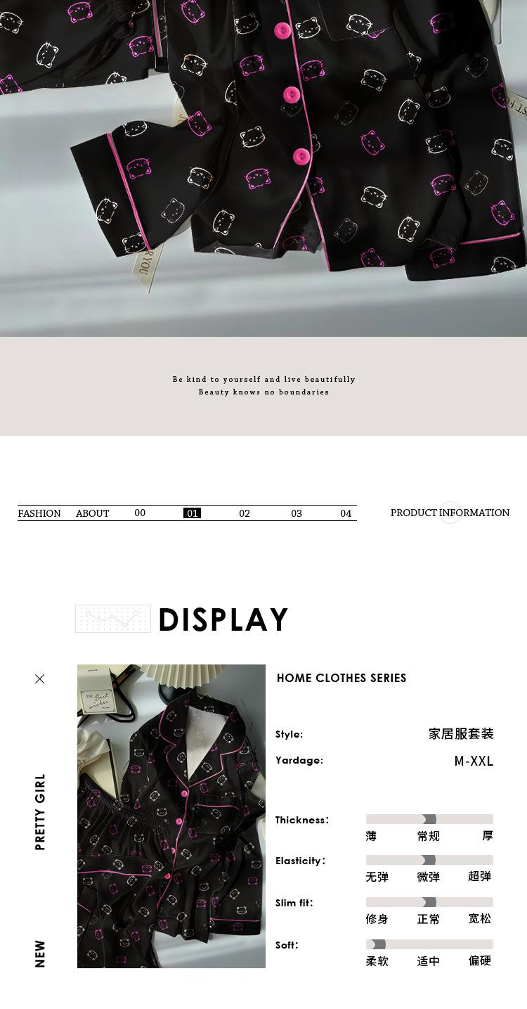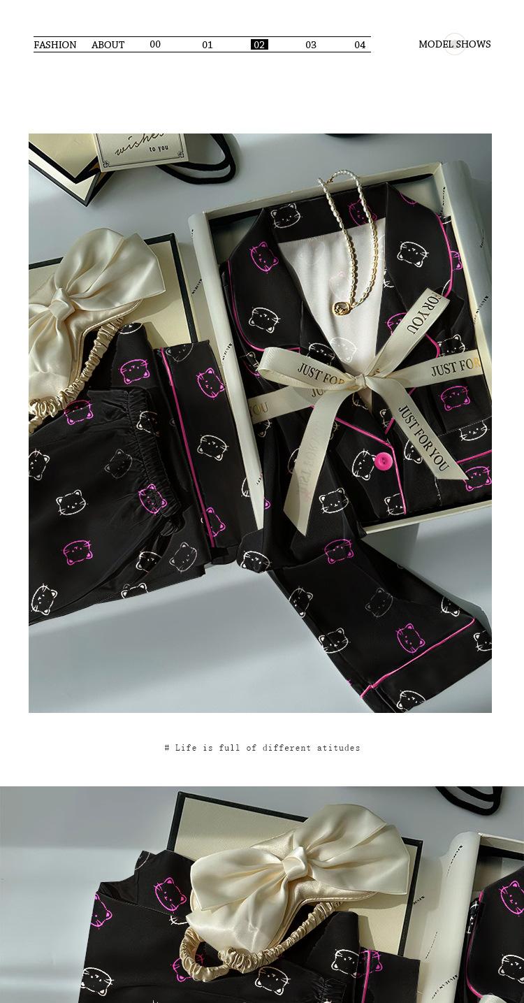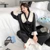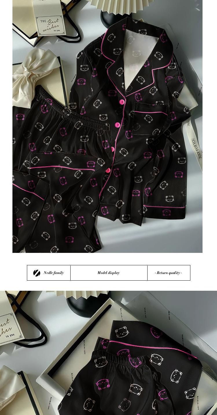 Otoño Nuevo Pijama de Mujer de Alta Gama Negro Gatito de Dibujos Animados Satén de Seda de Hielo Ropa para el Hogar Conjunto de Manga Larga Venta al por Mayor