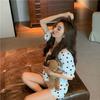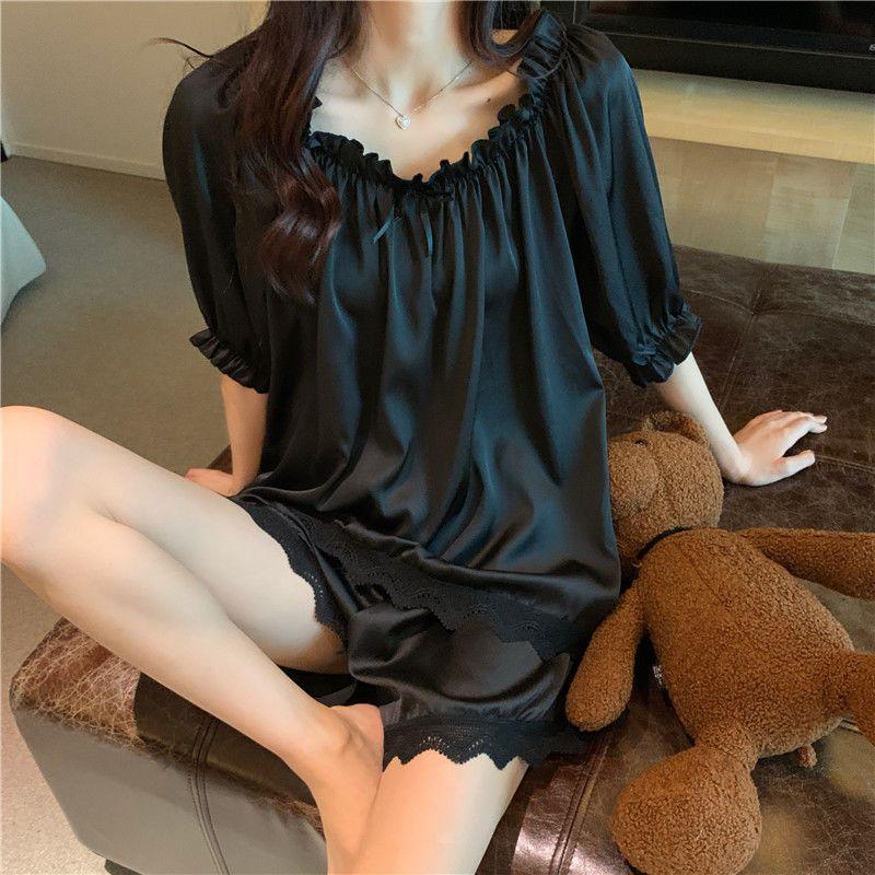 Pijama Verano Seda de Hielo Delgada Estilo Princesa Manga Corta Shorts Conjunto de Dos Piezas Corte Color Sólido Dulce y Encantador Ropa de Casa