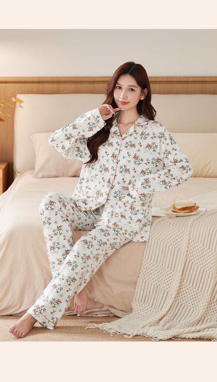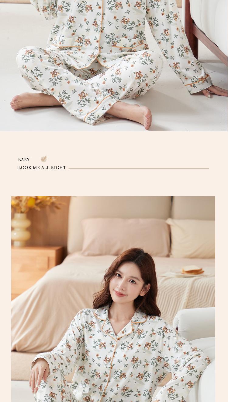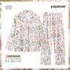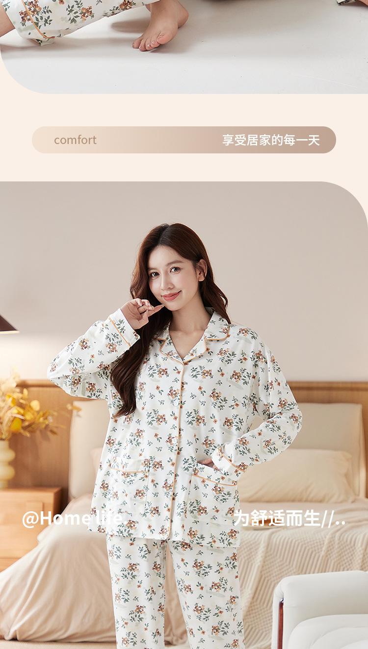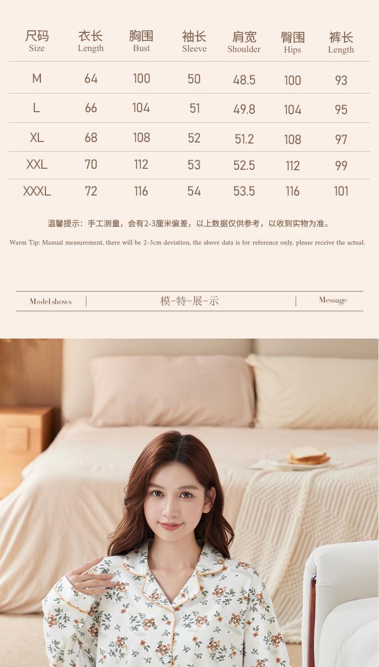 Temperamento floral de alta gama holgado talla grande mamá mediana edad ropa de casa imitación algodón pijama casual conjunto de dos piezas manga larga mayoreo