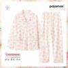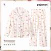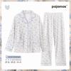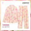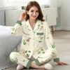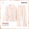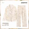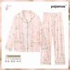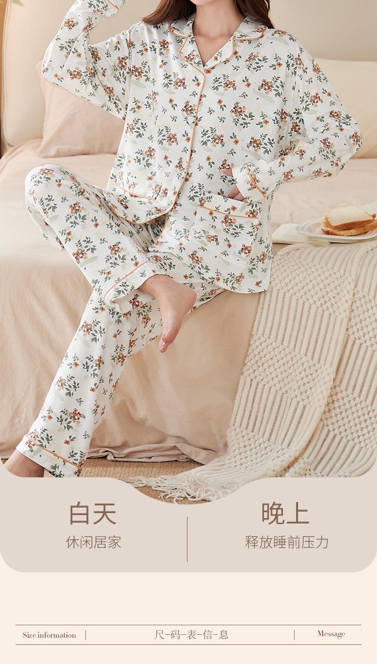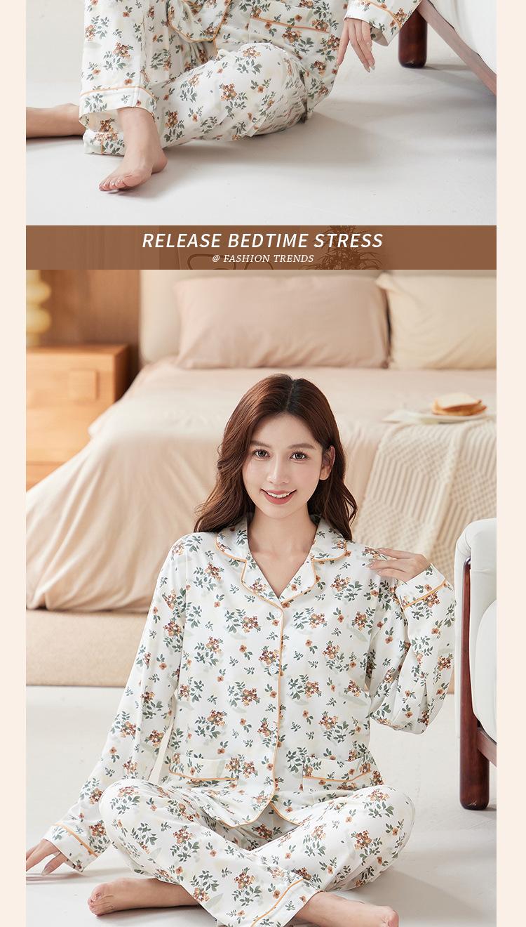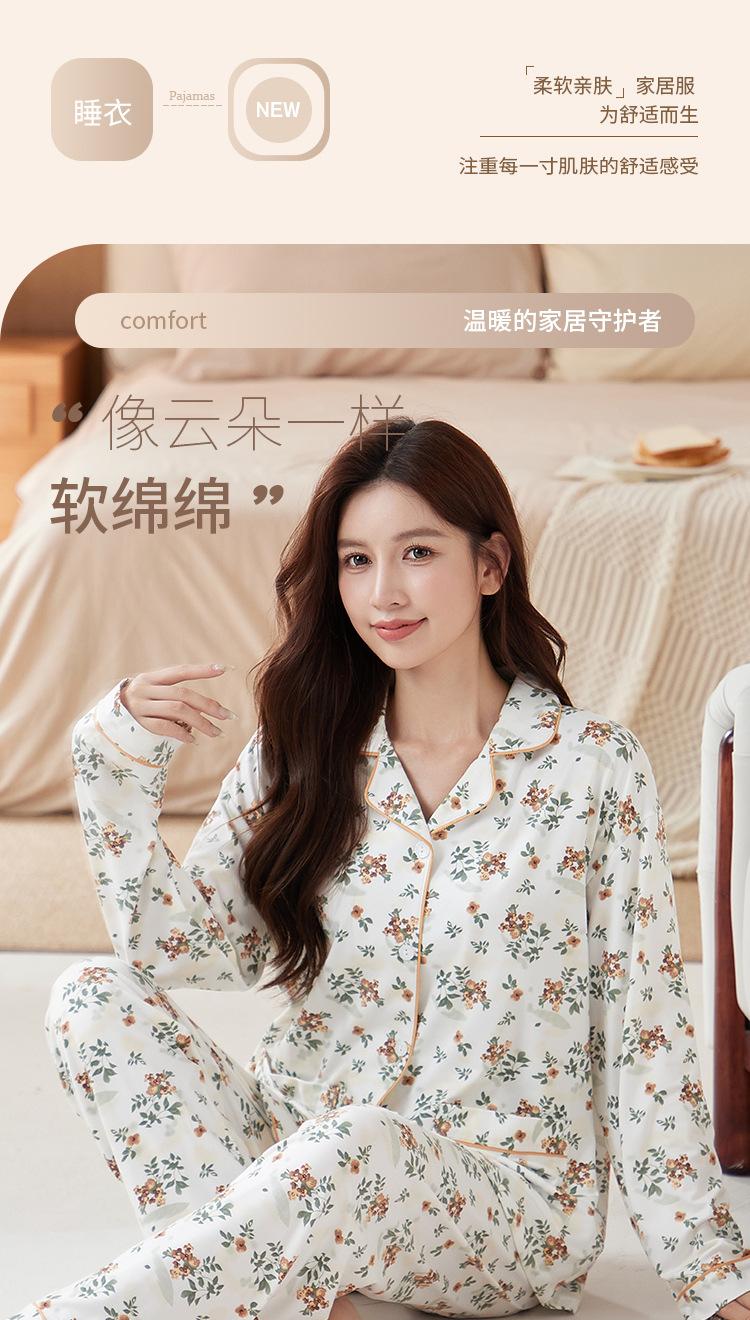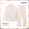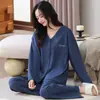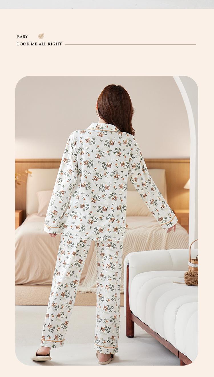 Temperamento floral de alta gama holgado talla grande mamá mediana edad ropa de casa imitación algodón pijama casual conjunto de dos piezas manga larga mayoreo