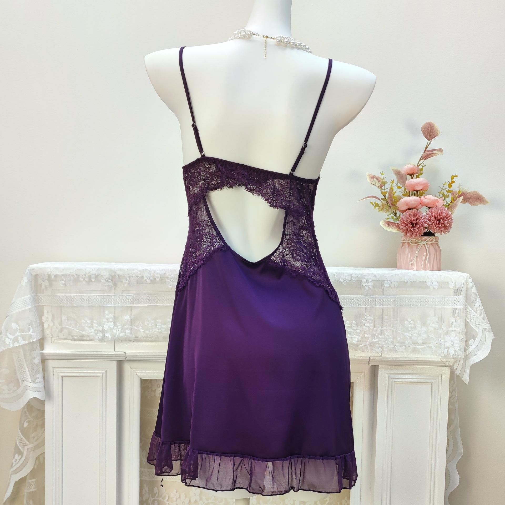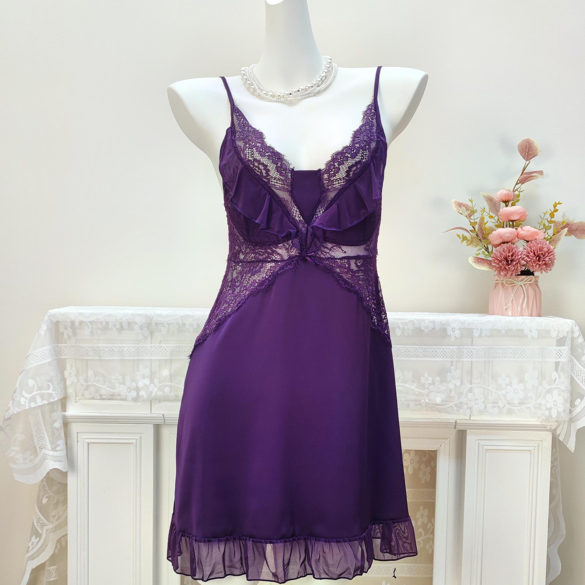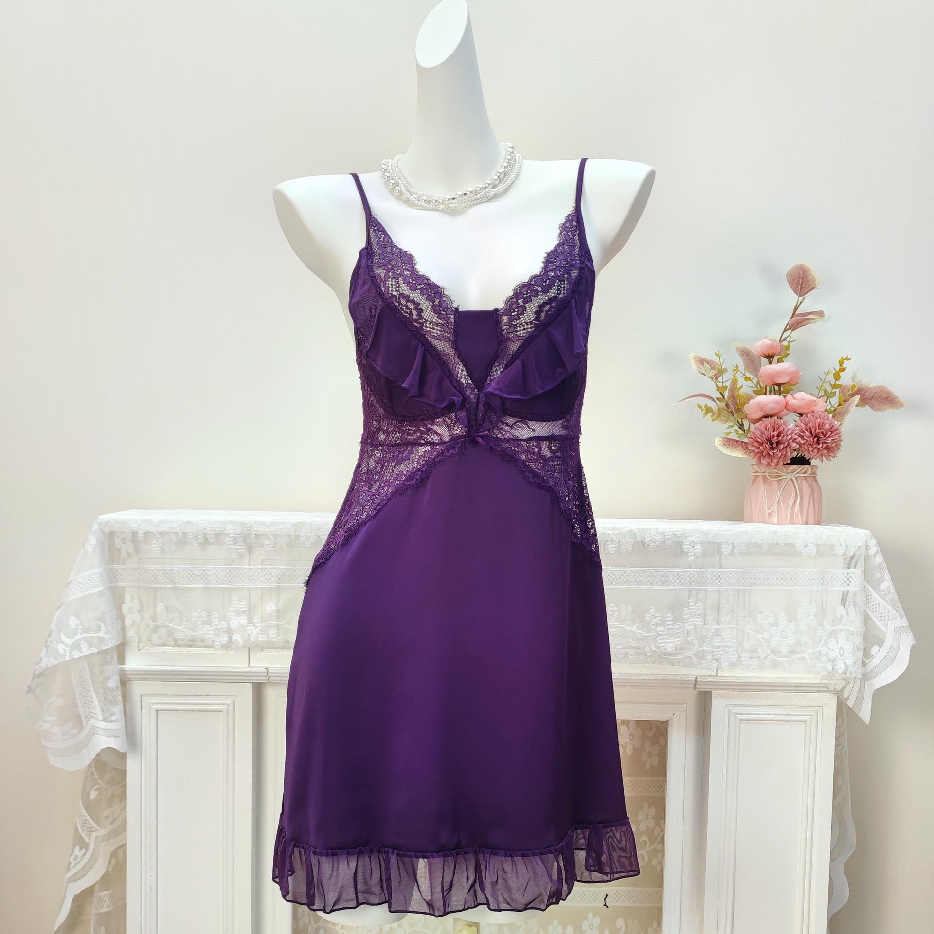 Nuevo Sexy Ropa de Casa Francesa Estilo Deseo Puro Pijama Camisola Camisón de Lujo Ligero Seda de Hielo Pijama Morado Dropshipping