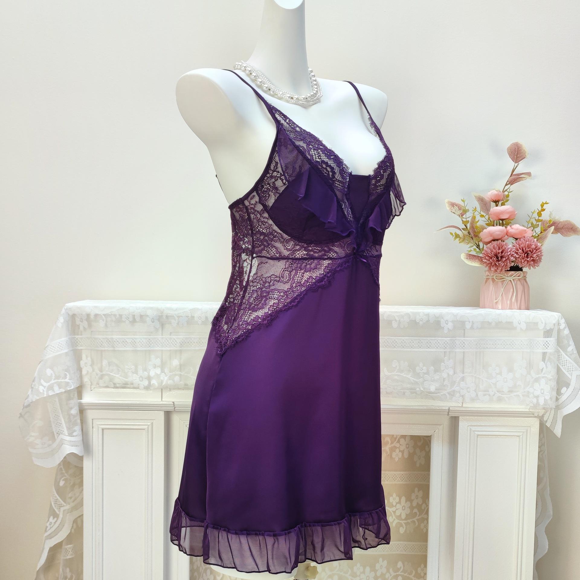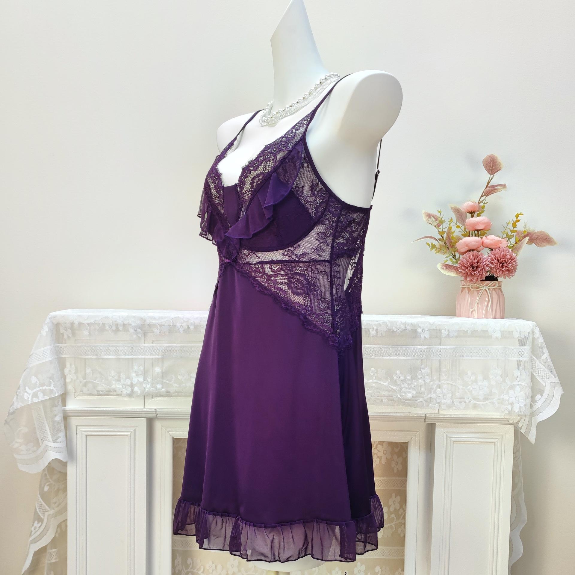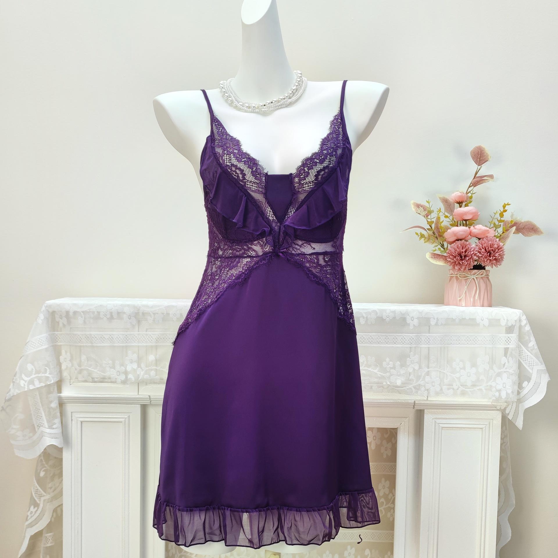 Nuevo Sexy Ropa de Casa Francesa Estilo Deseo Puro Pijama Camisola Camisón de Lujo Ligero Seda de Hielo Pijama Morado Dropshipping