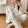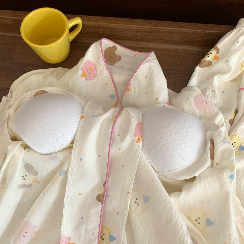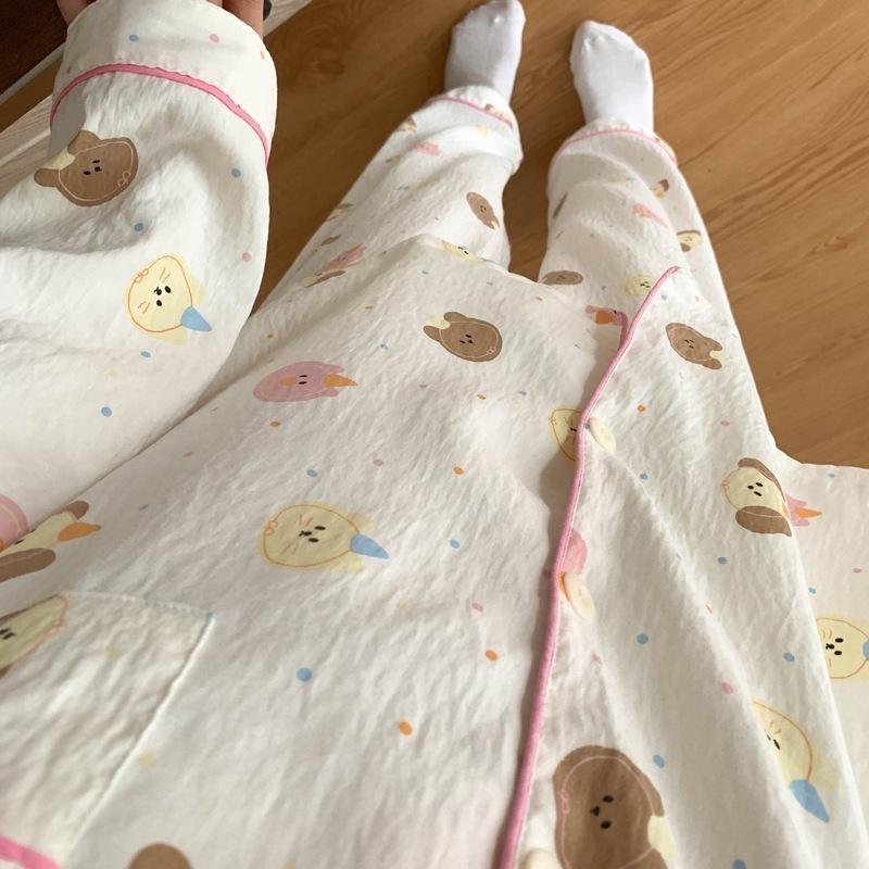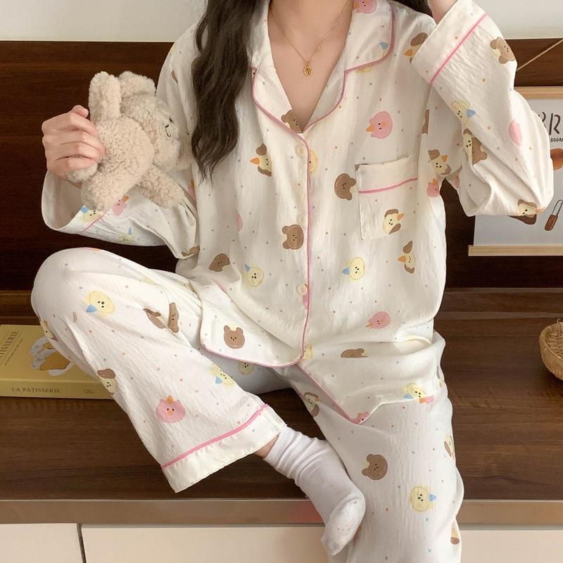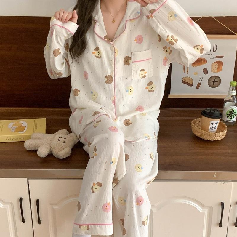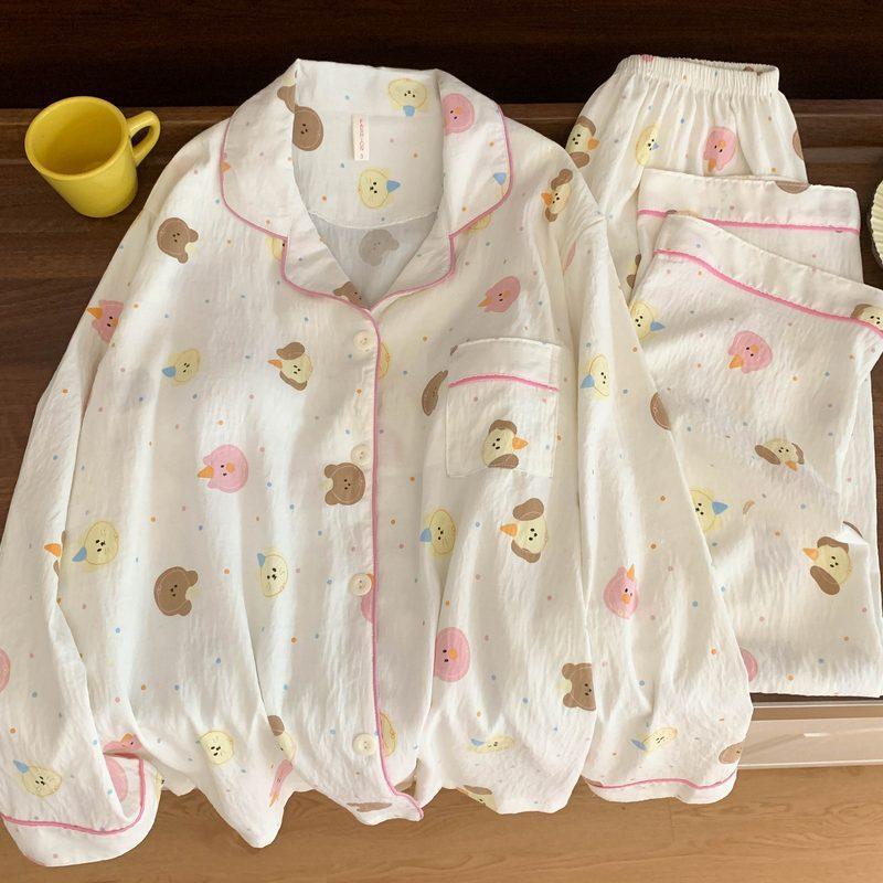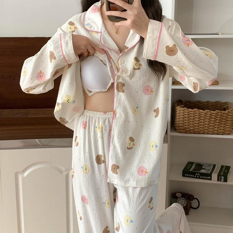 Pijama de fábrica al por mayor para mujer primavera y otoño manga larga pantalones caricatura lunares oso ropa para el hogar talla grande con almohadilla en el pecho traje