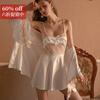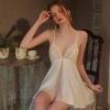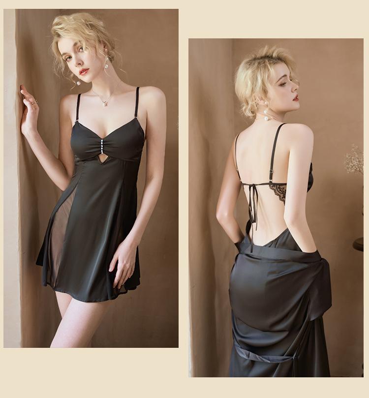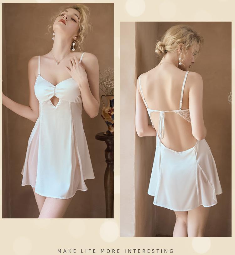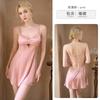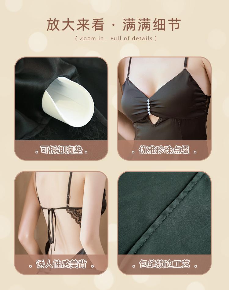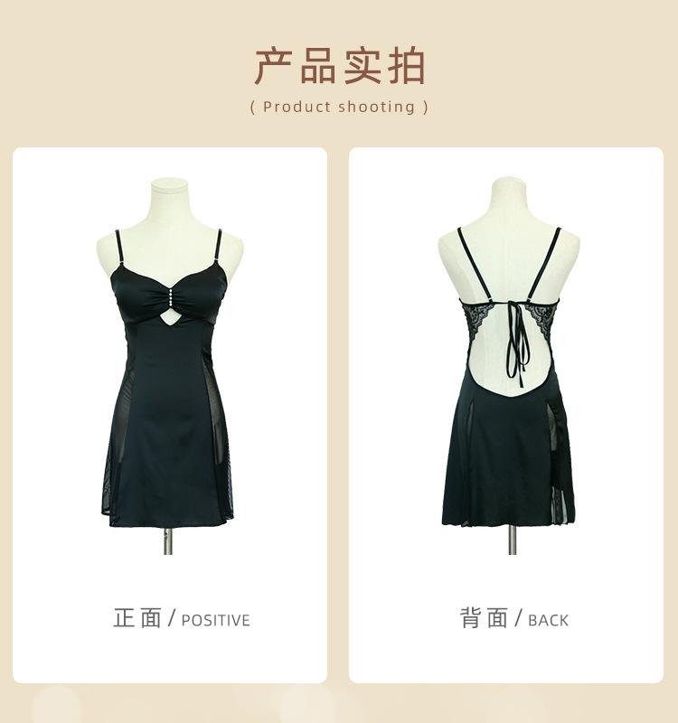 Camisón sexy con encaje y empalme de malla, tentación brumosa, lazo en la espalda, ajustable, almohadillas para el pecho removibles 3130
