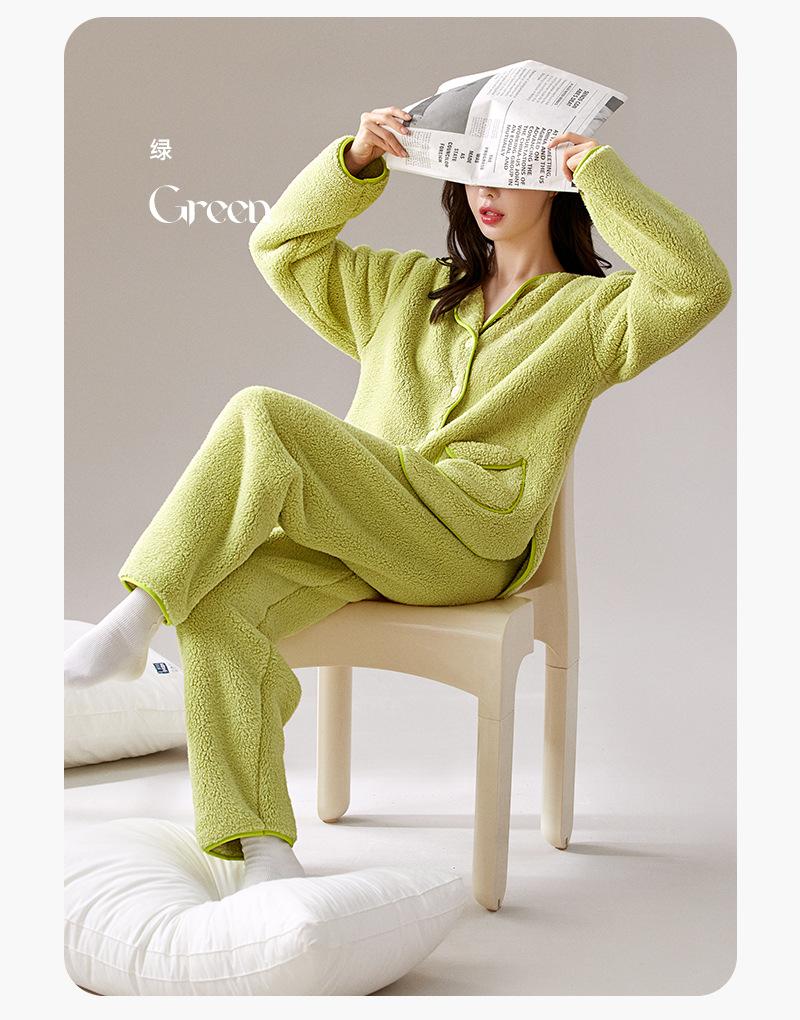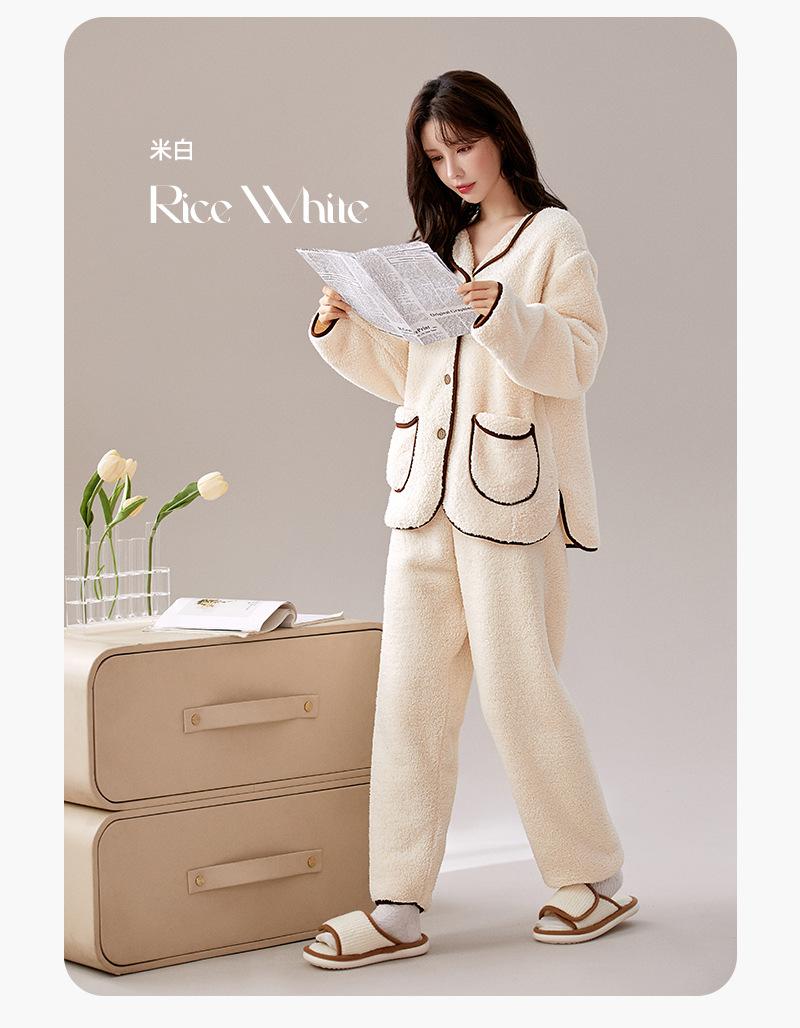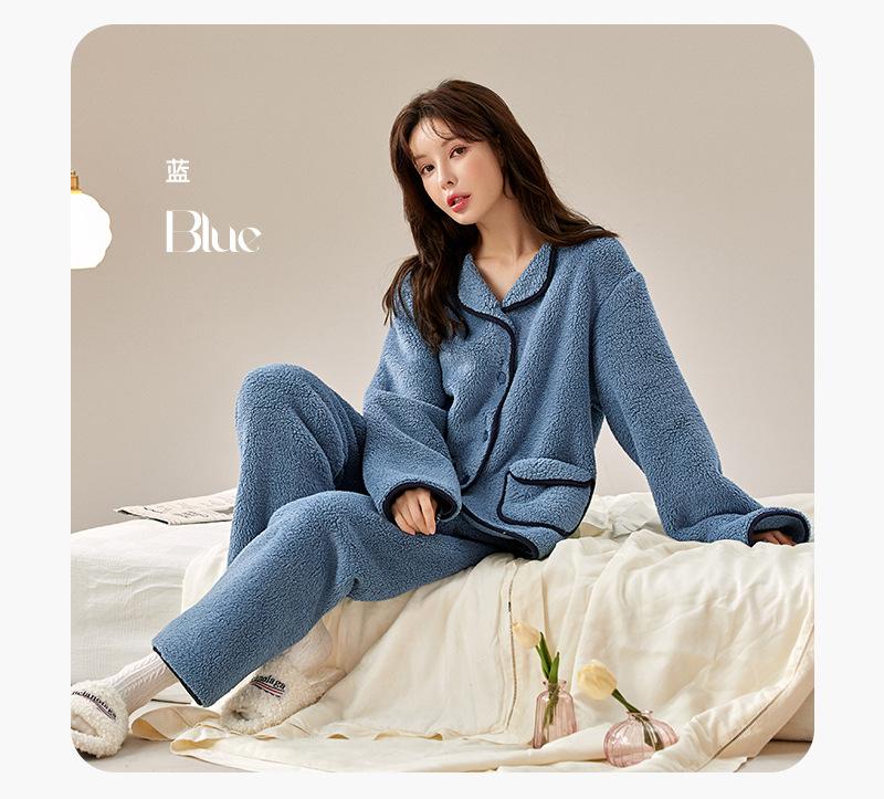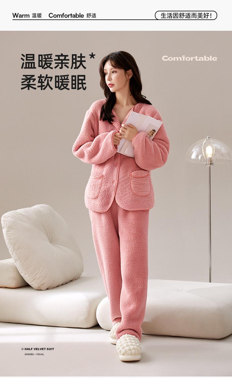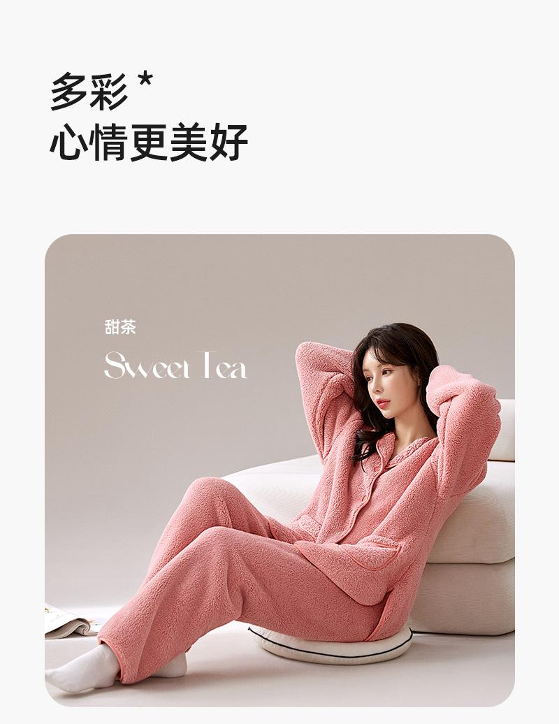 Pijama de Vellón Coral Yu Zhaolin para Mujer Otoño e Invierno con Forro Polar Engrosado Cálido Ropa de Exterior Traje de Ropa para el Hogar