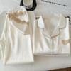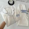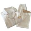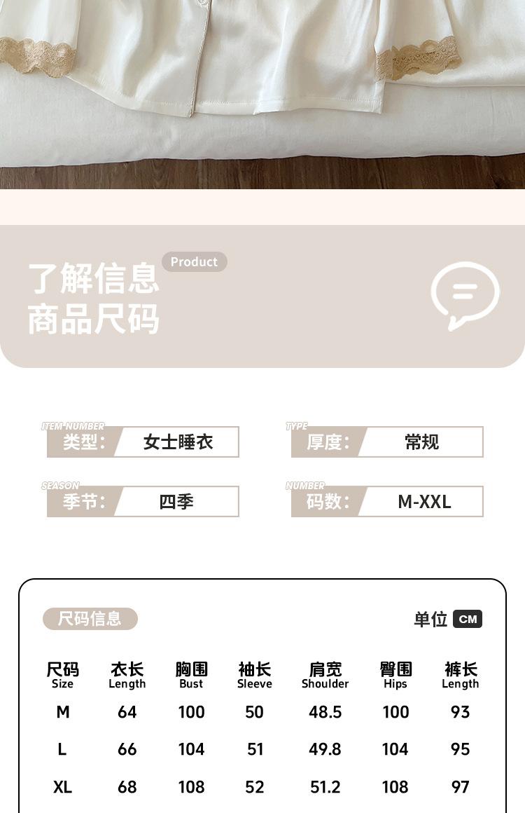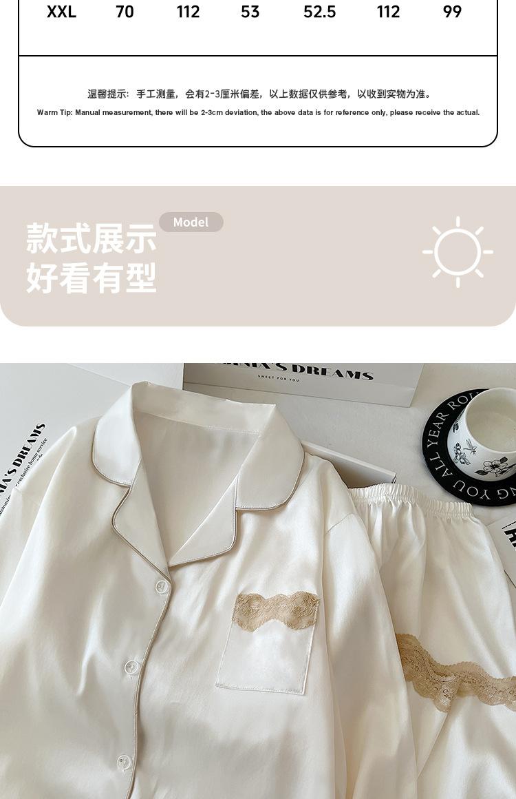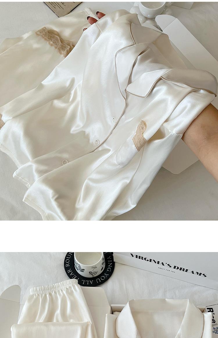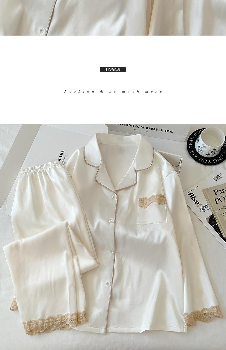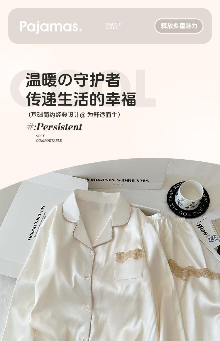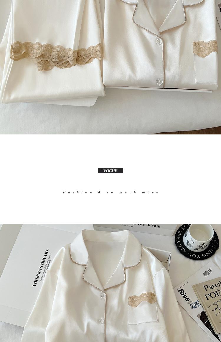 Pijama de Seda de Hielo para Mujer Estilo Primavera y Otoño de Alta Gama Color Sólido con Encaje Manga Larga Conjunto Delgado Ropa de Casa Foto Real Venta al Mayoreo