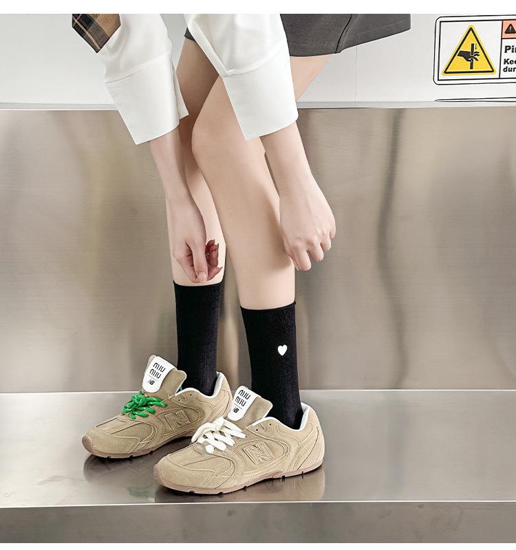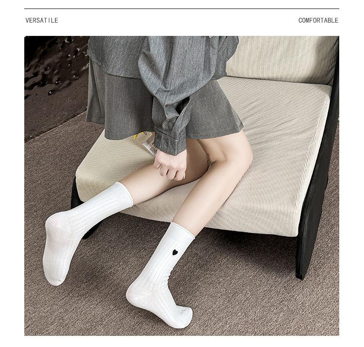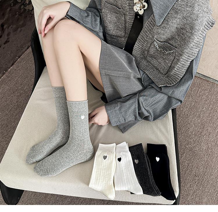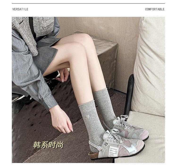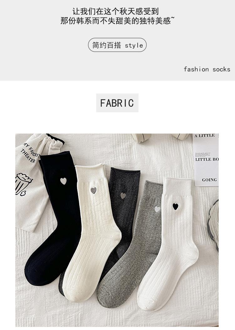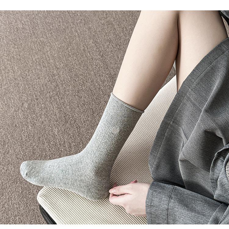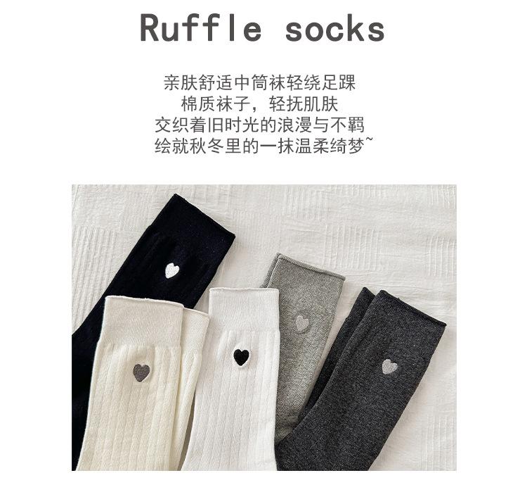 Calcetines de otoño e invierno para mujer de algodón con borde enrollado, calcetines de felpa, bordado de corazón, color sólido, calcetines de algodón para mujer hasta la mitad de la pantorrilla, venta al por mayor en Zhuji