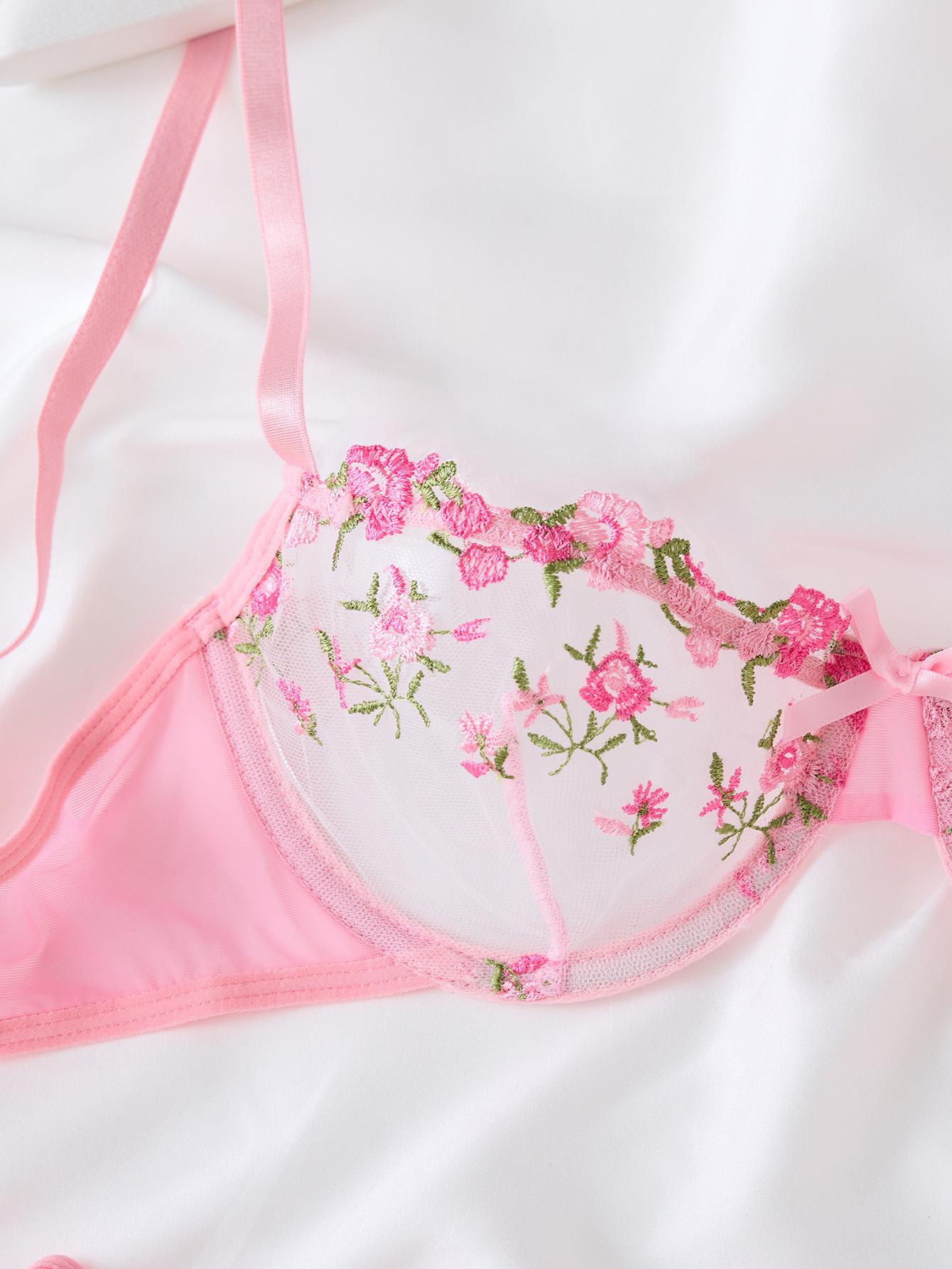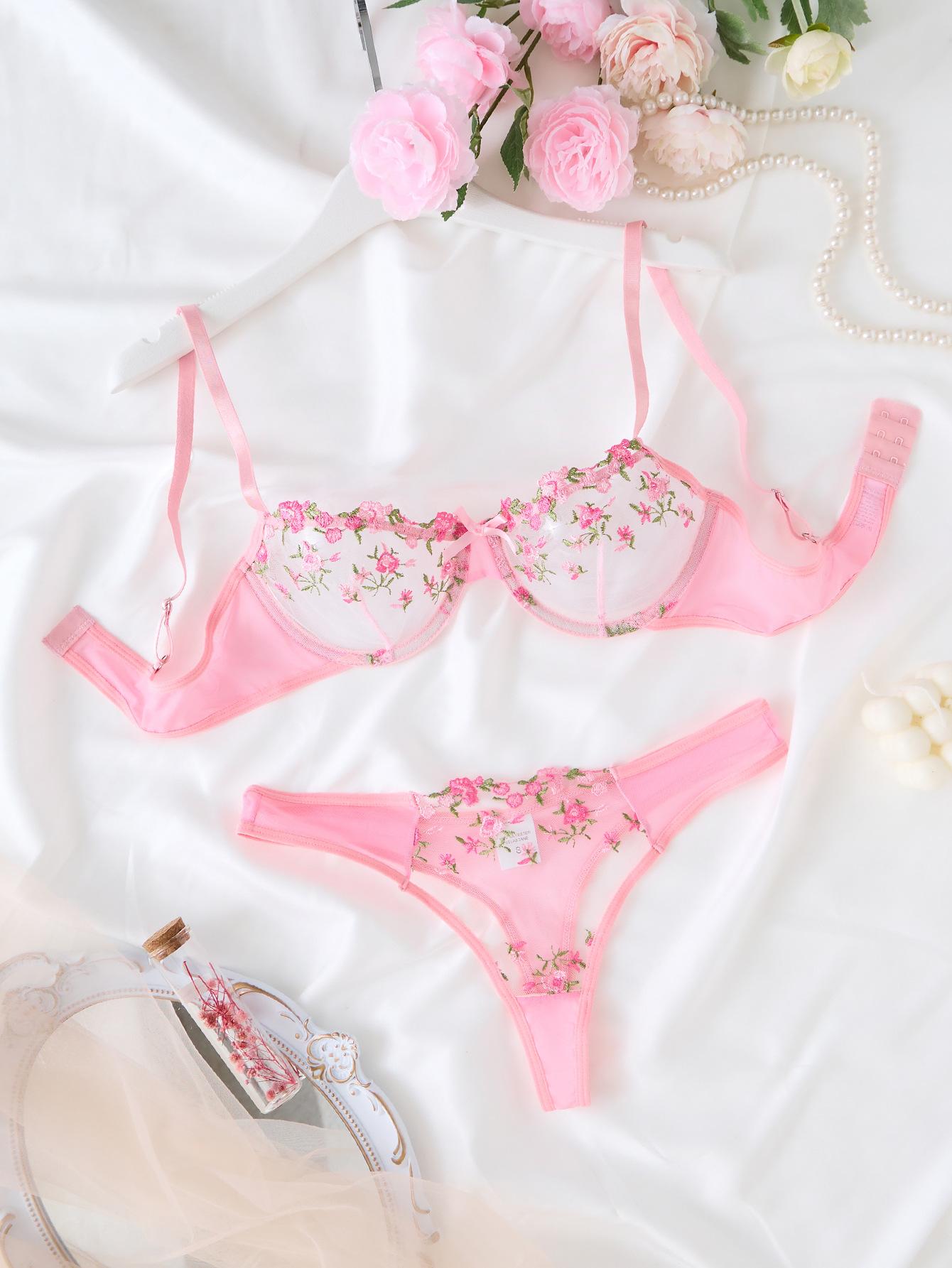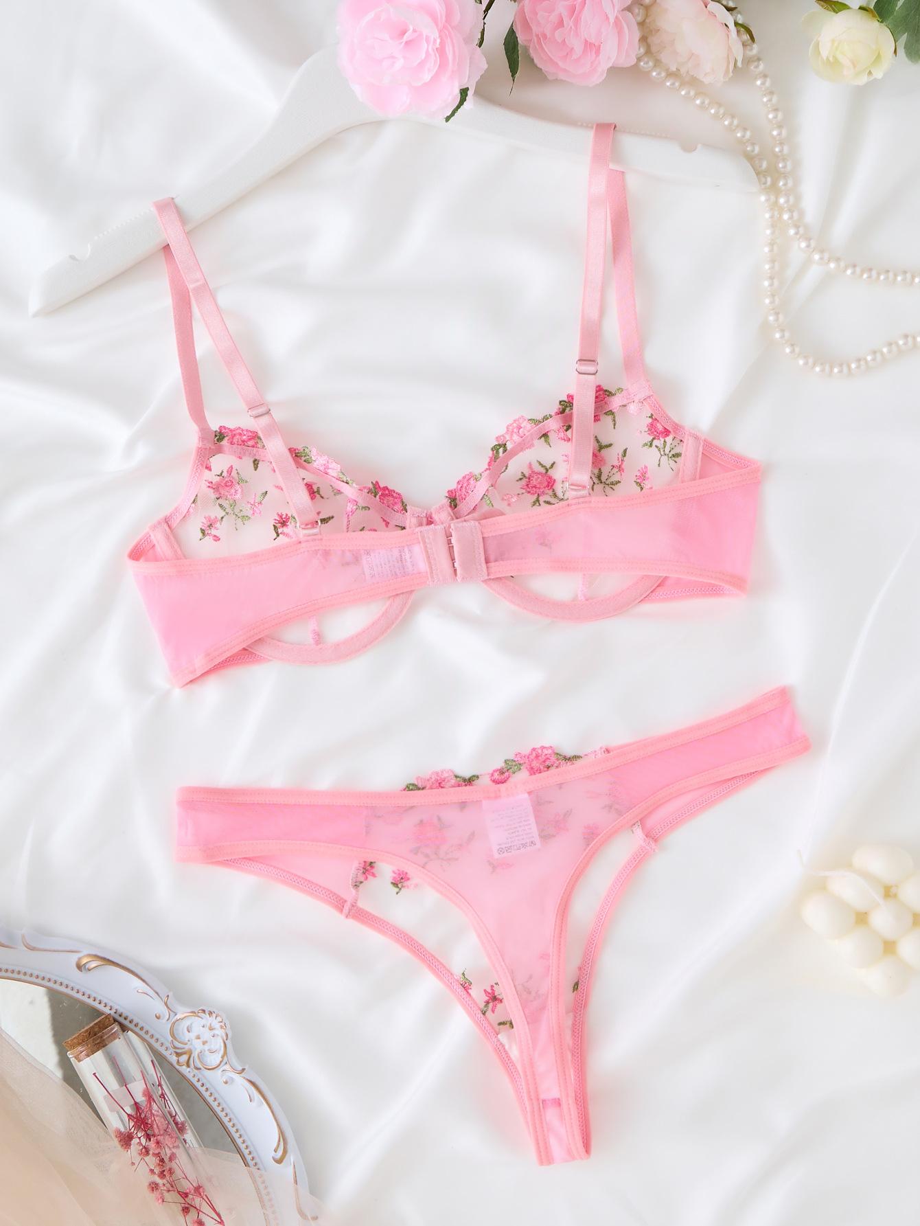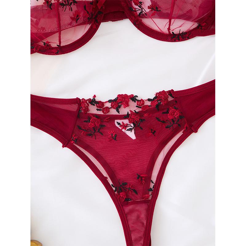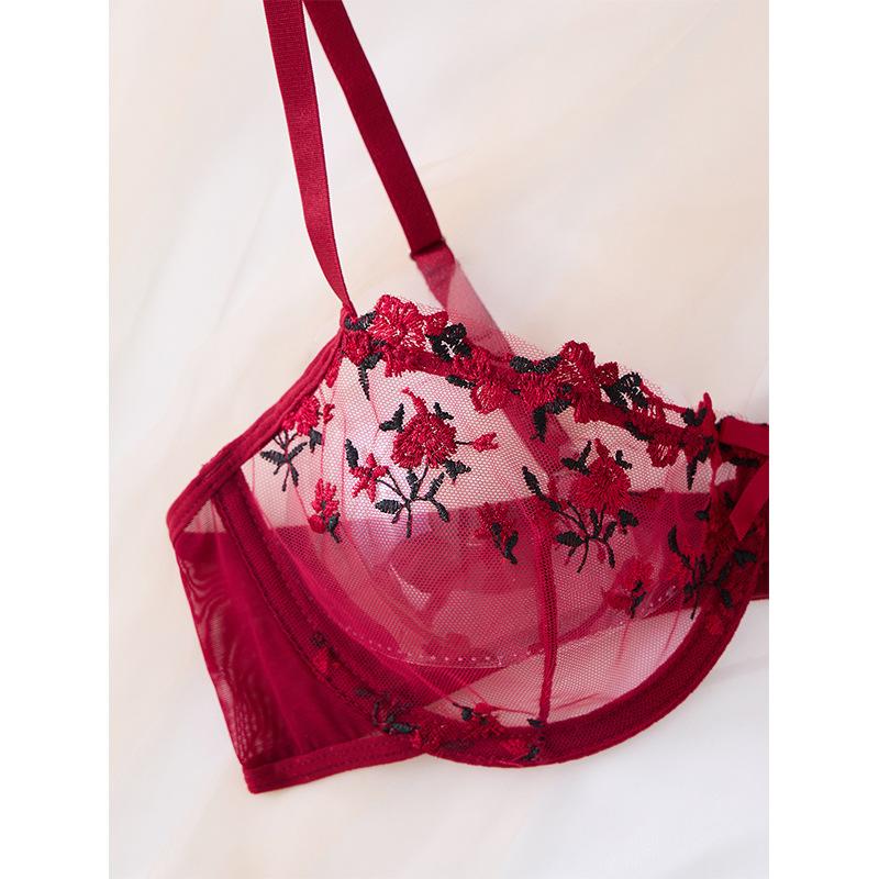 Y transfronterizo Ropa interior sexy sujetador sexy bordado flores conjunto de dos piezas conjunto de sujetador transparente 23129