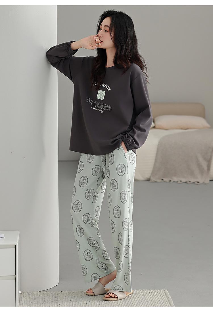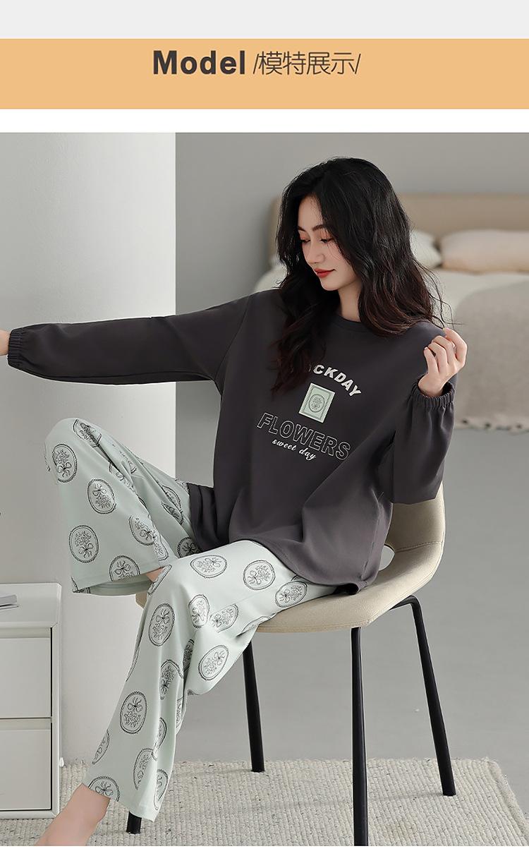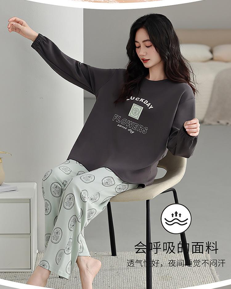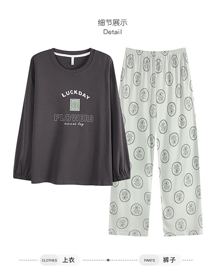 Nuevo Estilo de Primavera y Otoño Algodón Puro 100% Manga Larga Pantalón Largo Cuello Redondo Holgado Casual Pijama Ropa para el Hogar Se Puede Usar Afuera Mujeres