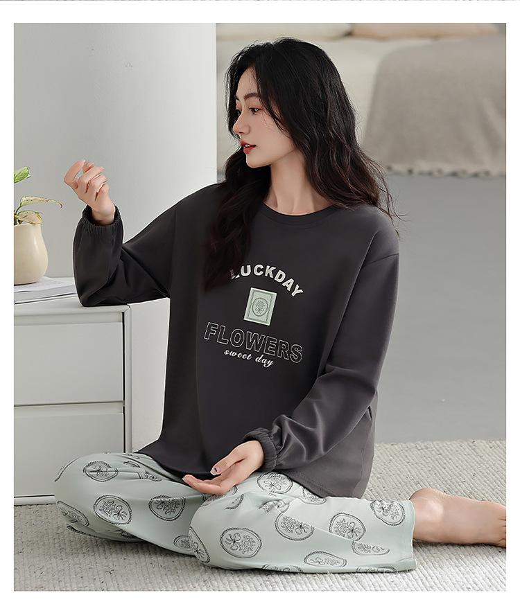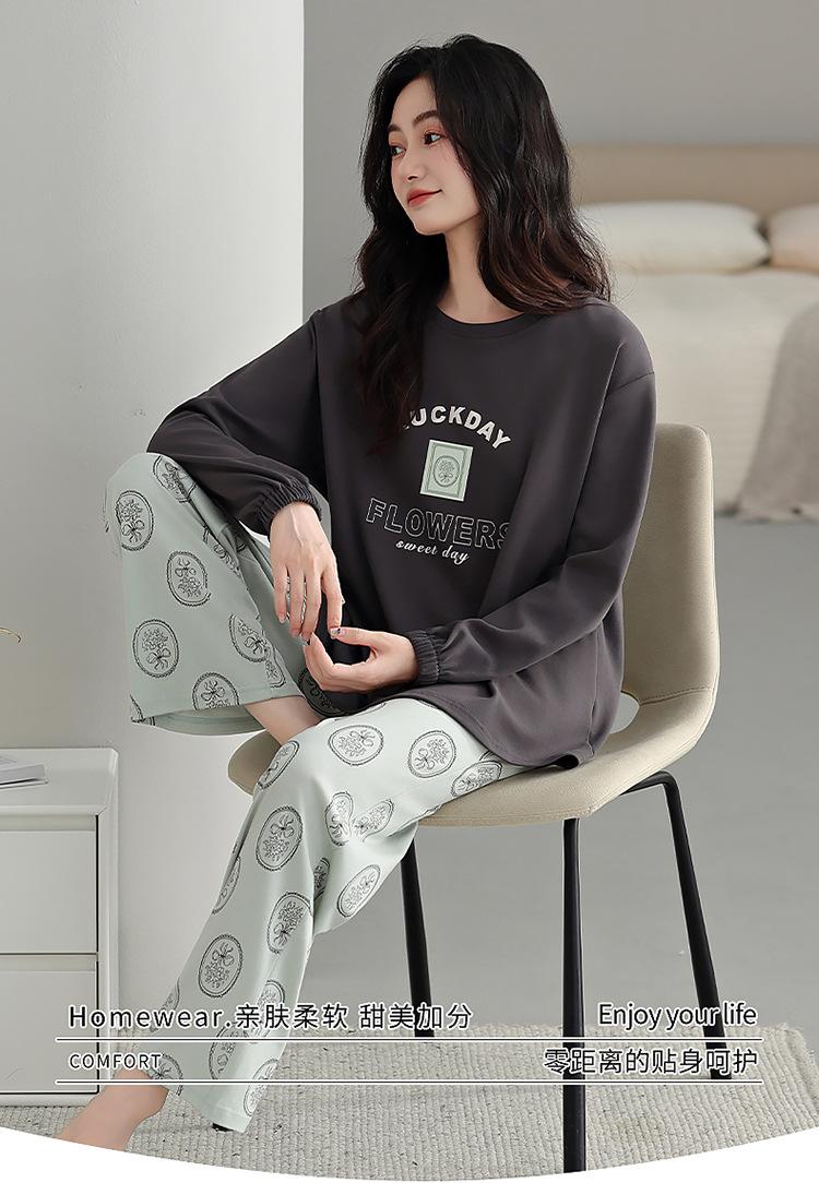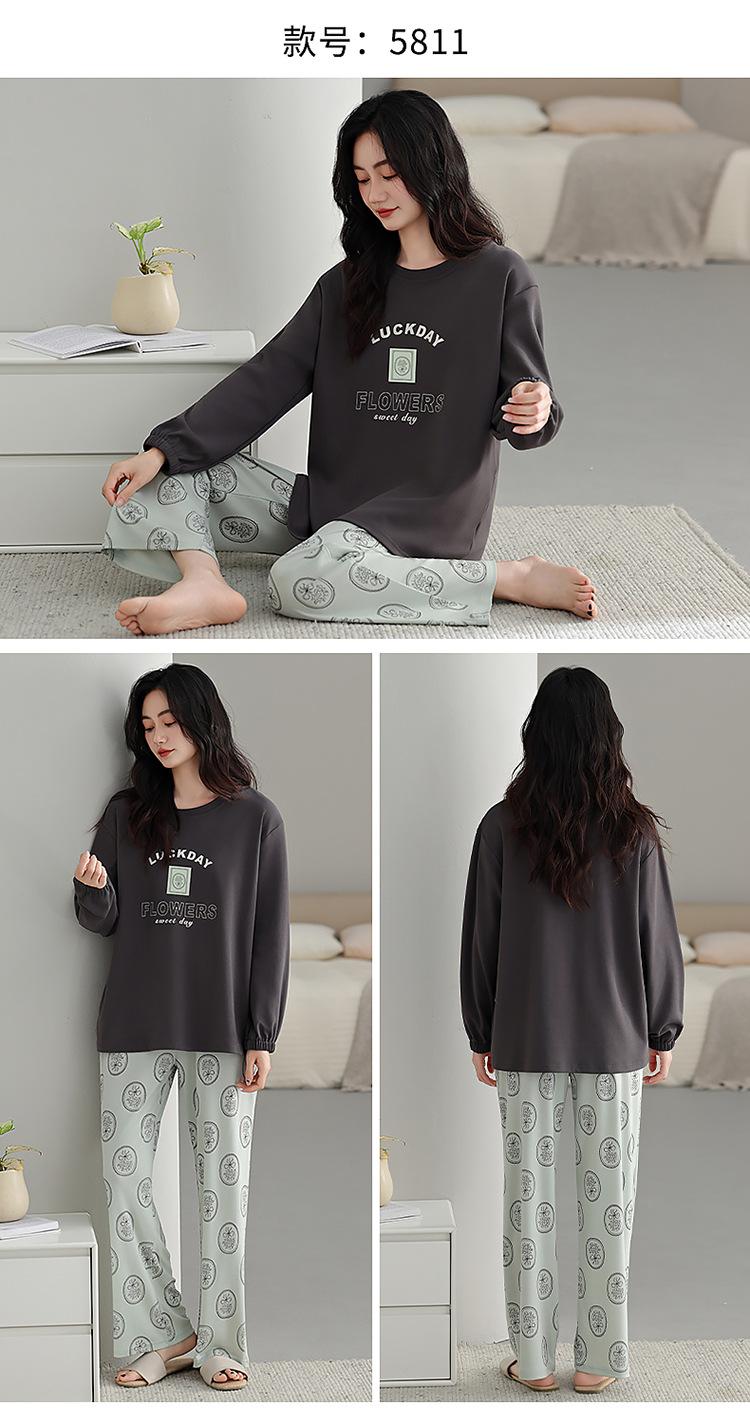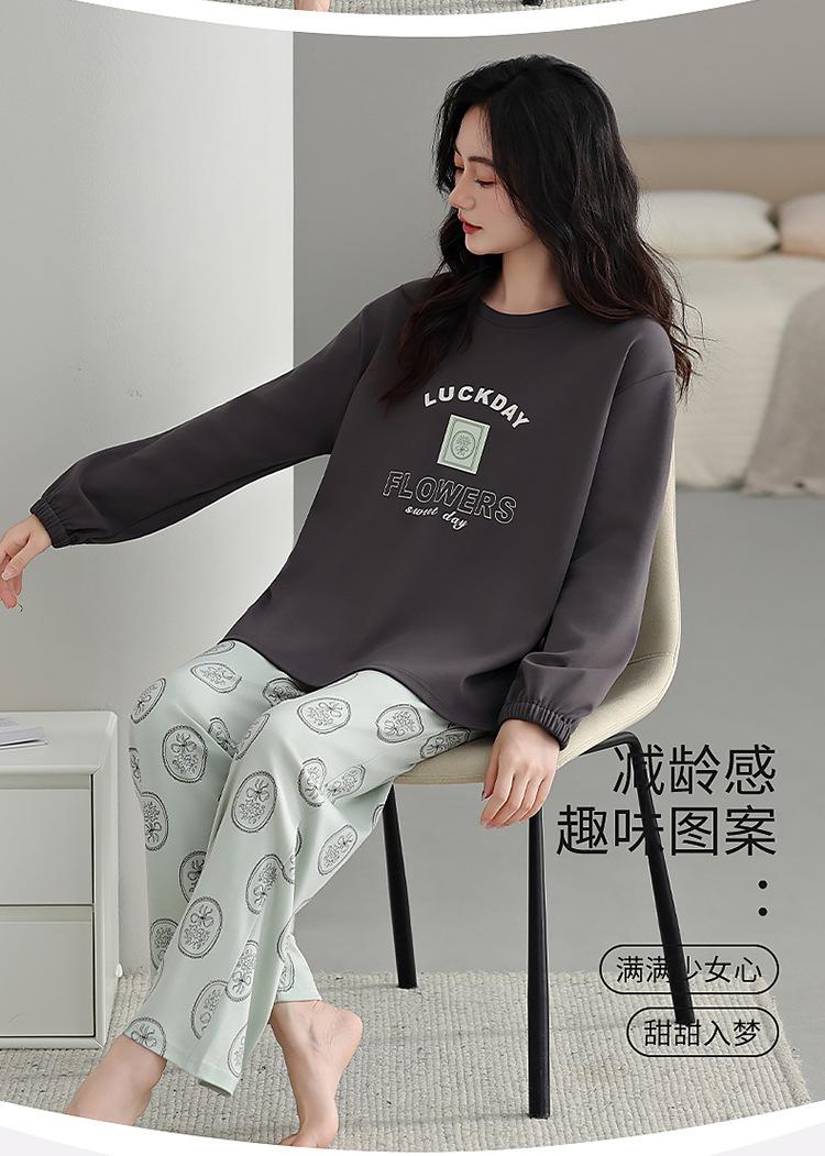 Nuevo Estilo de Primavera y Otoño Algodón Puro 100% Manga Larga Pantalón Largo Cuello Redondo Holgado Casual Pijama Ropa para el Hogar Se Puede Usar Afuera Mujeres
