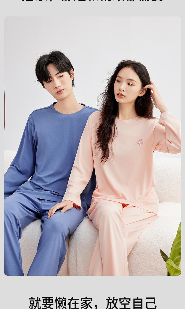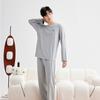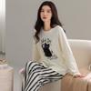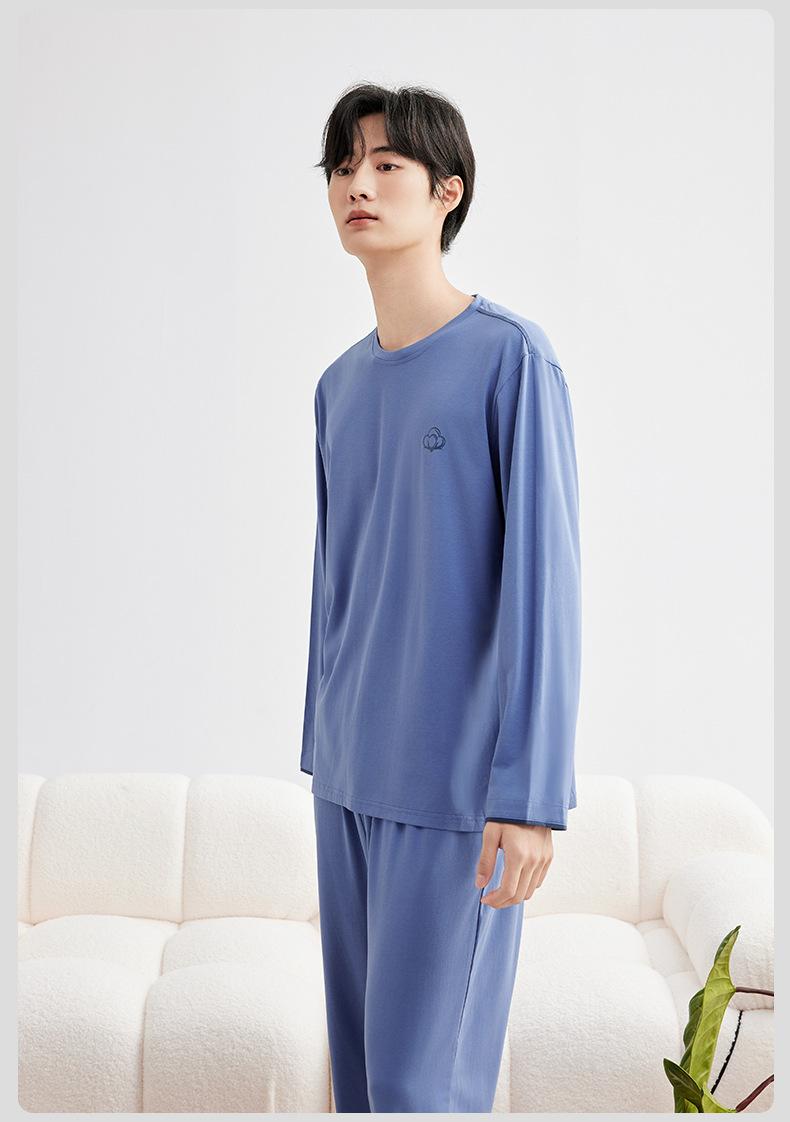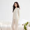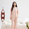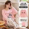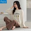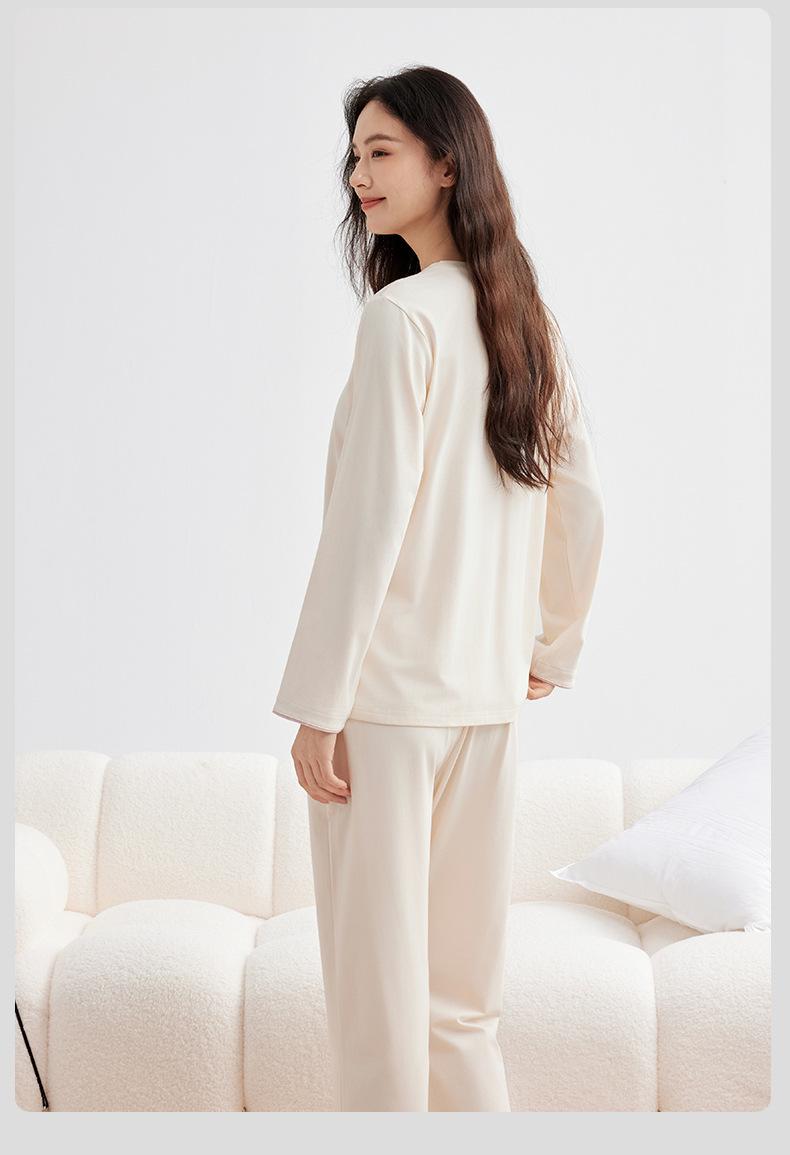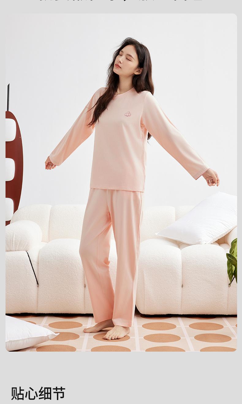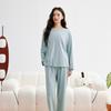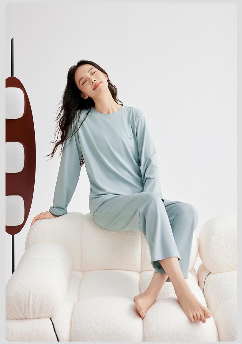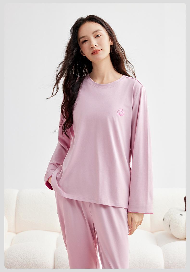 Pijama de Algodón Clase A de Cuello Redondo para Mujer Estilo Otoño Conjunto de Manga Larga y Pantalón Largo Temporada Primavera y Otoño Pijama Pulóver de Color Sólido Ropa de Casa