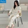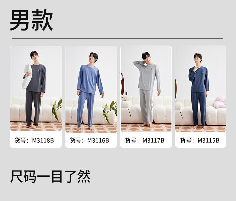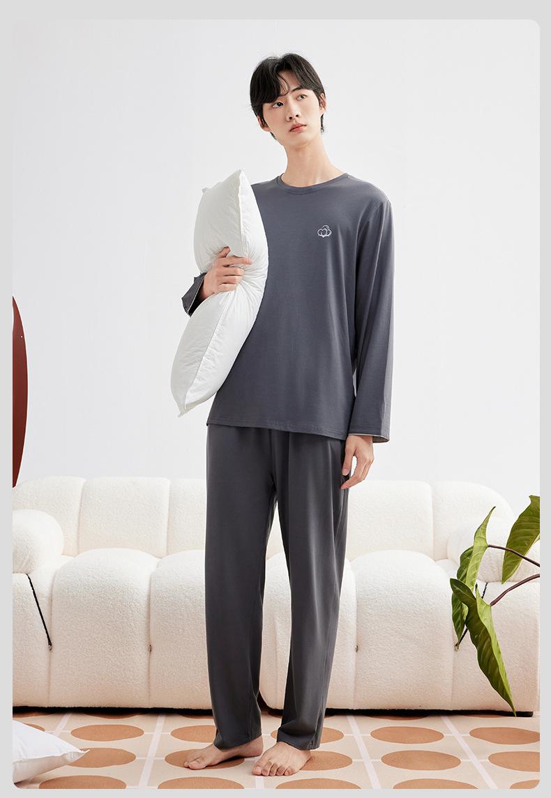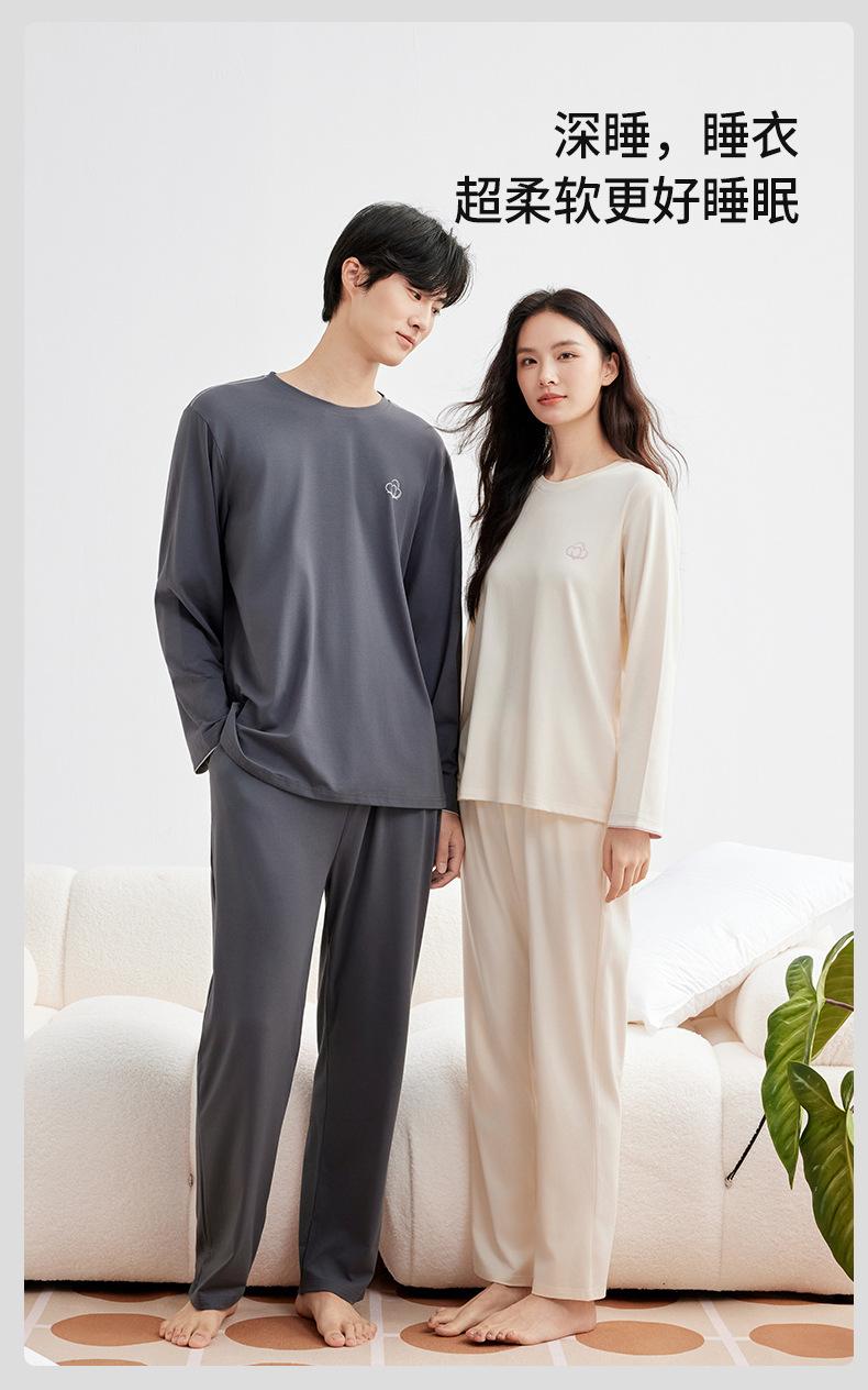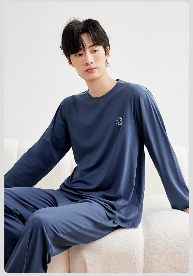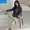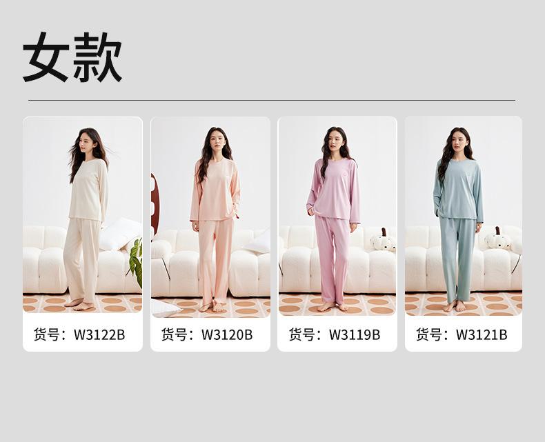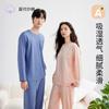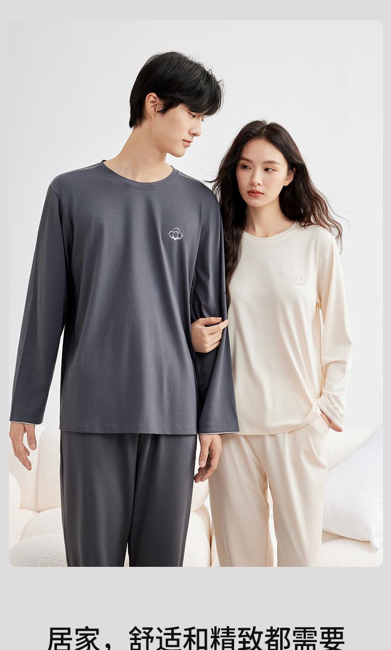 Pijama de Algodón Clase A de Cuello Redondo para Mujer Estilo Otoño Conjunto de Manga Larga y Pantalón Largo Temporada Primavera y Otoño Pijama Pulóver de Color Sólido Ropa de Casa