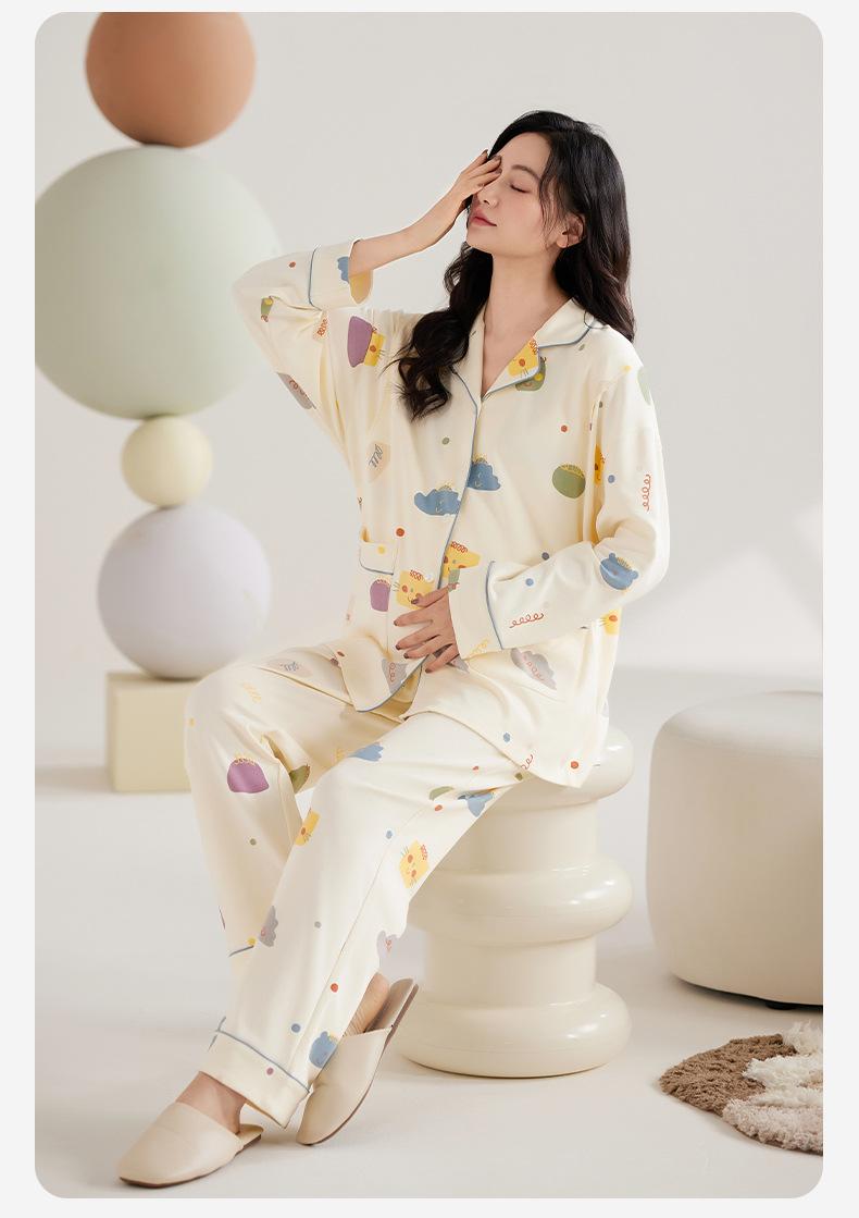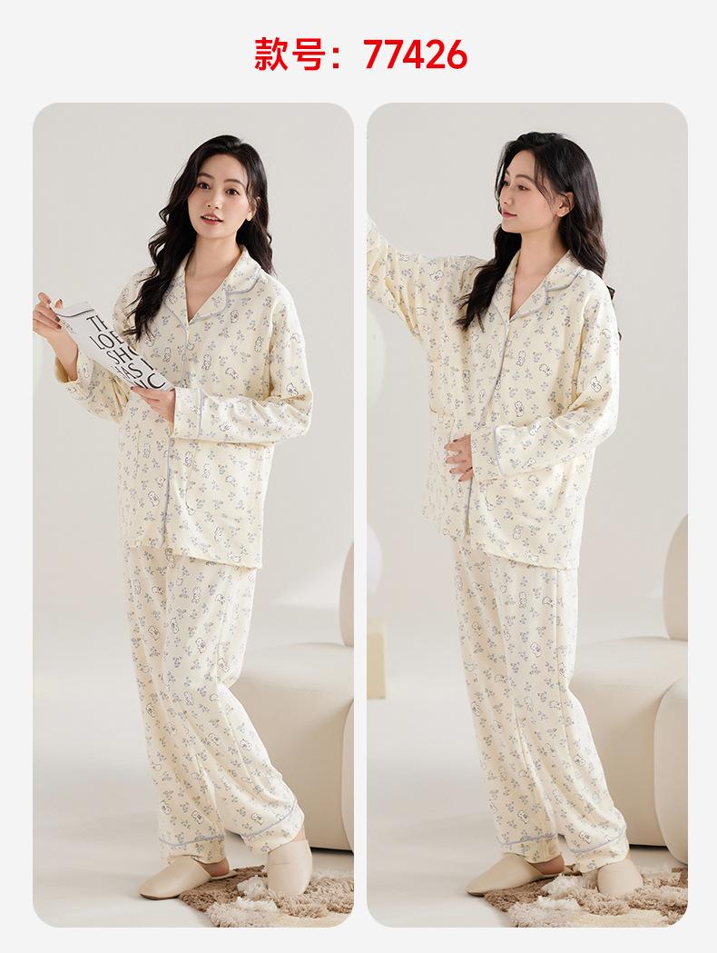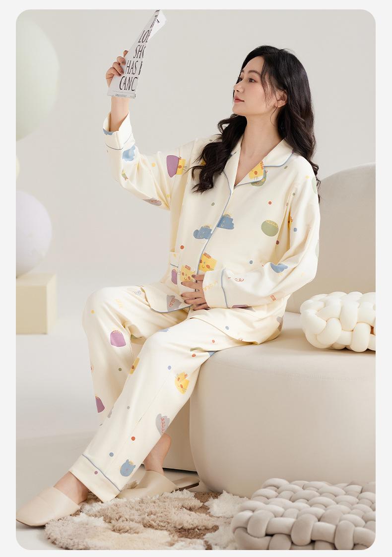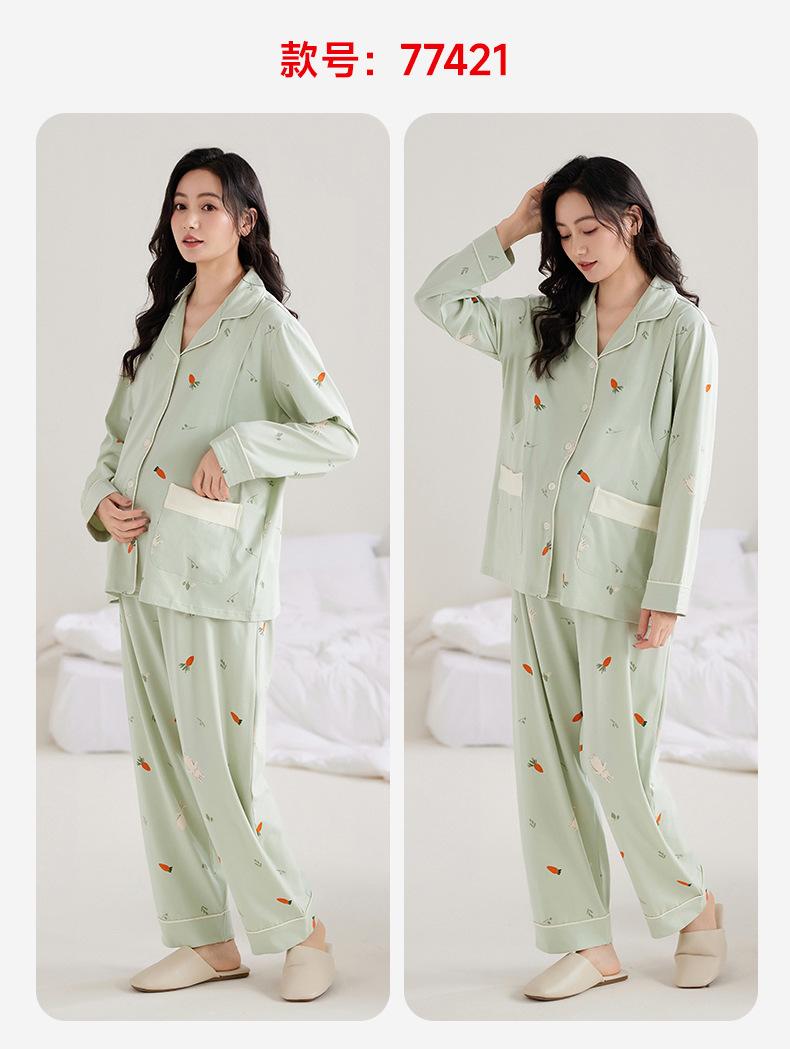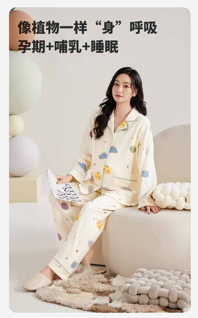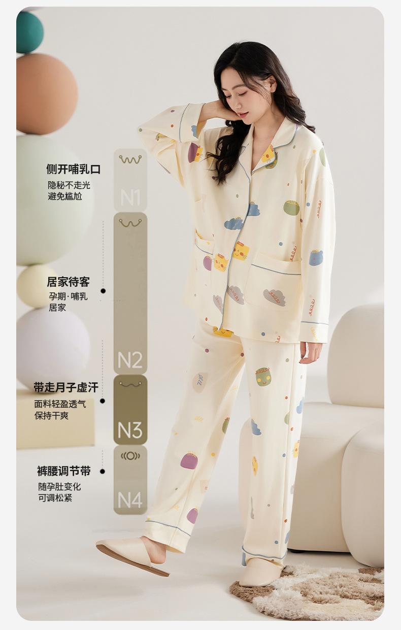 Xi Yue Primavera y Otoño Nuevo Estilo Licra Algodón Puro Ropa de Confinamiento para Lactancia para Mujeres Embarazadas Solapa Dulce Manga Larga Absorbente de Sudor Ropa de Lactancia