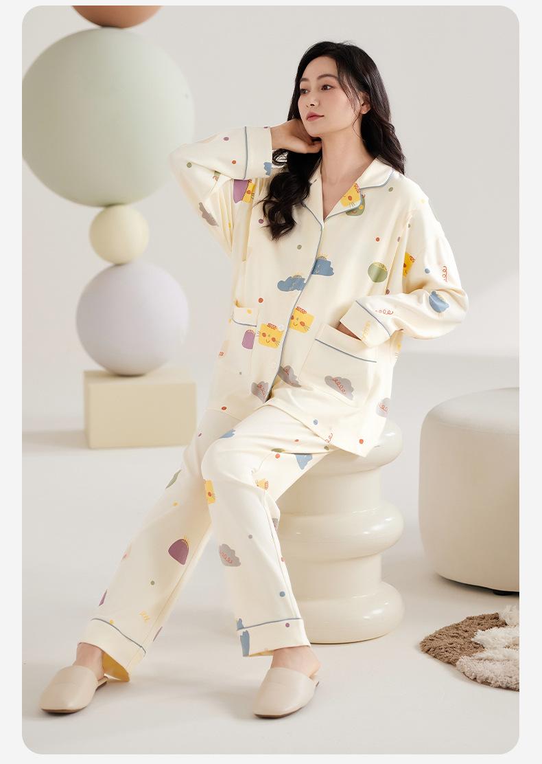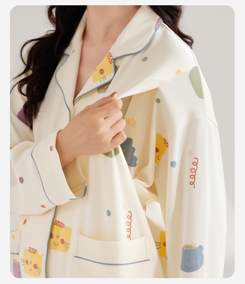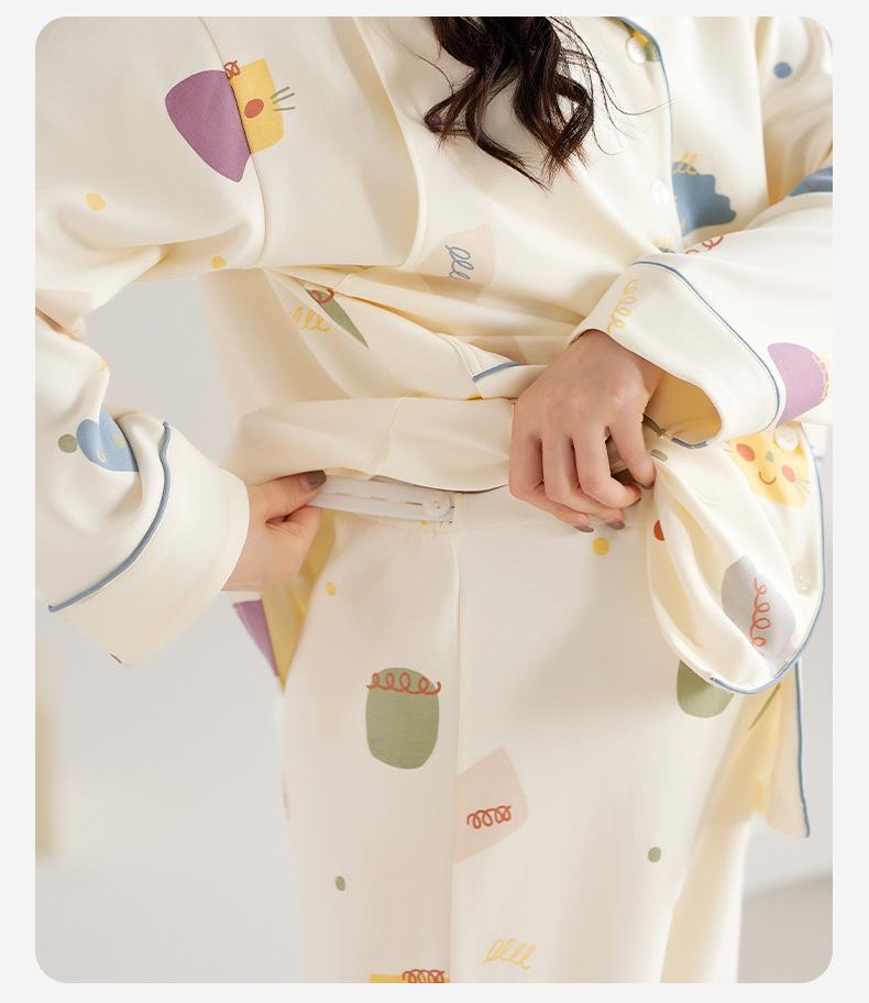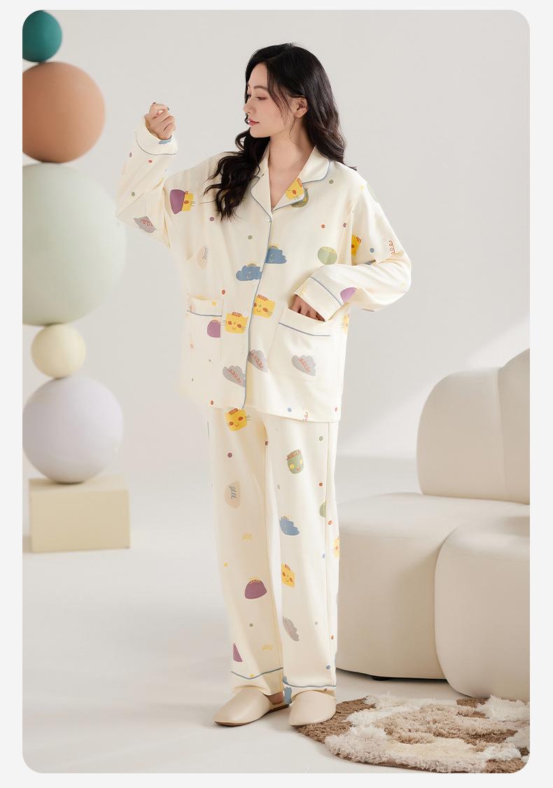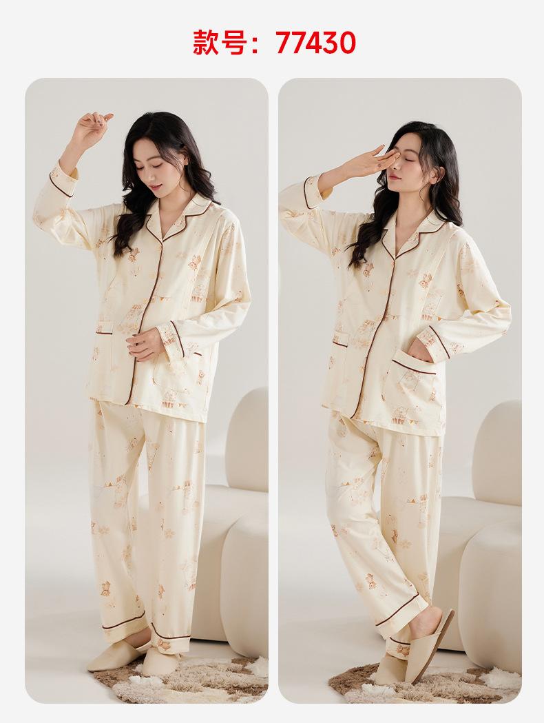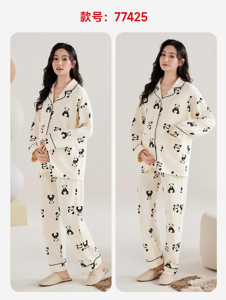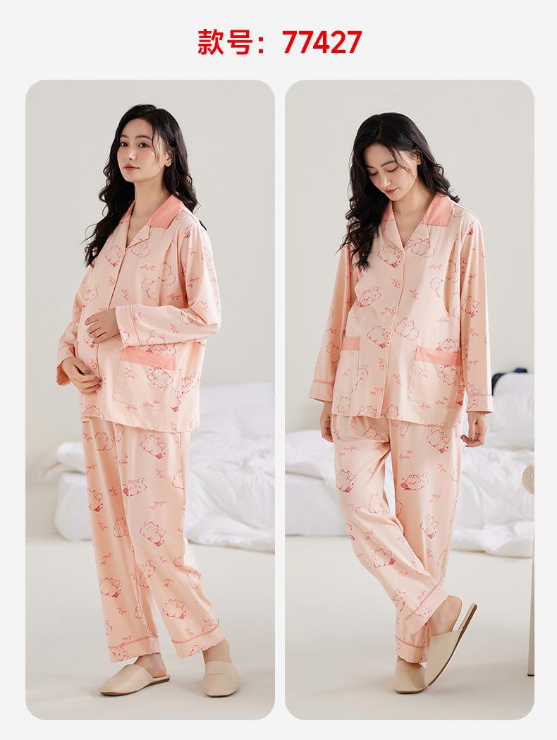 Xi Yue Primavera y Otoño Nuevo Estilo Licra Algodón Puro Ropa de Confinamiento para Lactancia para Mujeres Embarazadas Solapa Dulce Manga Larga Absorbente de Sudor Ropa de Lactancia