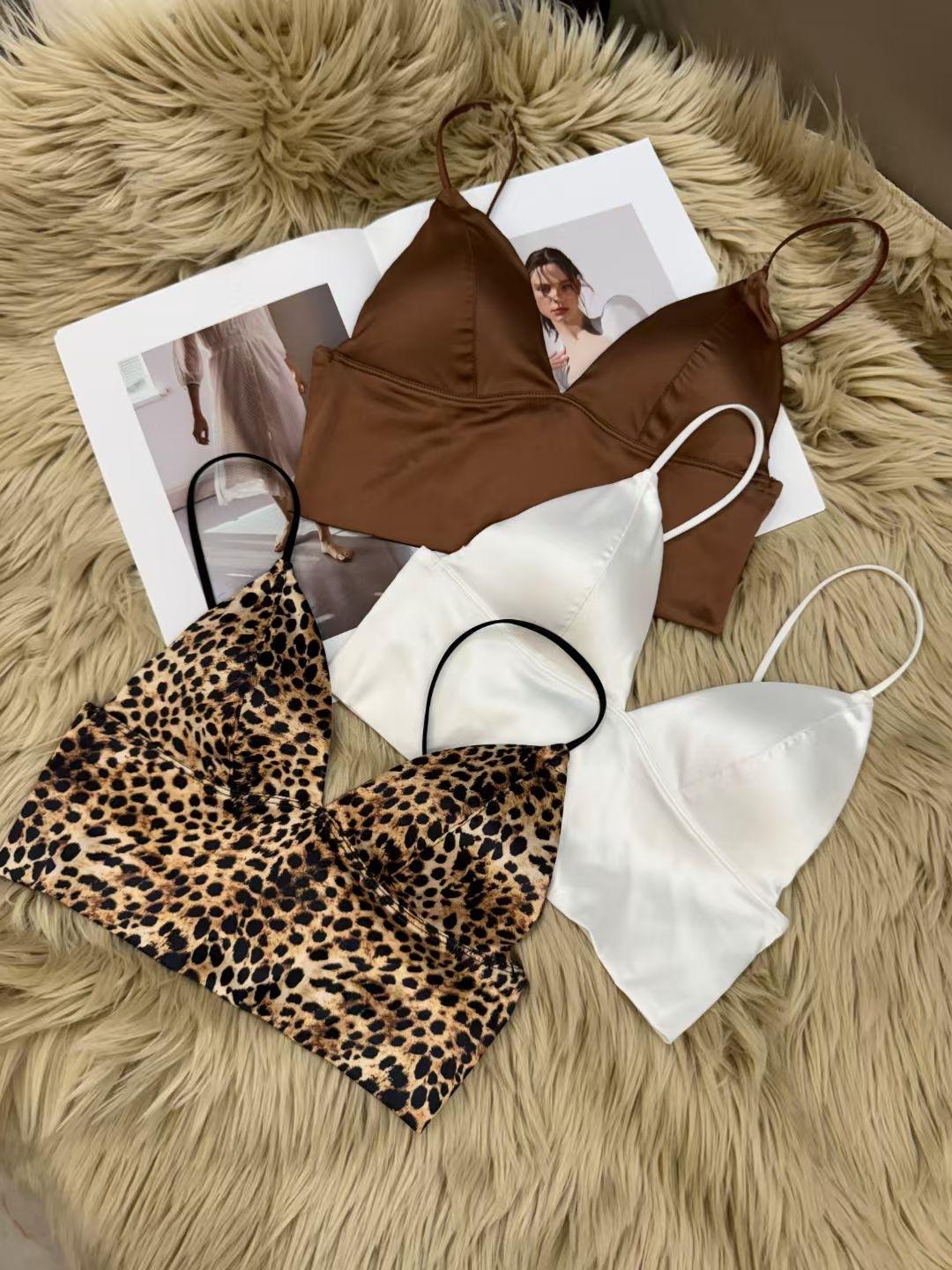Lencería Sexy de Comercio Exterior Super Delgada Estampado de Leopardo Encaje Bordado Conjunto de Brasier Pecho Grande Luce Pequeño Brasier Anticaída