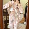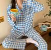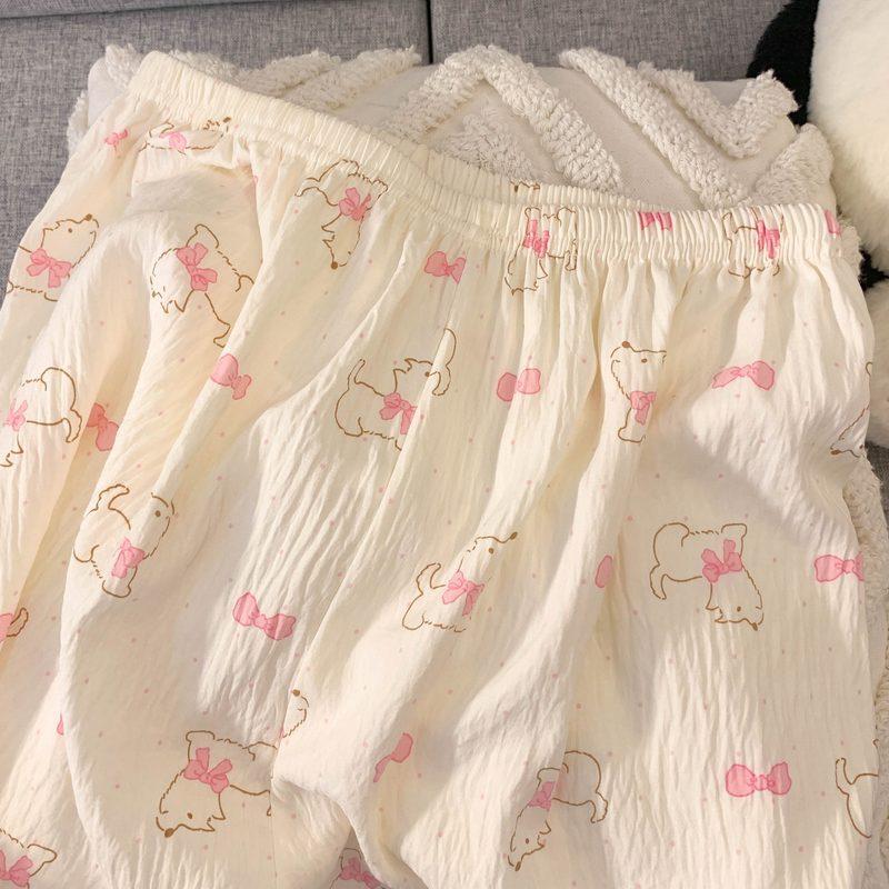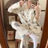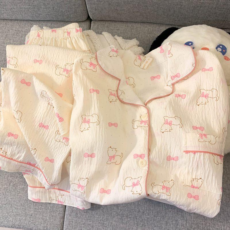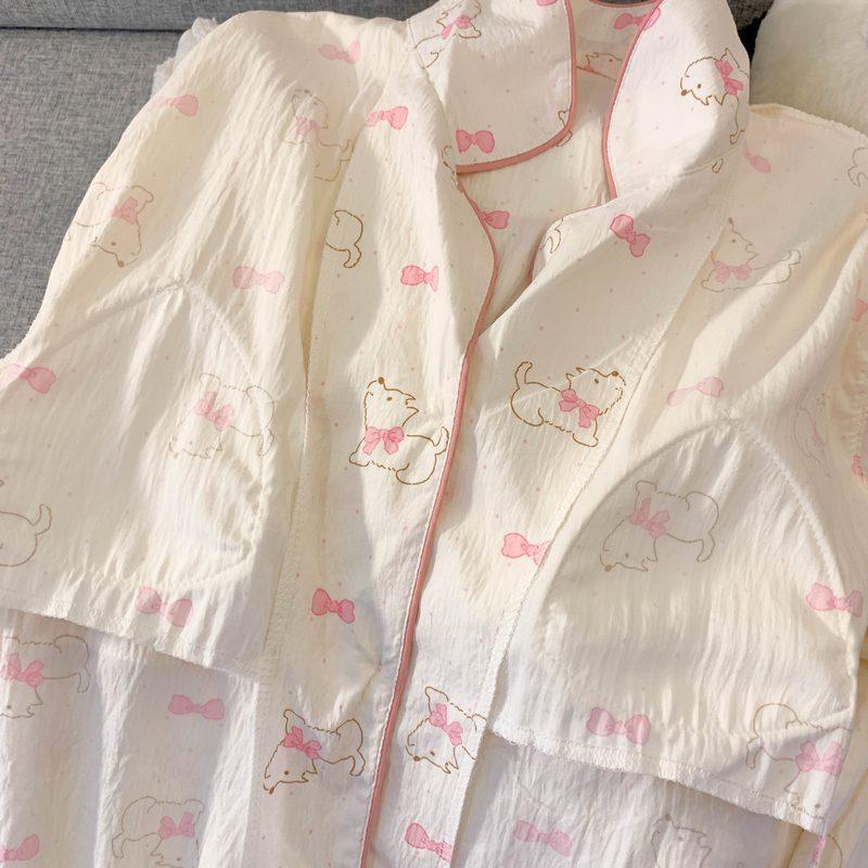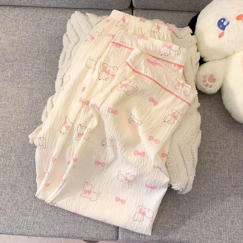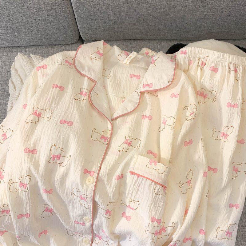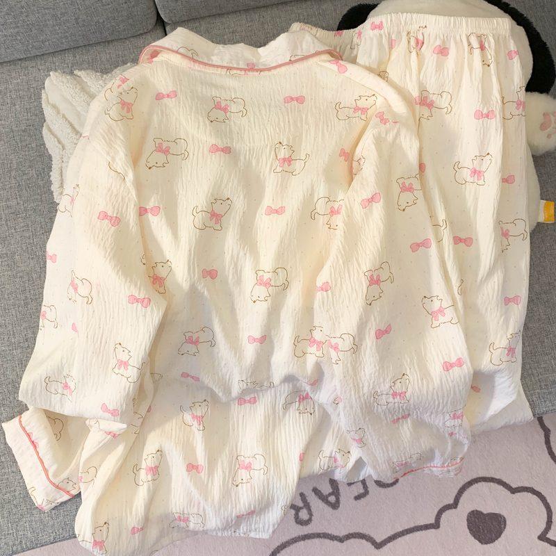 Pijamas de talla grande con almohadilla para el pecho para mujer, venta al por mayor, pantalones de manga larga con dibujos de cachorros para primavera y otoño, ropa de casa para niña
