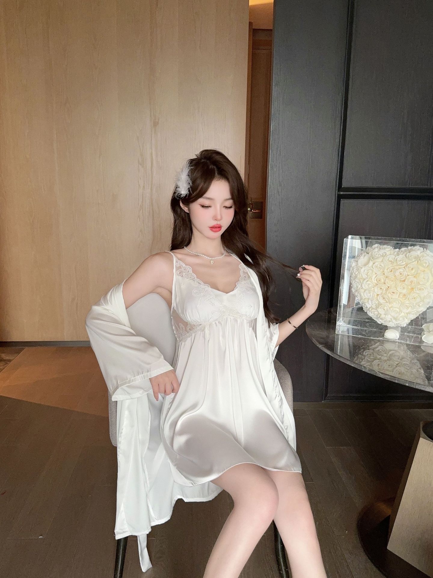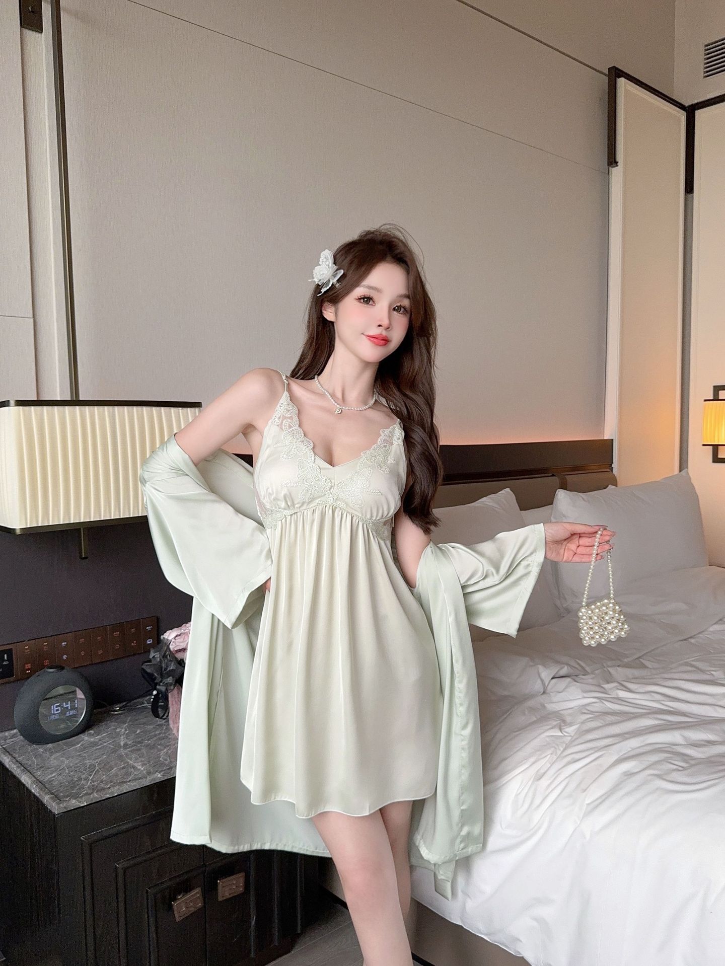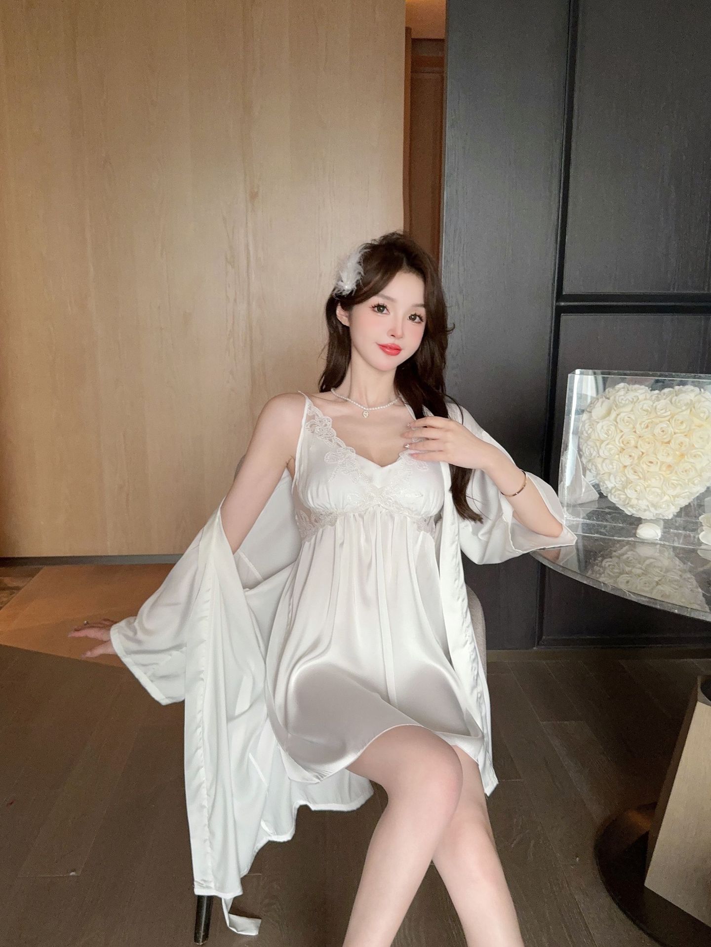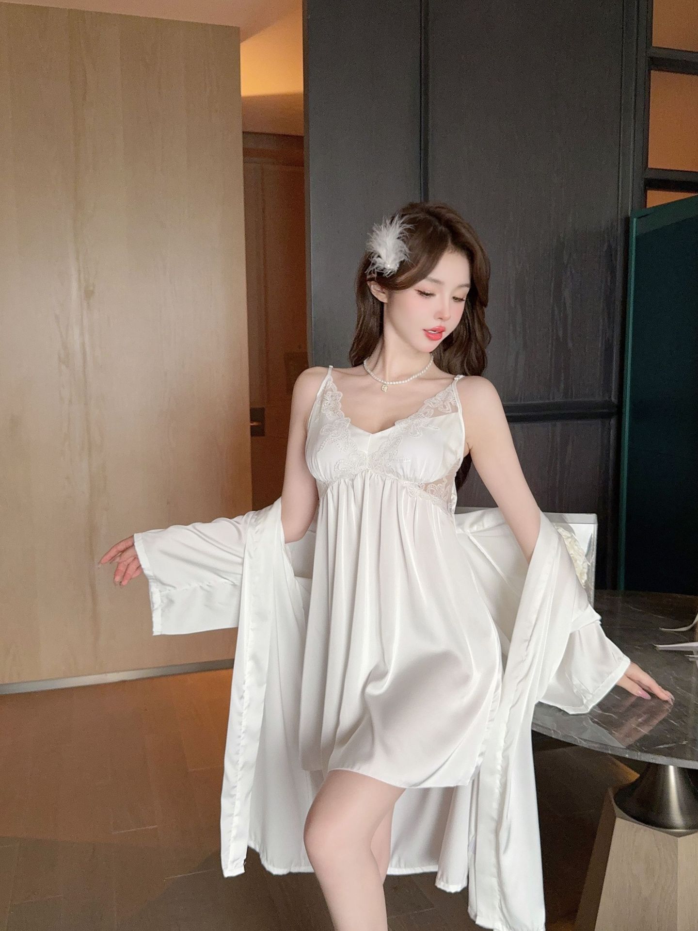 2025 Nuevo Camisón de Noche para Niña de Estilo Puro y Sexy de Alta Gama para Mujer de Satén de Seda de Hielo Fino Estilo Hada Ropa de Dormir