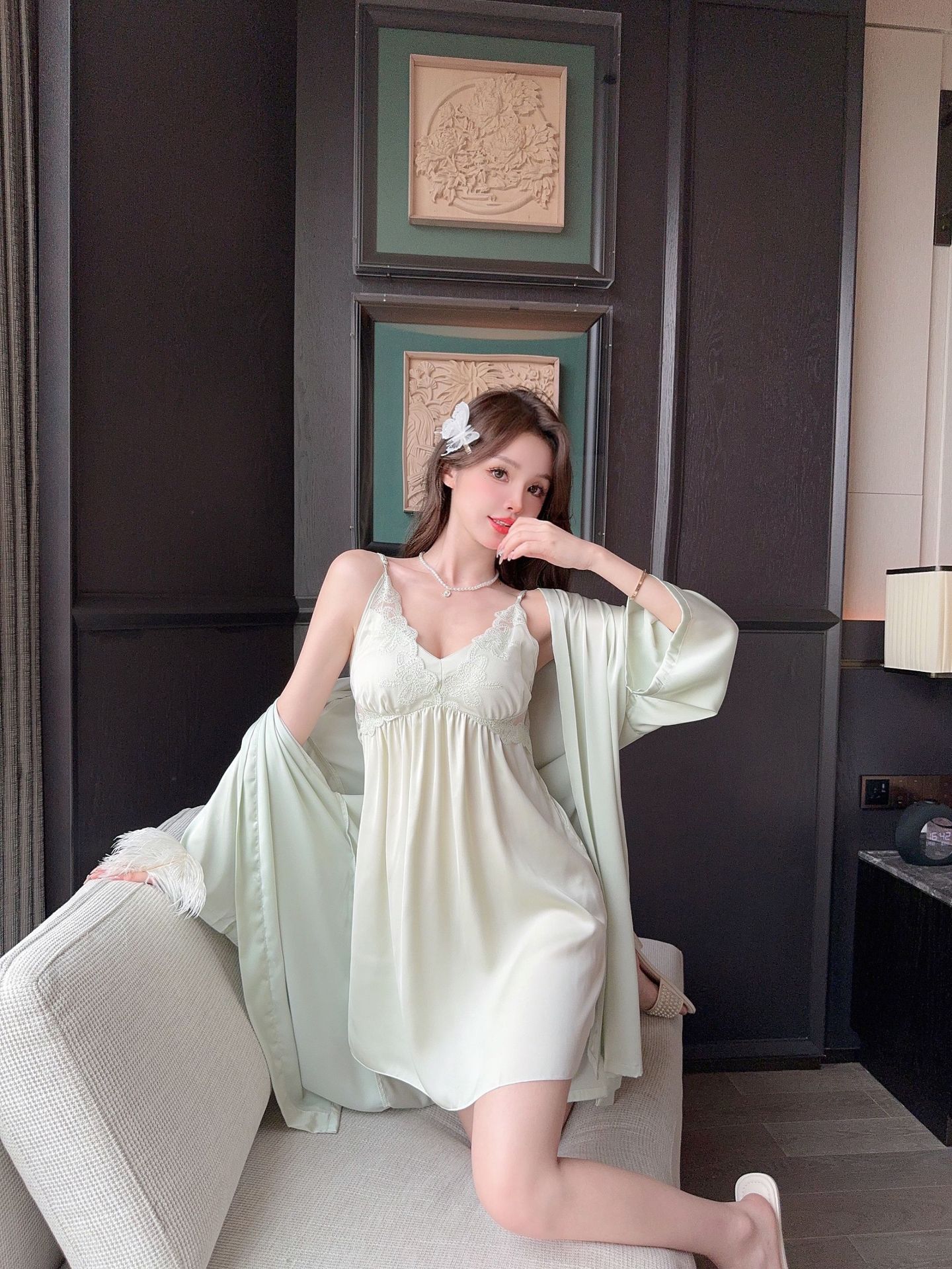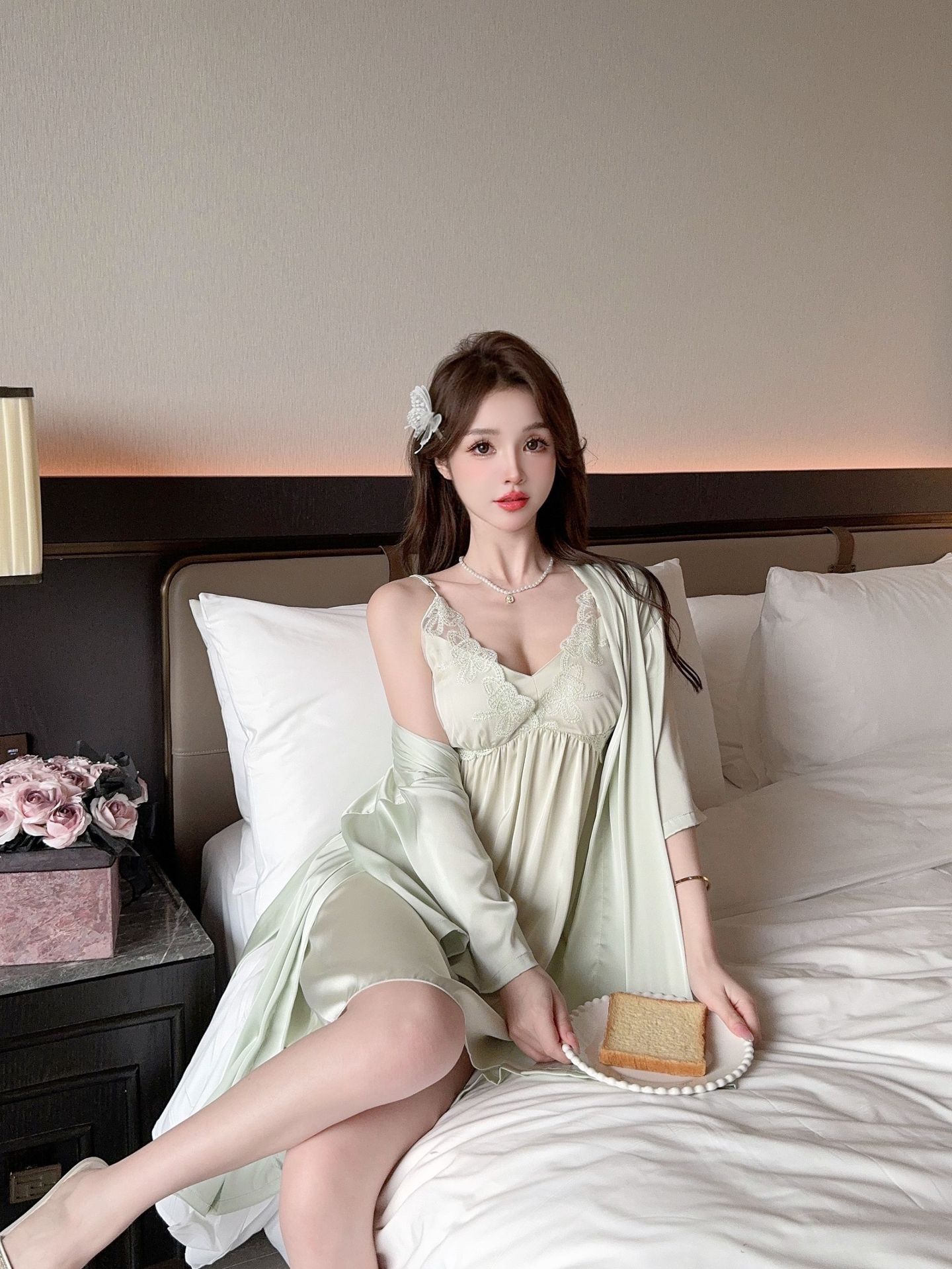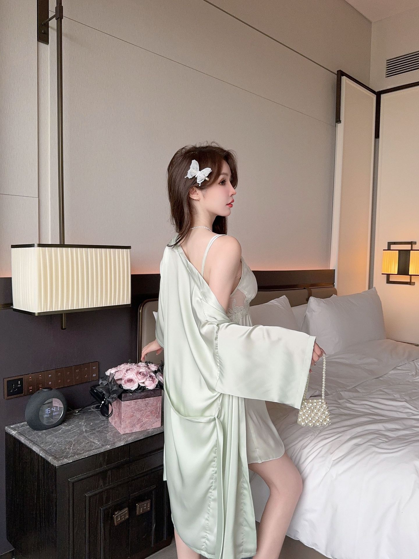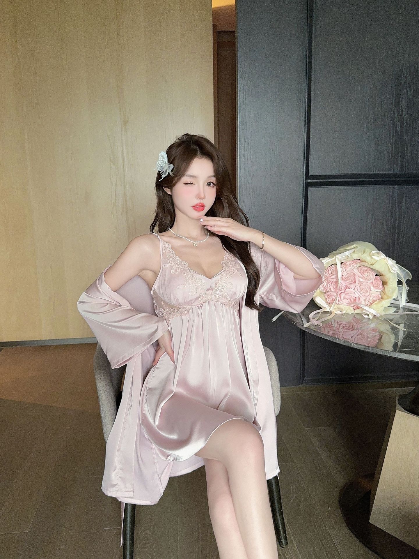 2025 Nuevo Camisón de Noche para Niña de Estilo Puro y Sexy de Alta Gama para Mujer de Satén de Seda de Hielo Fino Estilo Hada Ropa de Dormir