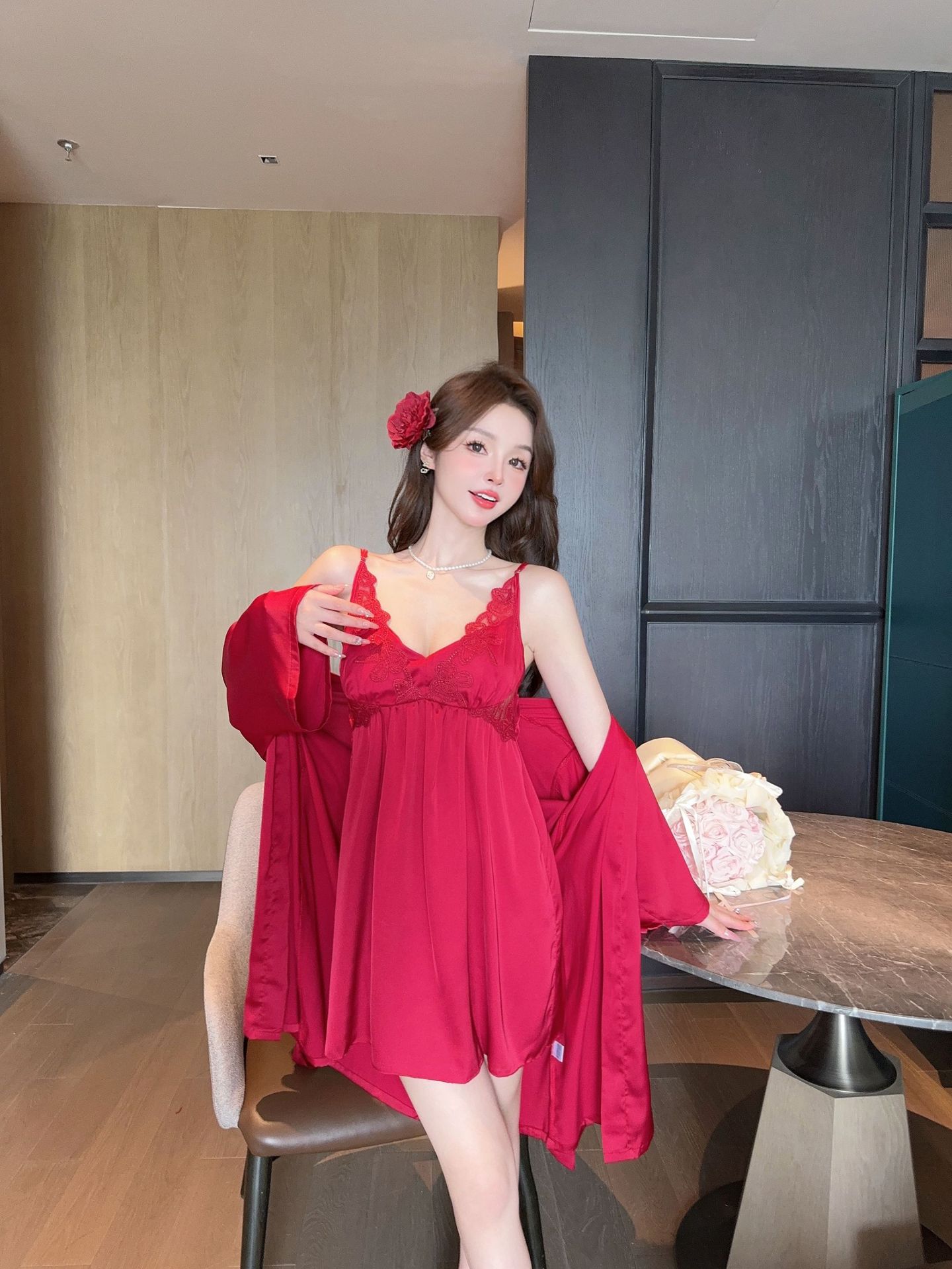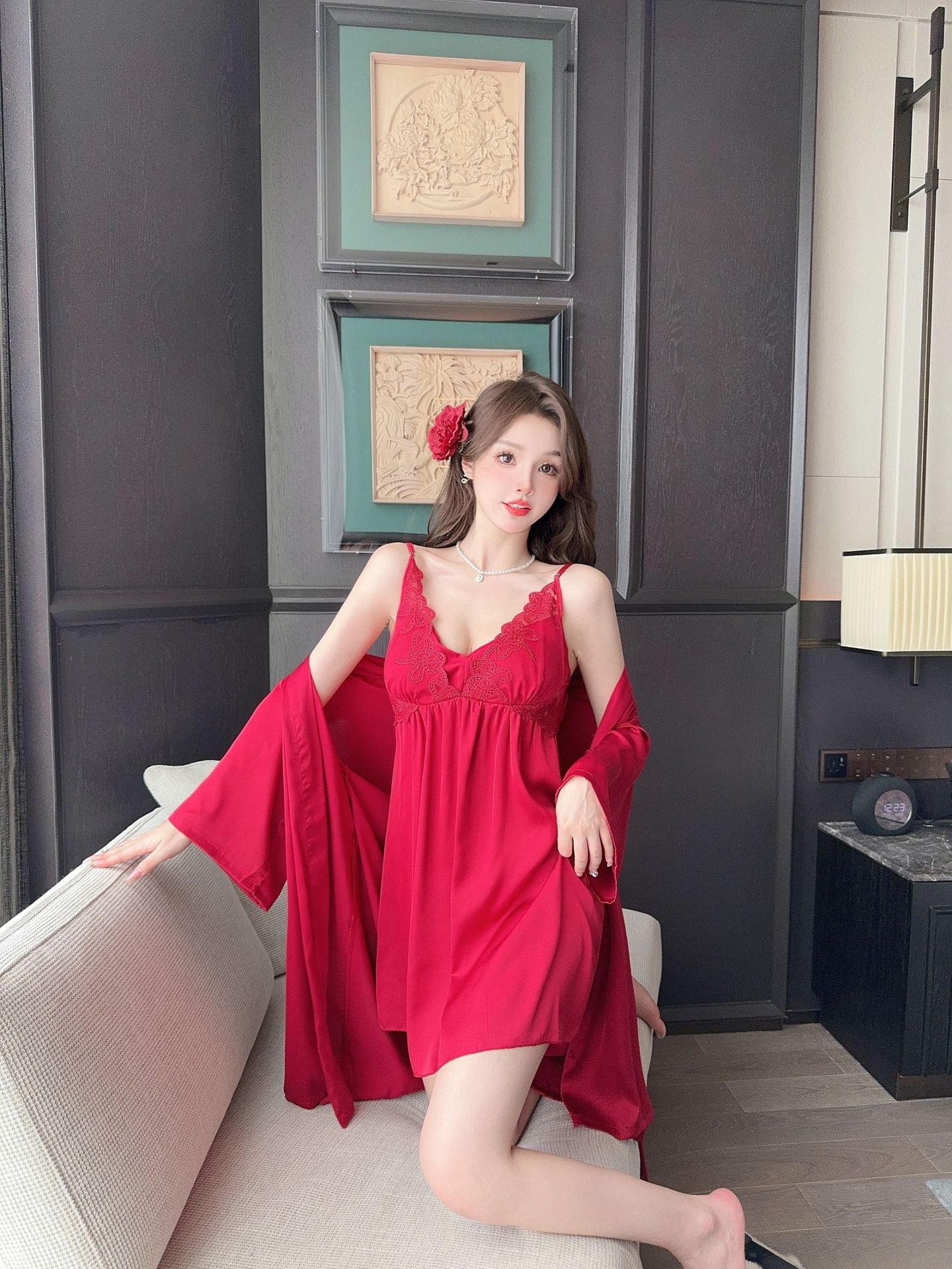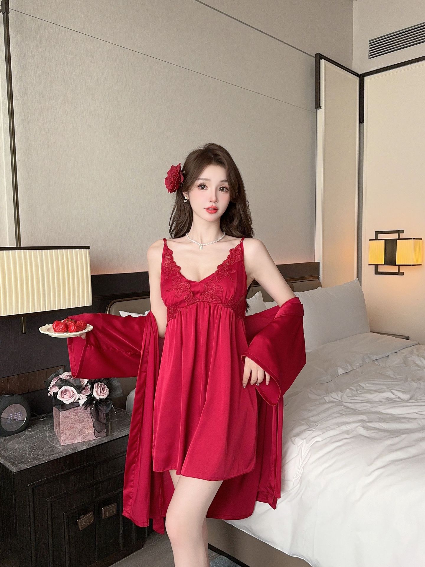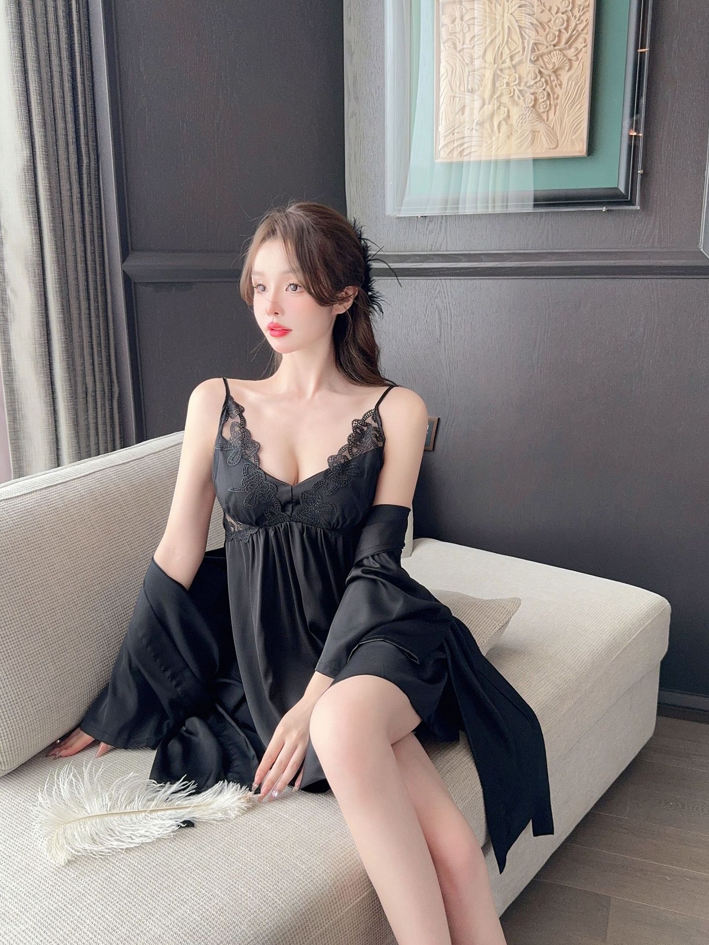 2025 Nuevo Camisón de Noche para Niña de Estilo Puro y Sexy de Alta Gama para Mujer de Satén de Seda de Hielo Fino Estilo Hada Ropa de Dormir