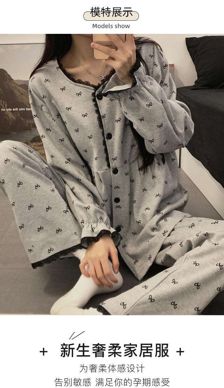 Xi Yue Venta al por Mayor Hielo Porcelana Algodón Cinturón Sujetador Almohadillas Ropa de Maternidad Mujer Otoño 2025 Ropa de Lactancia Postparto Pijamas Dulces