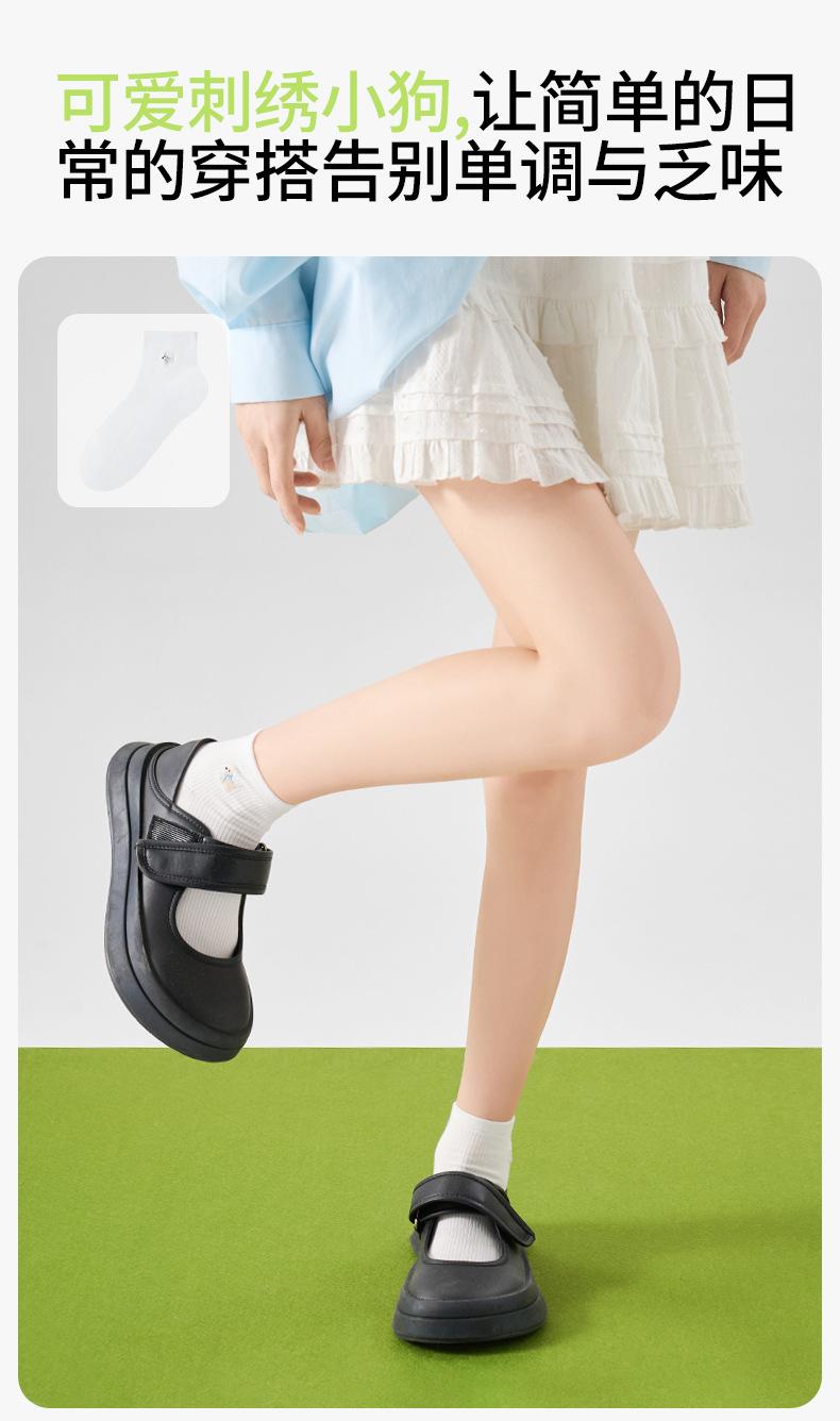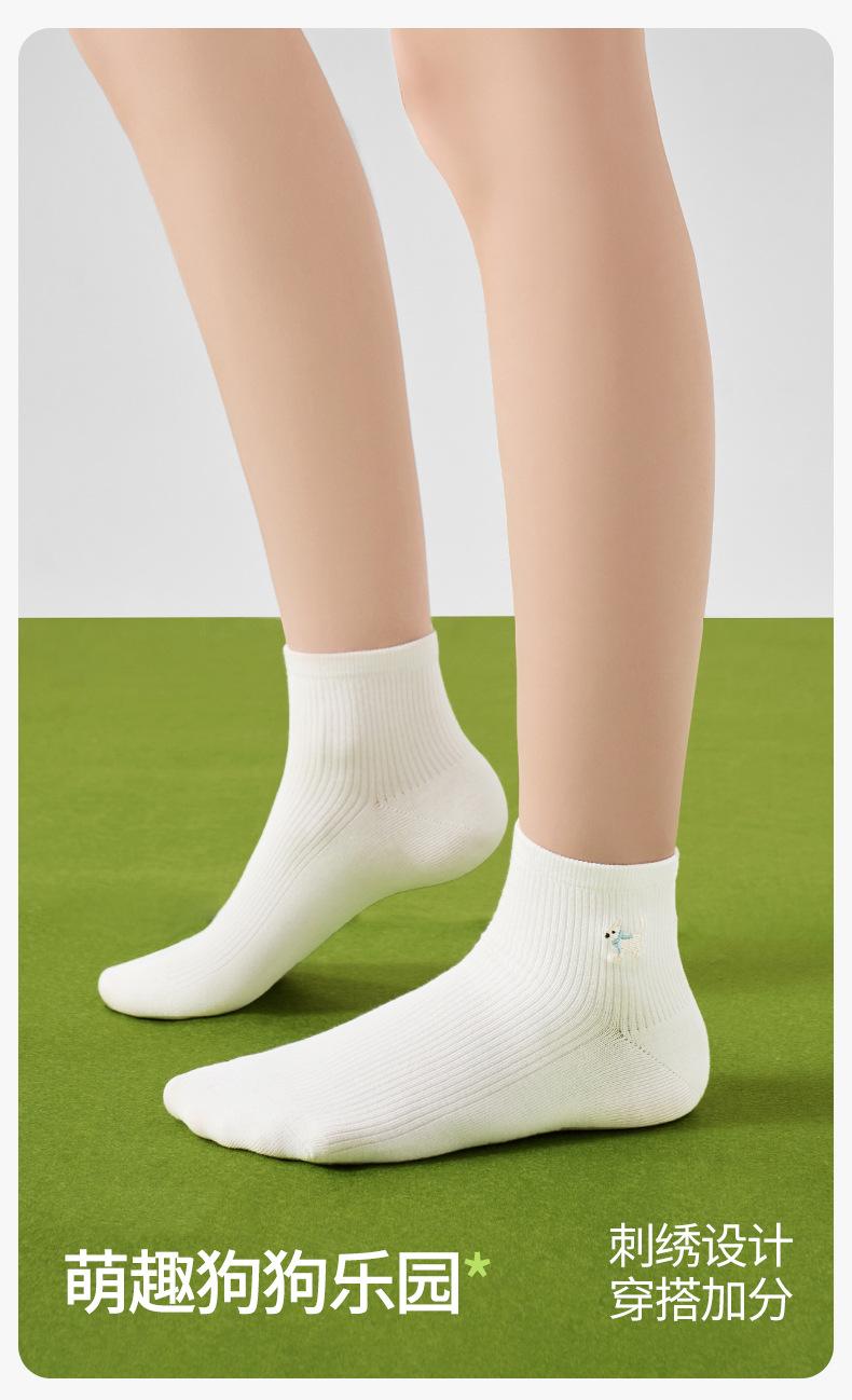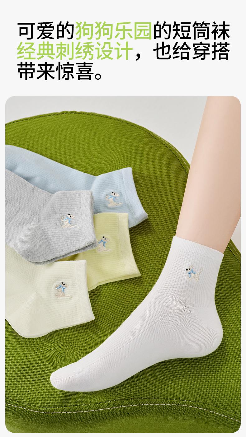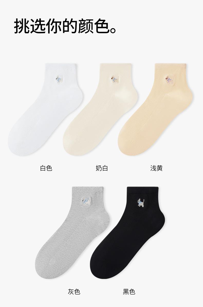 Calcetines Bordados de Cachorros Mujer Verano Delgados Elásticos Amigables con la Piel a Cuadros Calcetines Cortos Algodón Sudor Transpirables Casuales Deportivos
