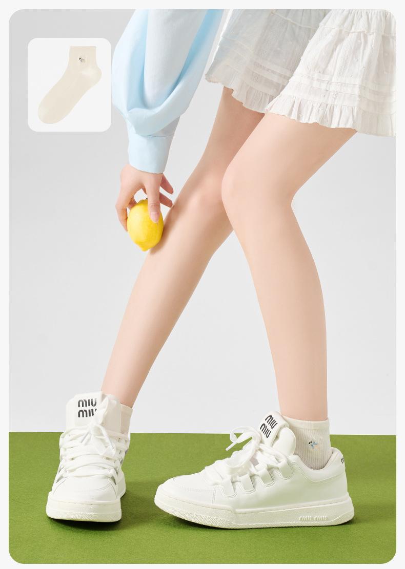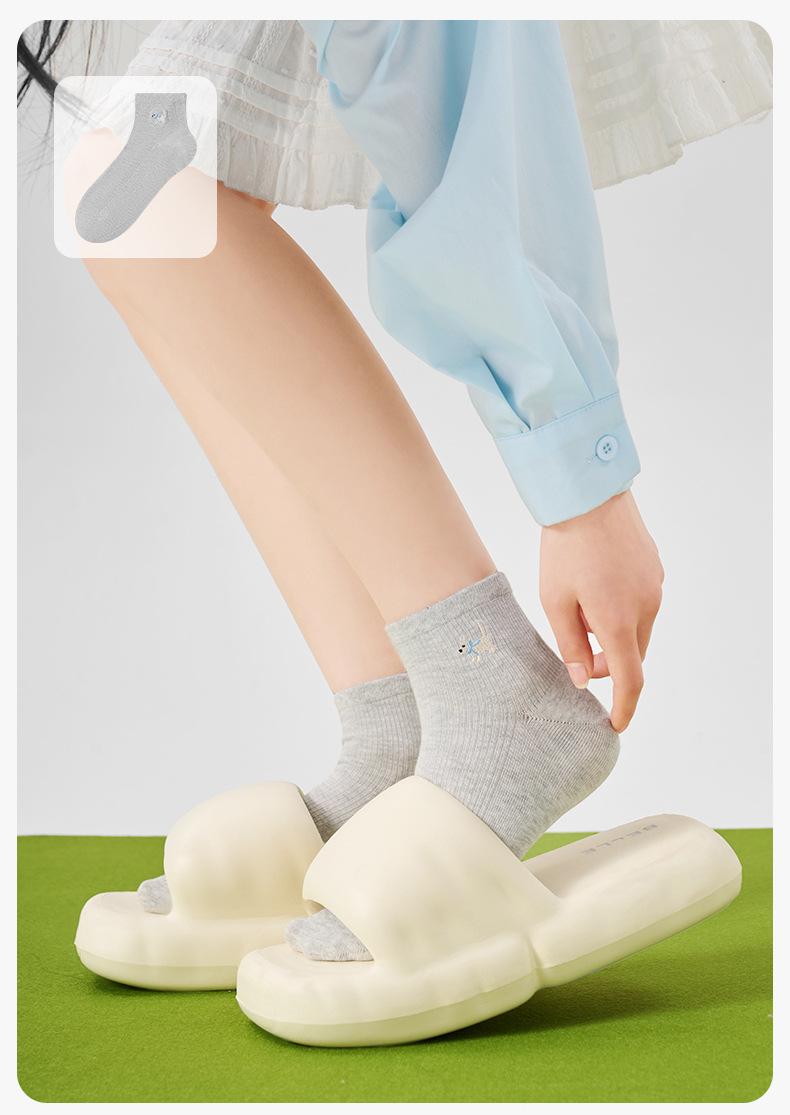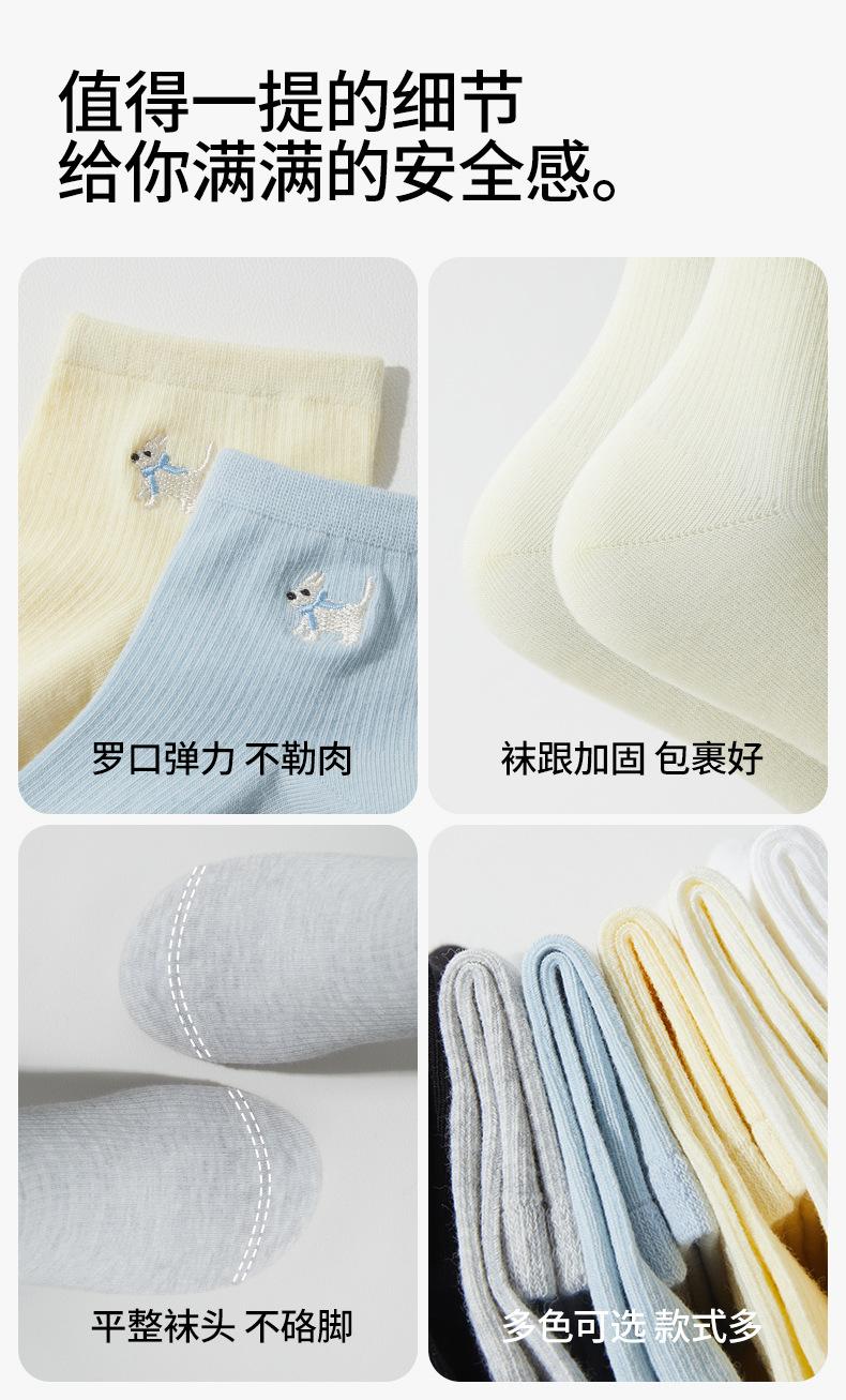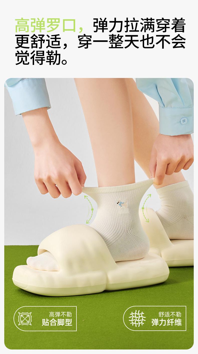Calcetines Bordados de Cachorros Mujer Verano Delgados Elásticos Amigables con la Piel a Cuadros Calcetines Cortos Algodón Sudor Transpirables Casuales Deportivos
