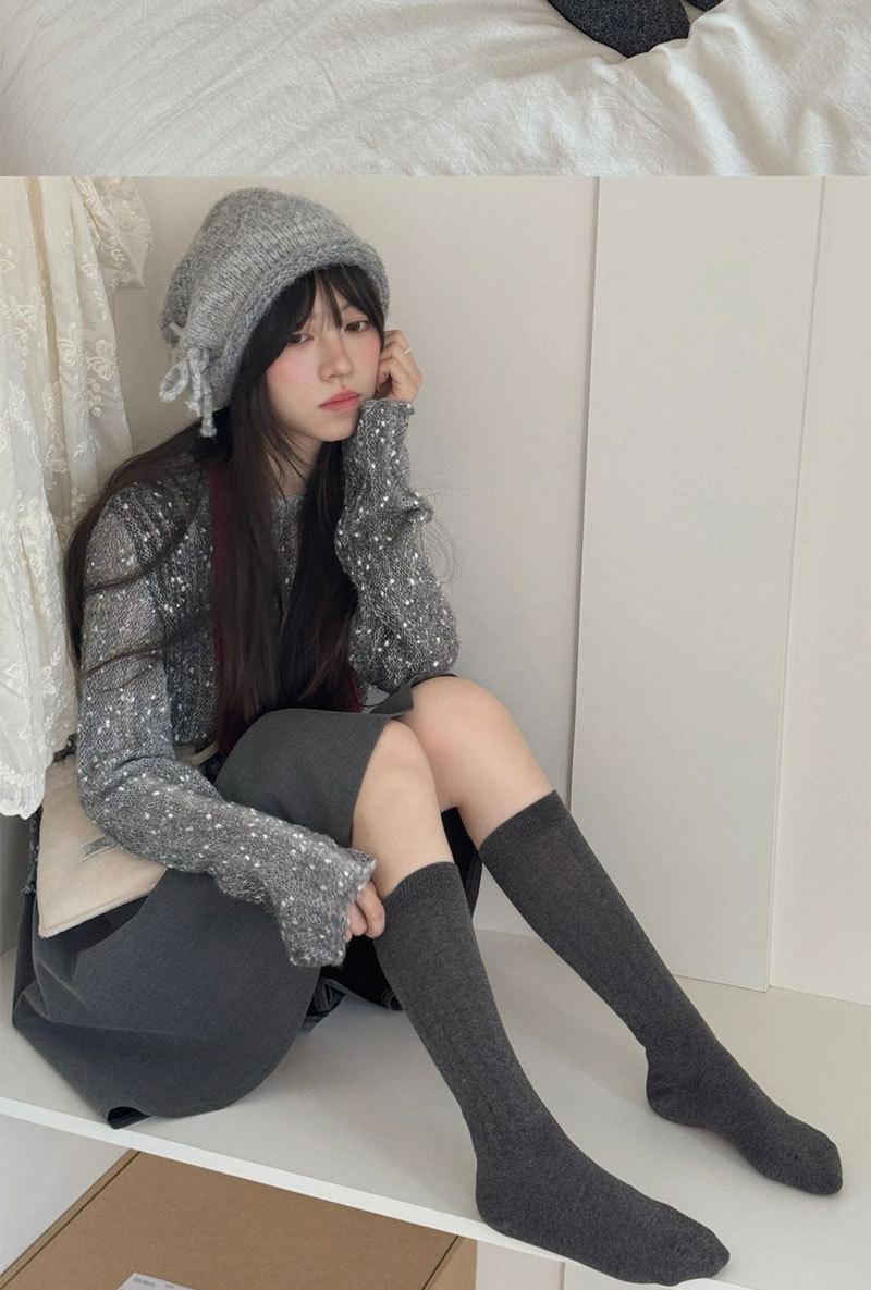 Nuevos Calcetines de Media Caña para Mujer Otoño/Invierno Estilo Coreano Miu Calcetines con Volantes Gris Estilo Escolar Japonés JK Calcetines hasta la Rodilla Al Por Mayor