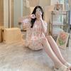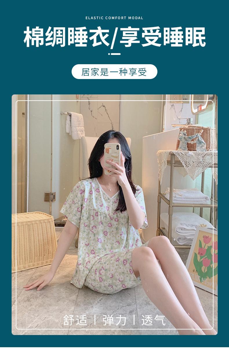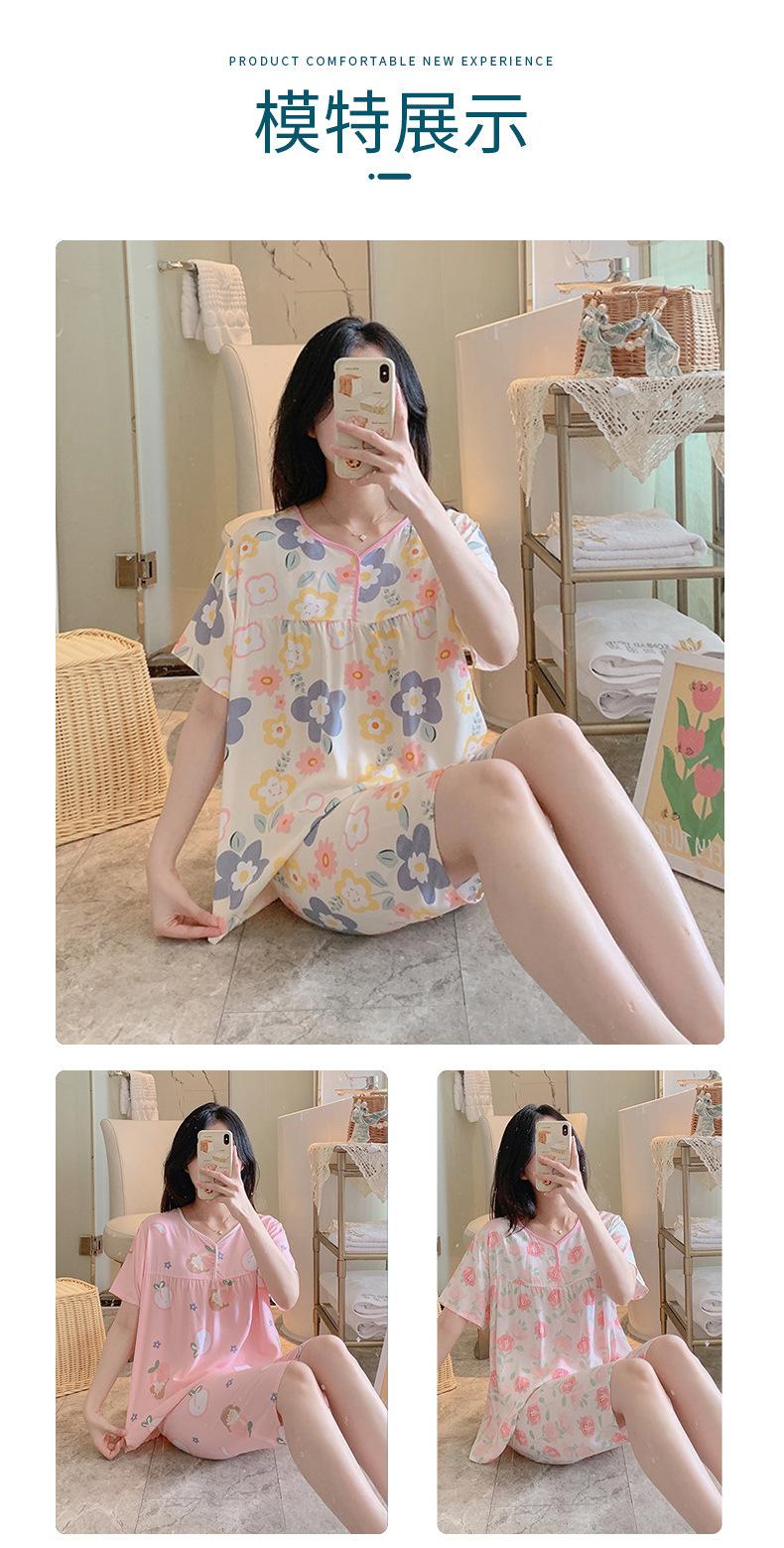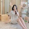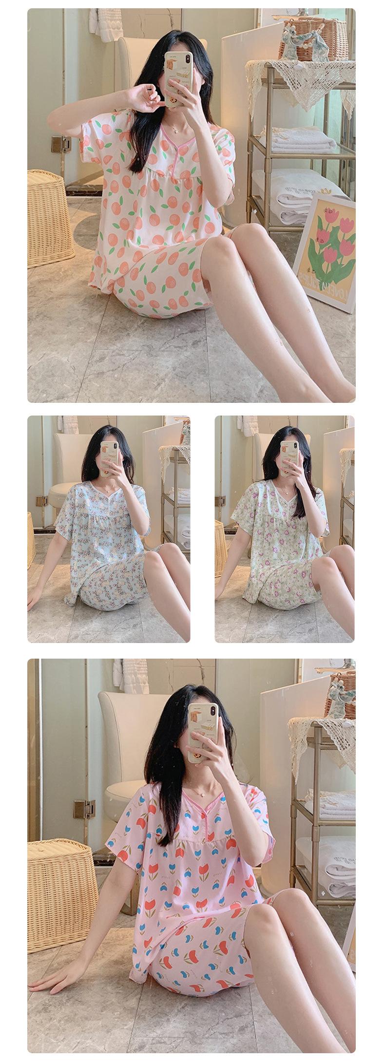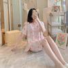 Pijamas de algodón y seda para mujer verano manga corta delgadas estampado ropa de casa estilo coreano chica dulce ropa exterior talla grande conjunto