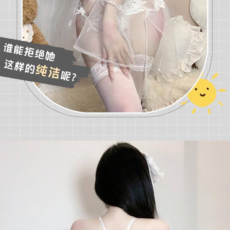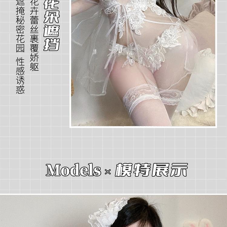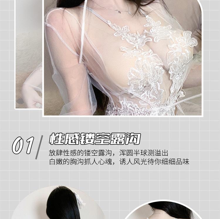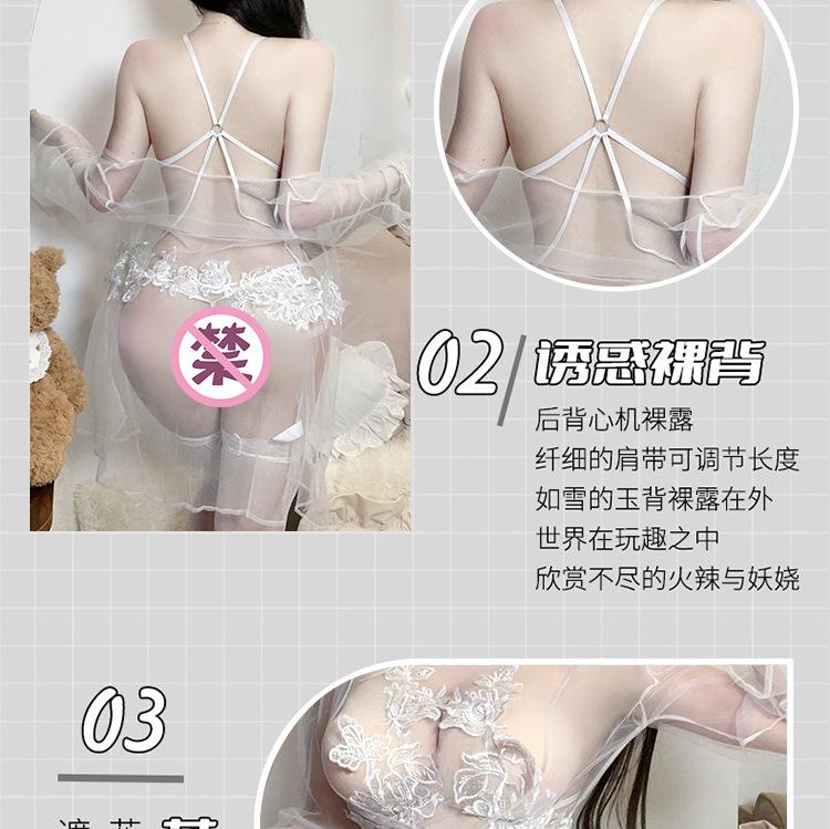 Apasionado Diversión Íntimos Bata Exterior de Tres Puntos para Mujer Encaje Transparente Diversión Sin Quitar Transparente Cita Tentación Conjunto de Pijama 8594