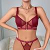 Cárdigan de Encaje con Cremallera Nuevo 2023 Ropa Interior Sexy Fina de Algodón Antivulto Conjunto de Sujetador de Tentación Europeo y Americano