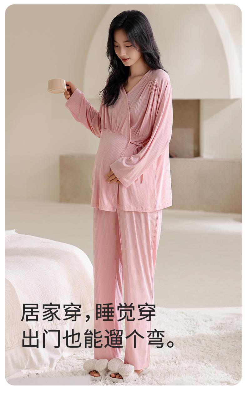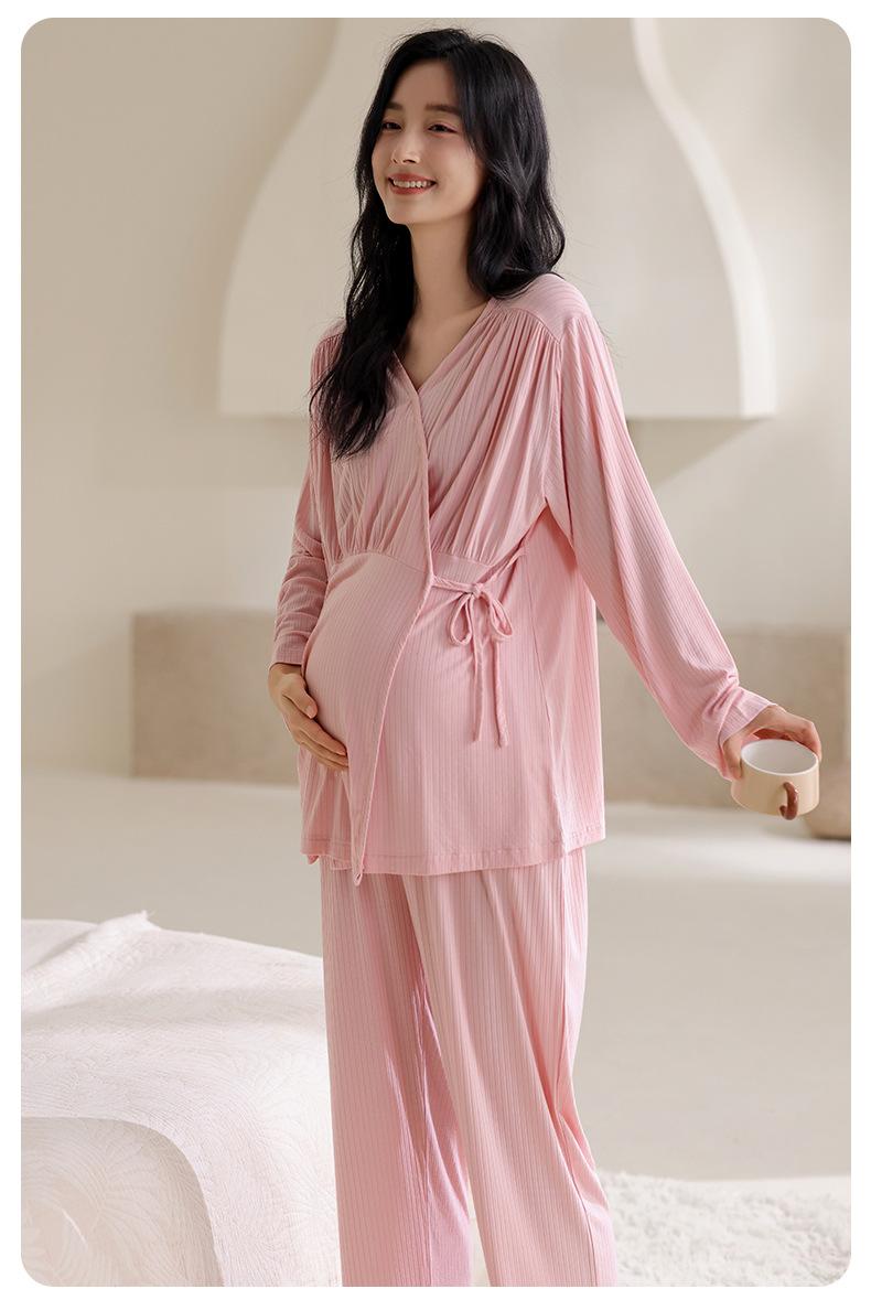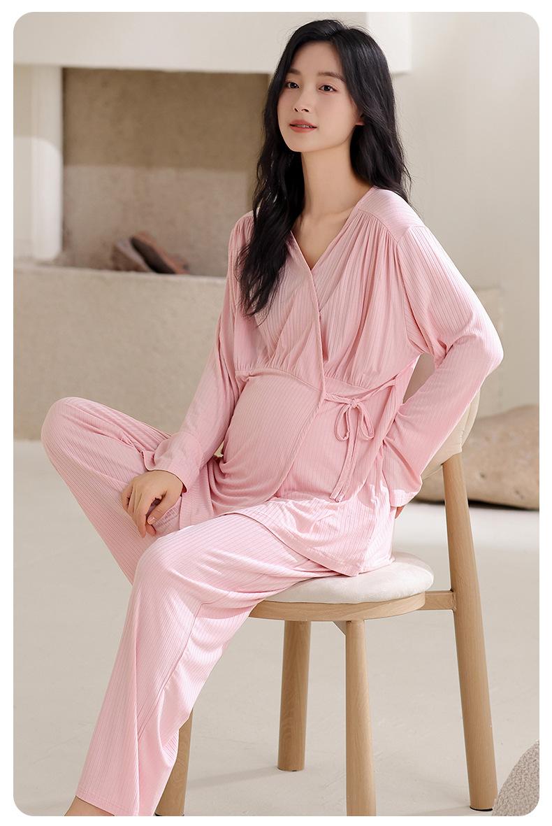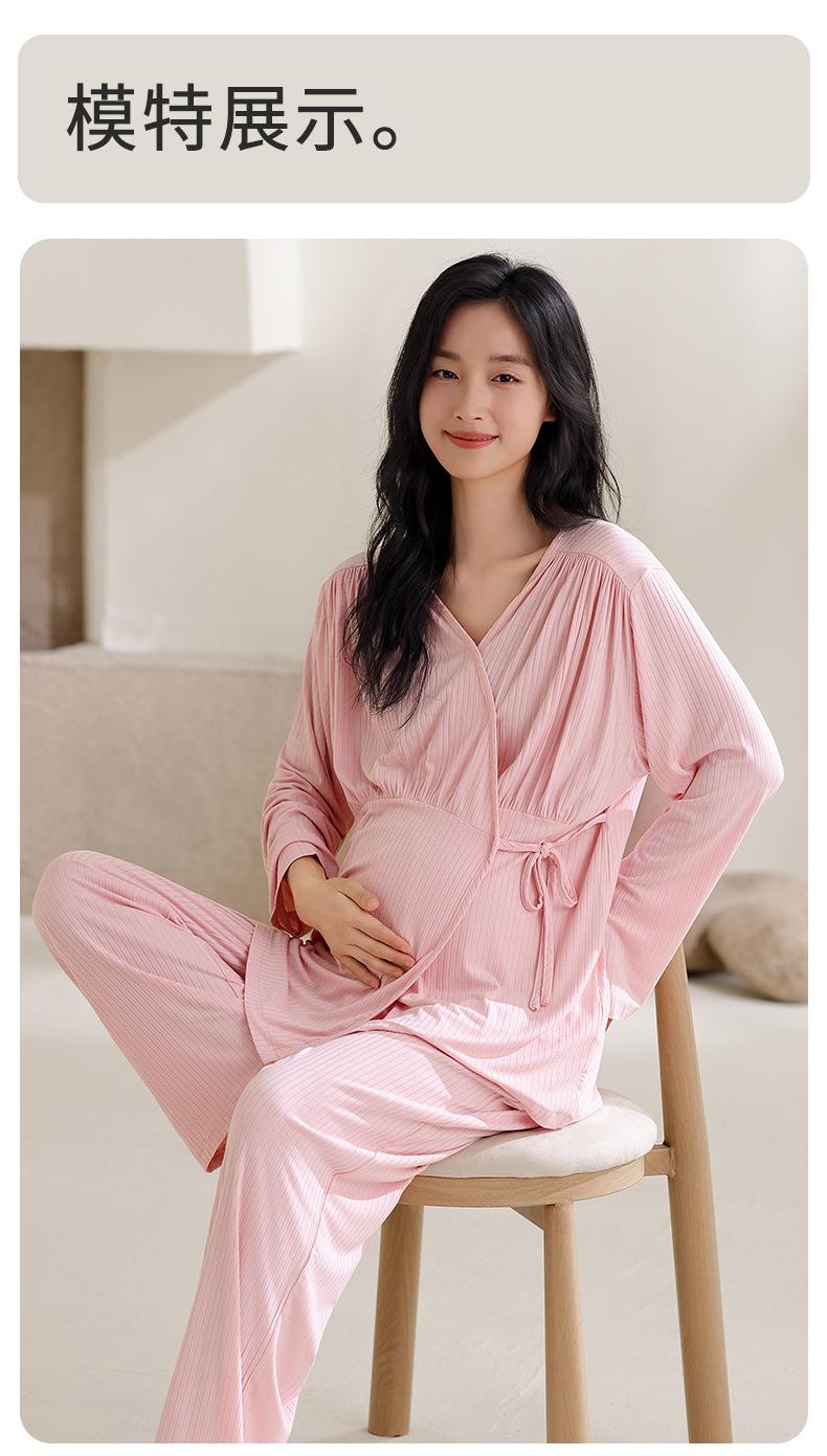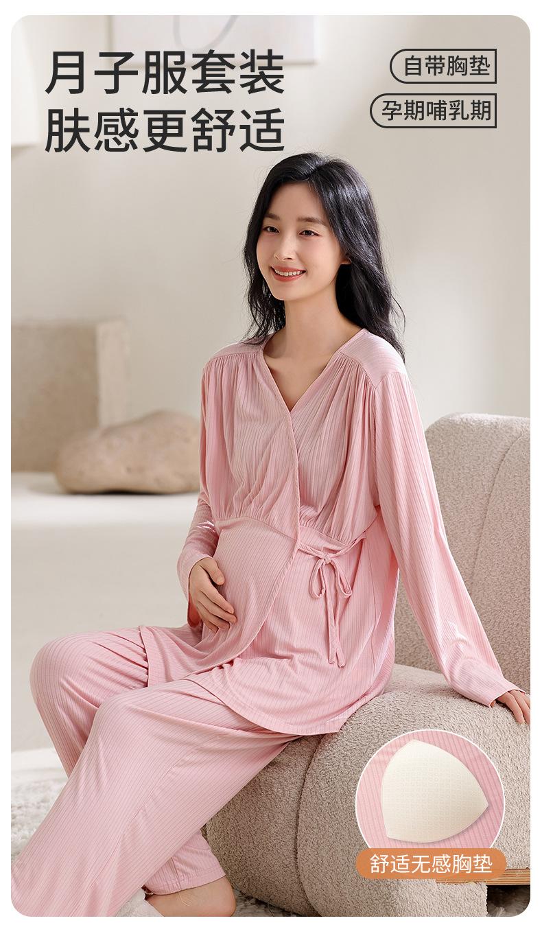Feliz Luna 2025 Primavera y Otoño Manga Larga Rayón con Almohadillas en el Busto Ropa de Maternidad Postparto Confinamiento Hogar Pijama de Lactancia