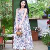 Camisón Floral sin Mangas Estilo Coreano Que Se Puede Usar Afuera Vestido con Tirantes Falda de Verano Delgada de Largo Medio Adelgazante para Casa de Mujer