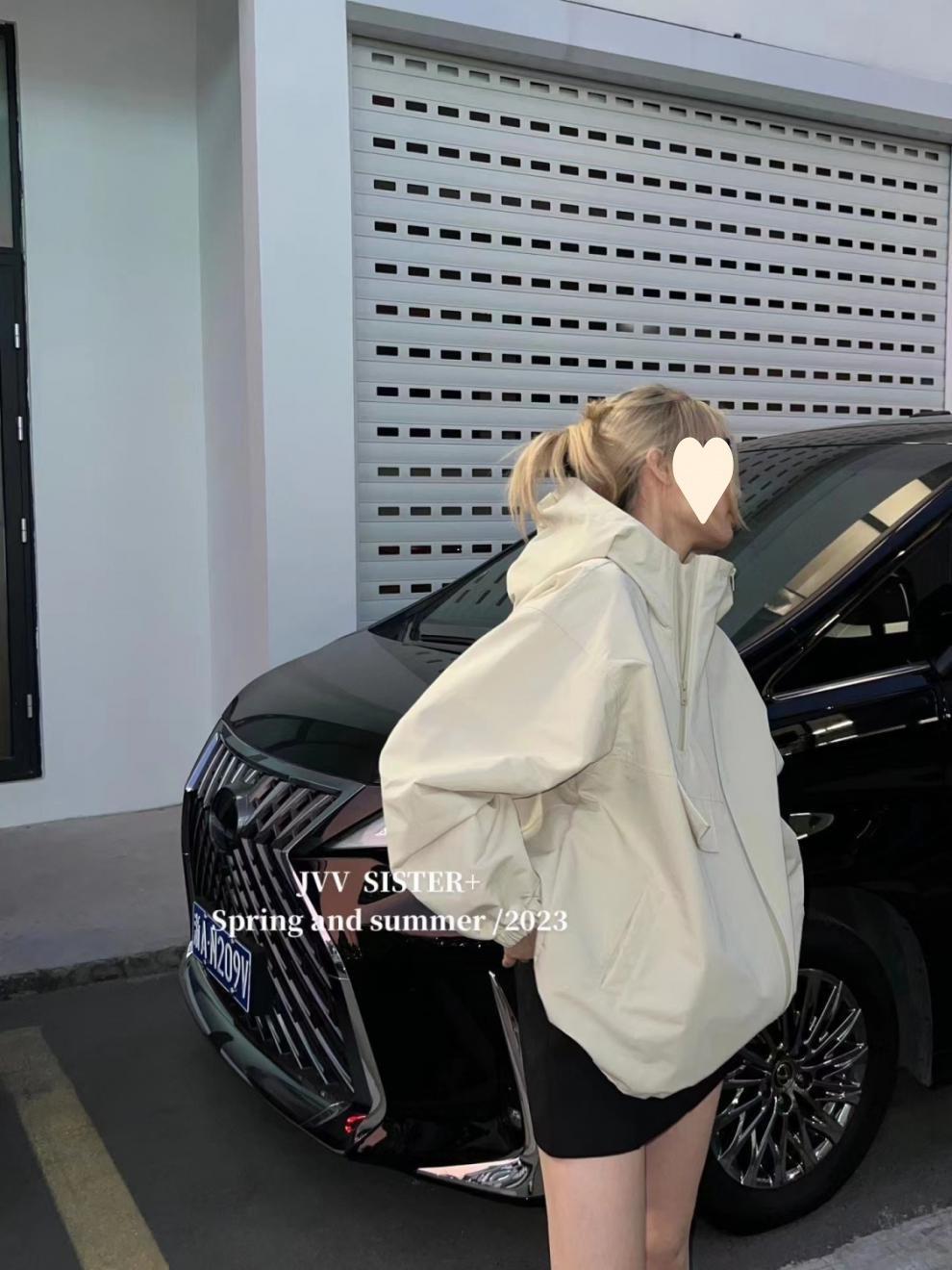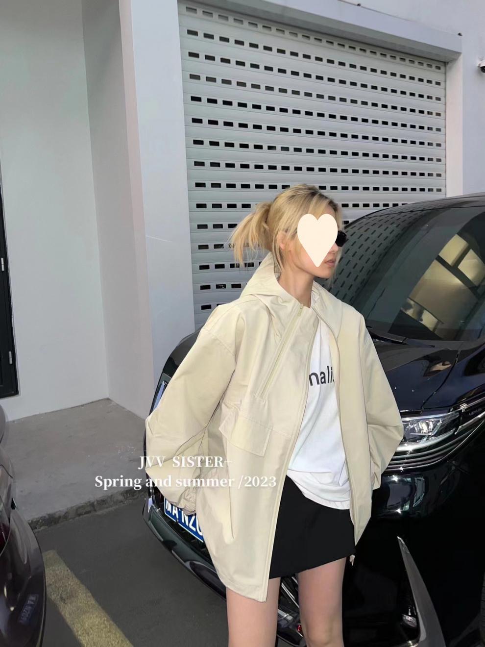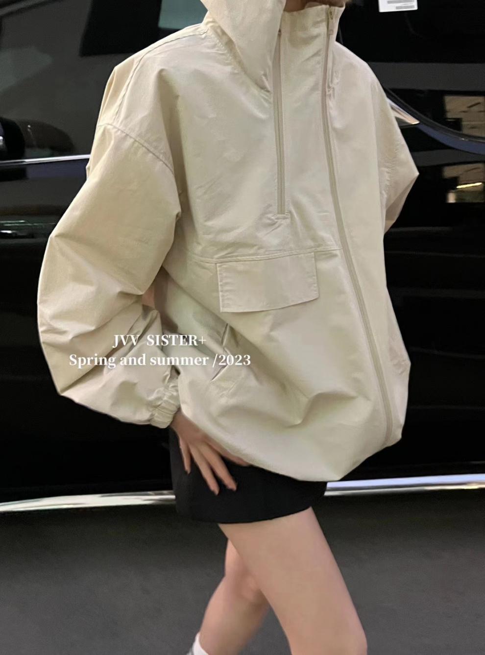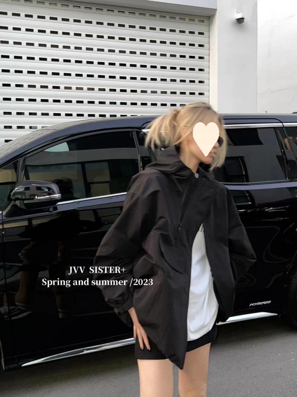 Chaqueta de longitud media con doble cremallera y capucha para mujer, nueva de primavera y verano 2023, holgada, adelgazante, transpirable, cortavientos, abrigo dulce y cool
