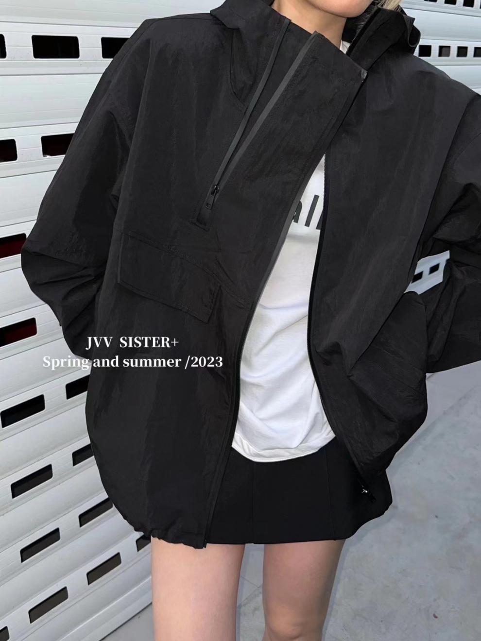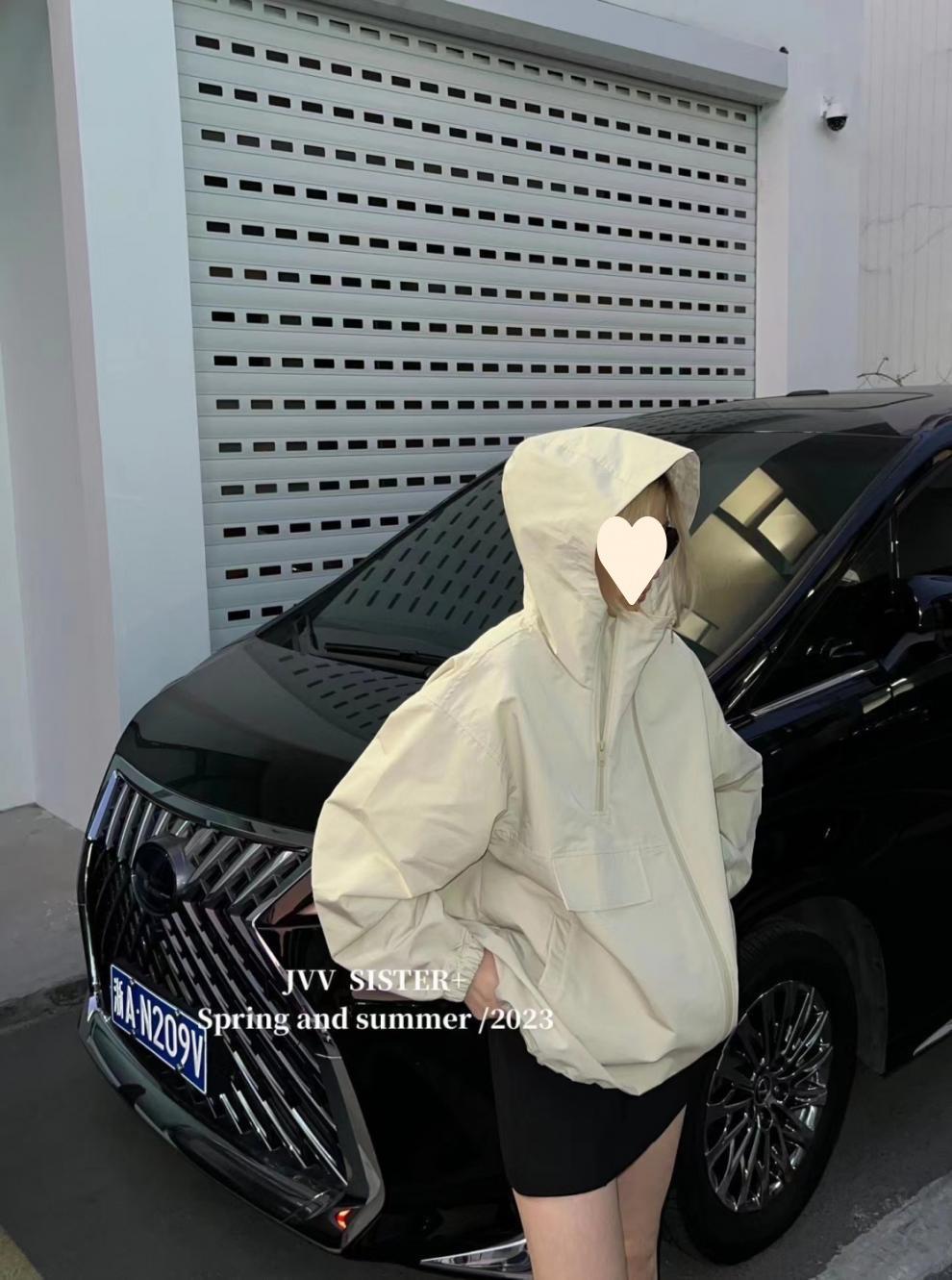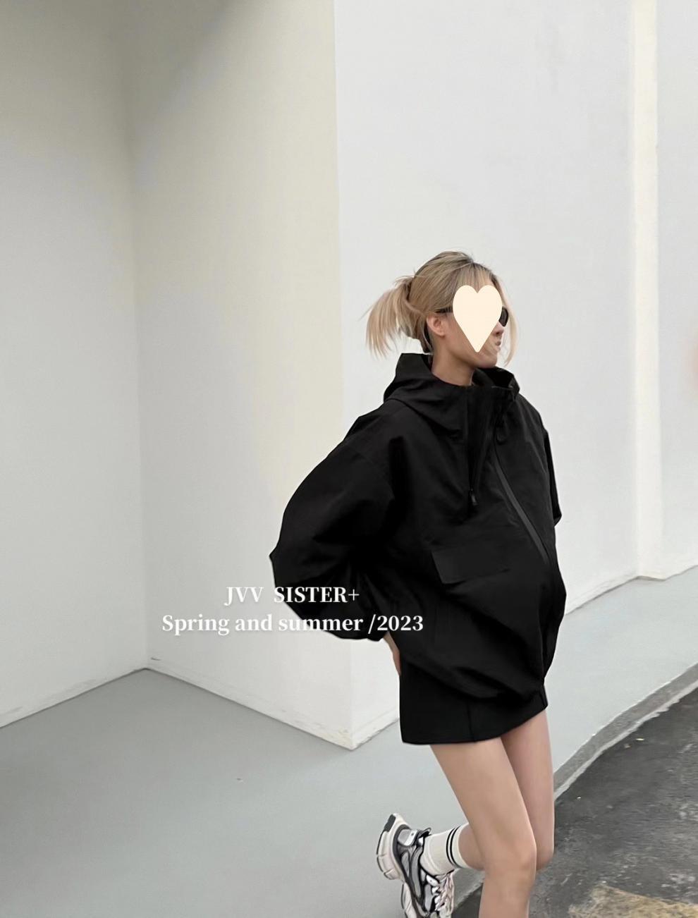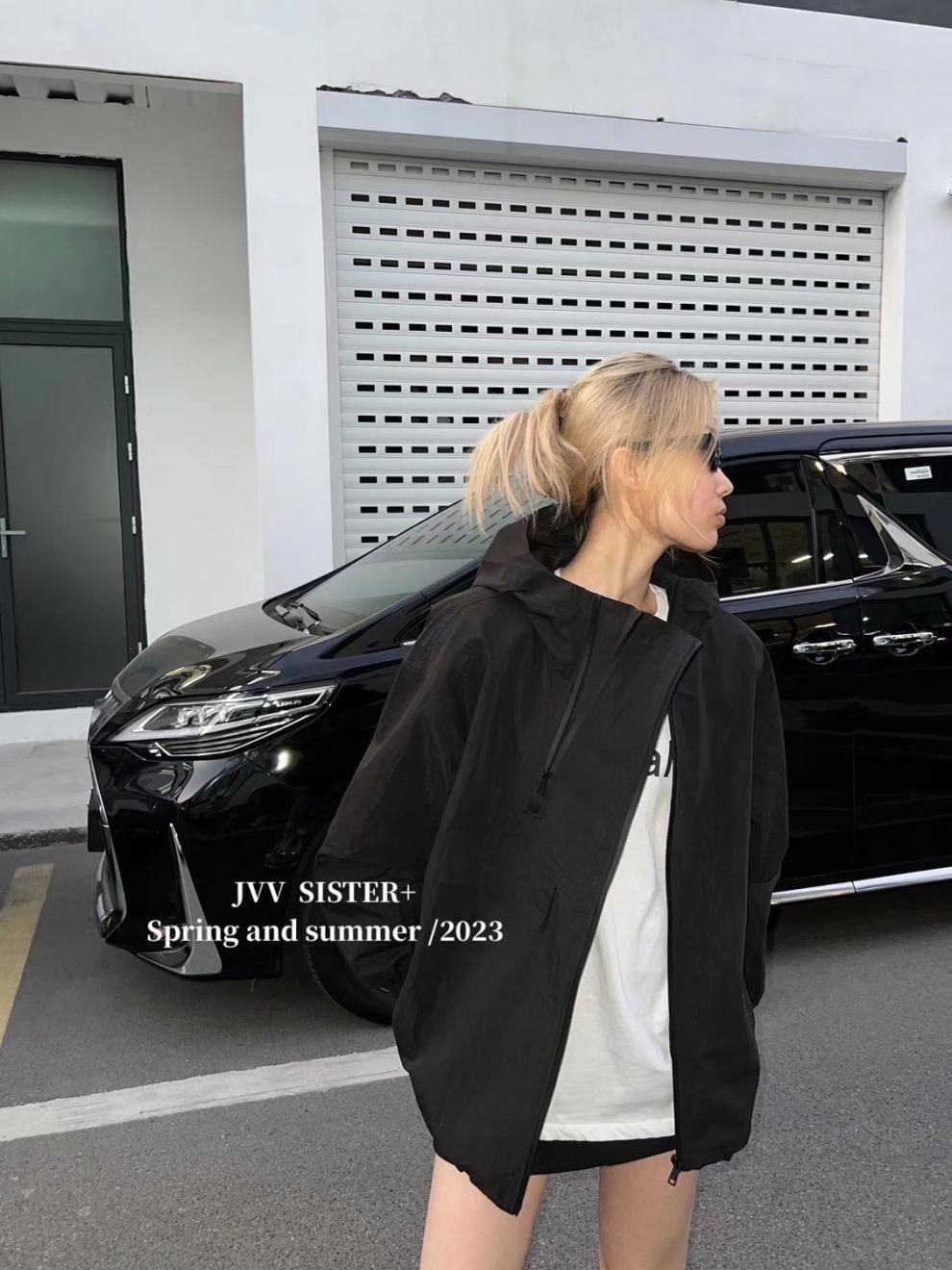 Chaqueta de longitud media con doble cremallera y capucha para mujer, nueva de primavera y verano 2023, holgada, adelgazante, transpirable, cortavientos, abrigo dulce y cool