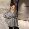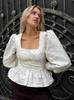 Verano 2024 Nuevo Estilo Coreano Cuello en V Manga Linterna Cintura Ajustada Camisa Blanca Casual para Mujer Top Chic Diseño Nicho