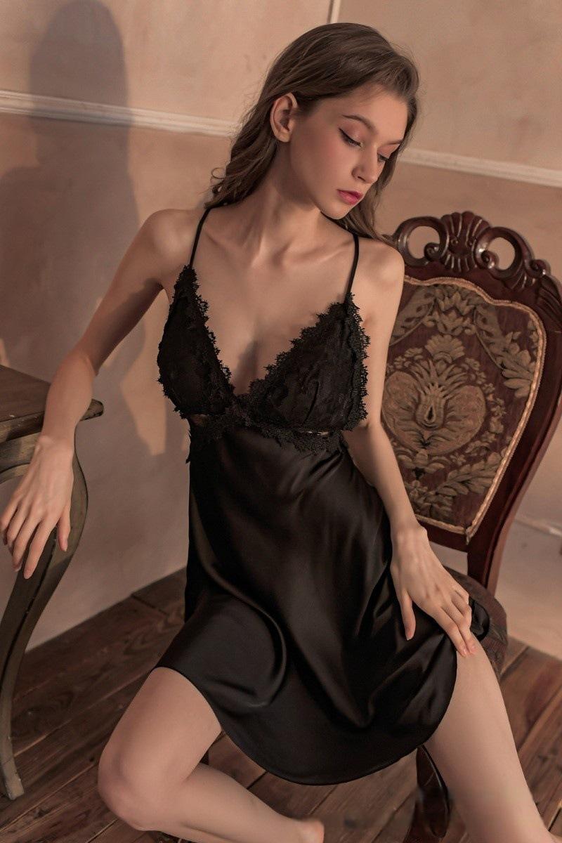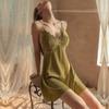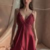 Red Desire Lencería Sexy Privada Camisola Escote V Profundo Deseo Puro Camisón Otoño e Invierno Satén Camisón Erótico para el Hogar
