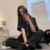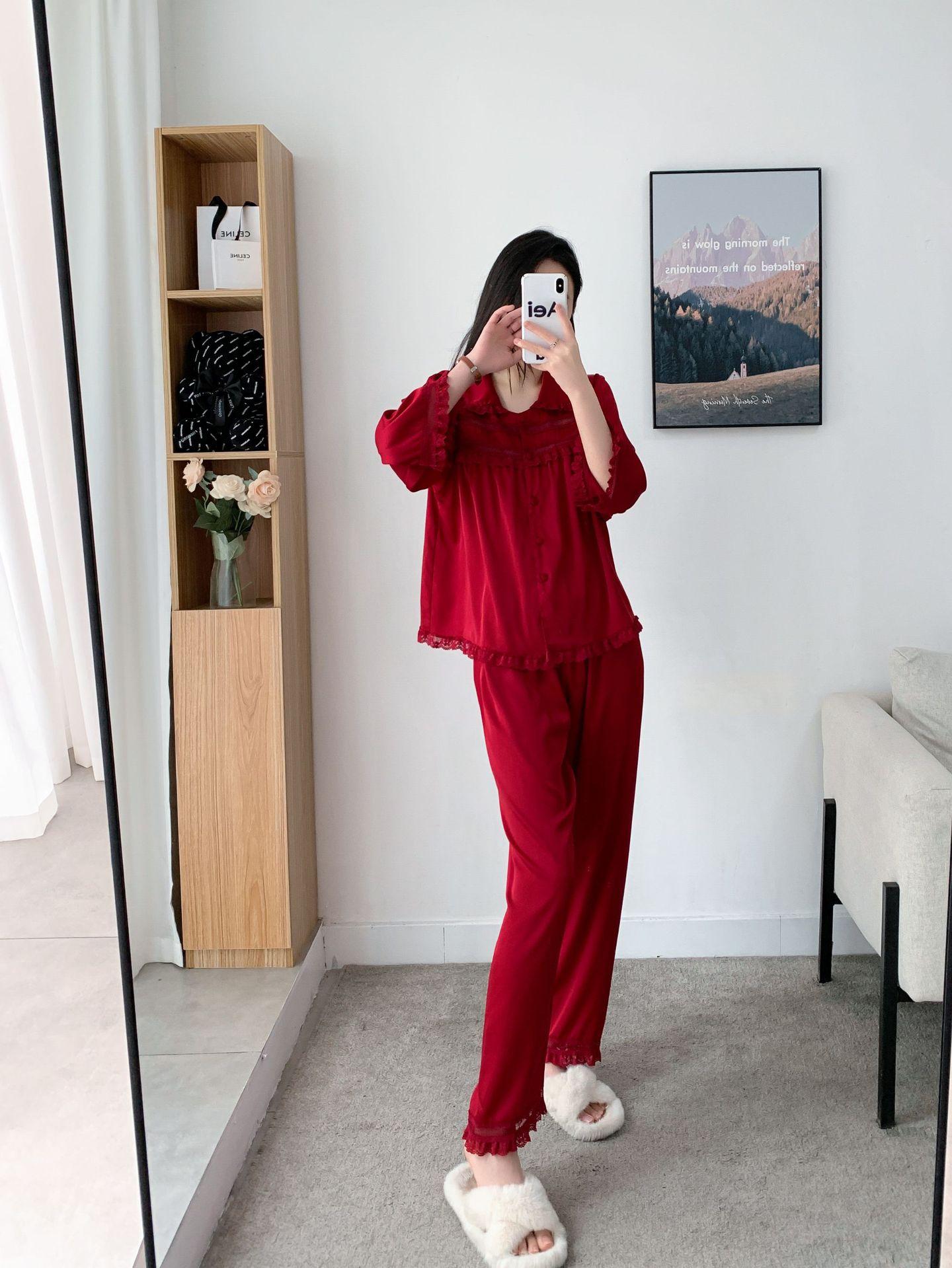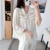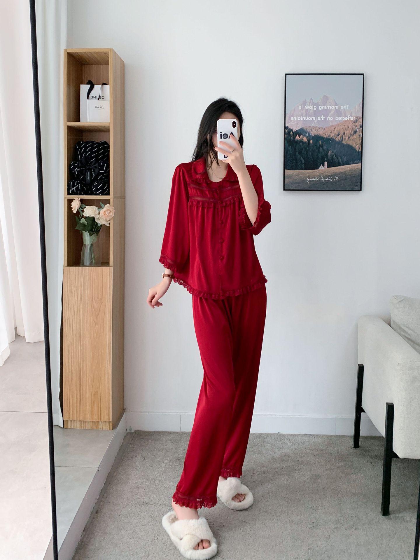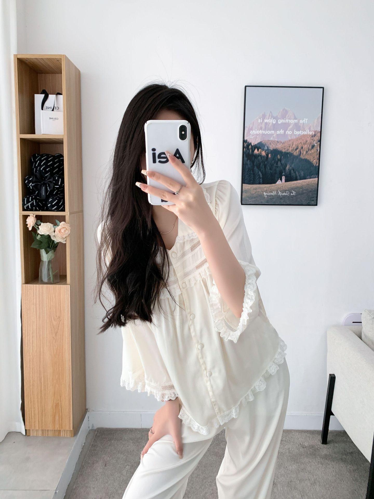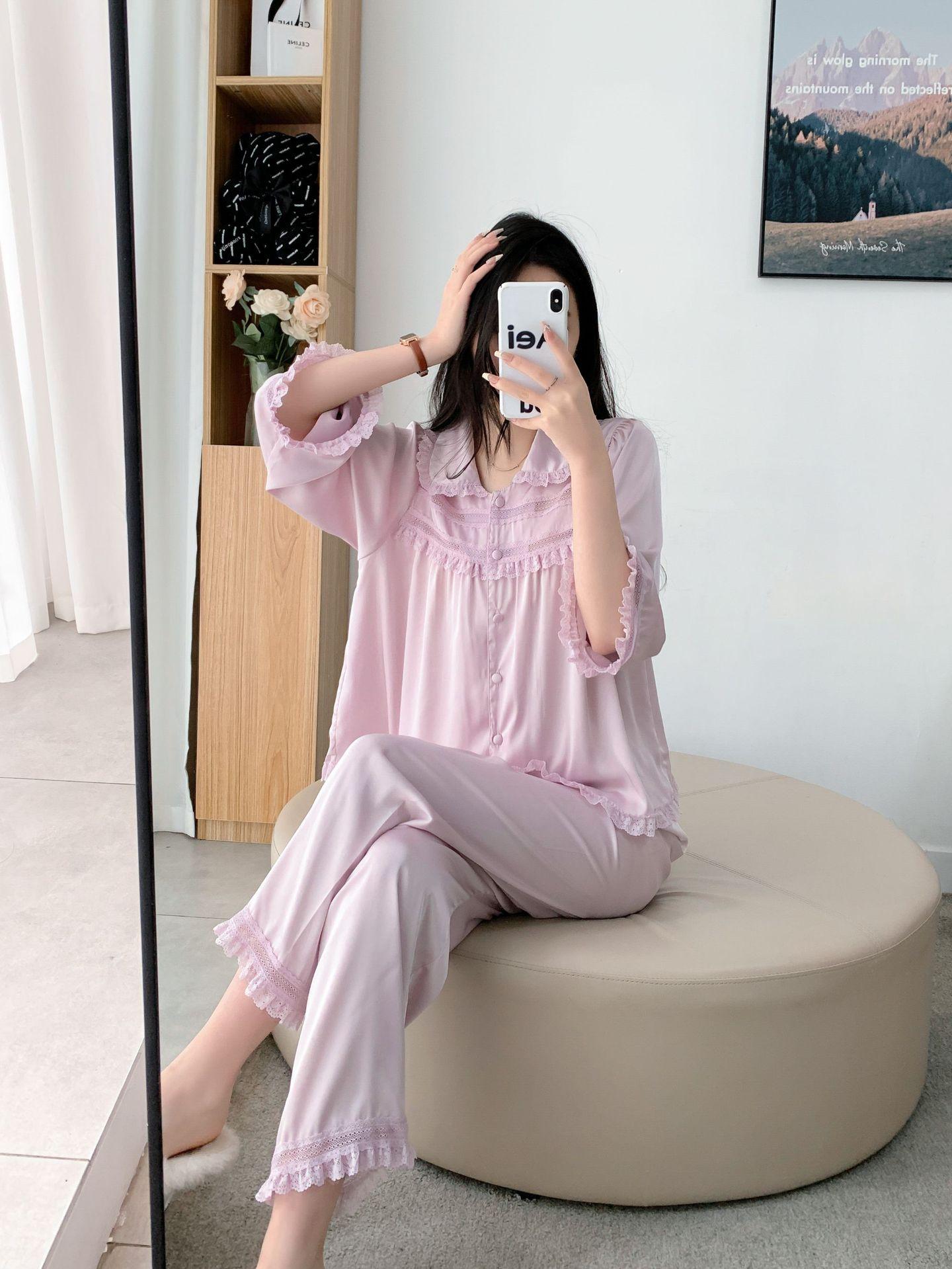 2025 Nuevo Pijama de Satén Estilo Corte Francés Seda Hielo para Mujer Primavera Verano Fino Manga Larga Pantalón Largo Set para Estar en Casa