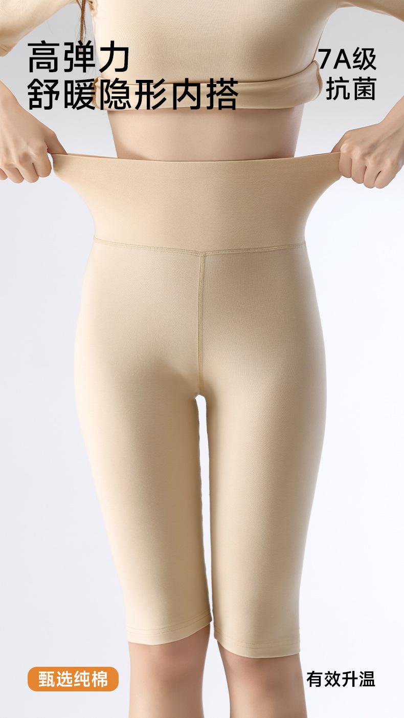 Leggings Térmicos de Algodón Puro de Cinco Puntos Otoño Invierno para Mujer Cintura Alta Transpirables Control de Abdomen Protección de Cintura Abdomen Cálido Ropa Interior Pantalones de Otoño Pantalones Tiburón