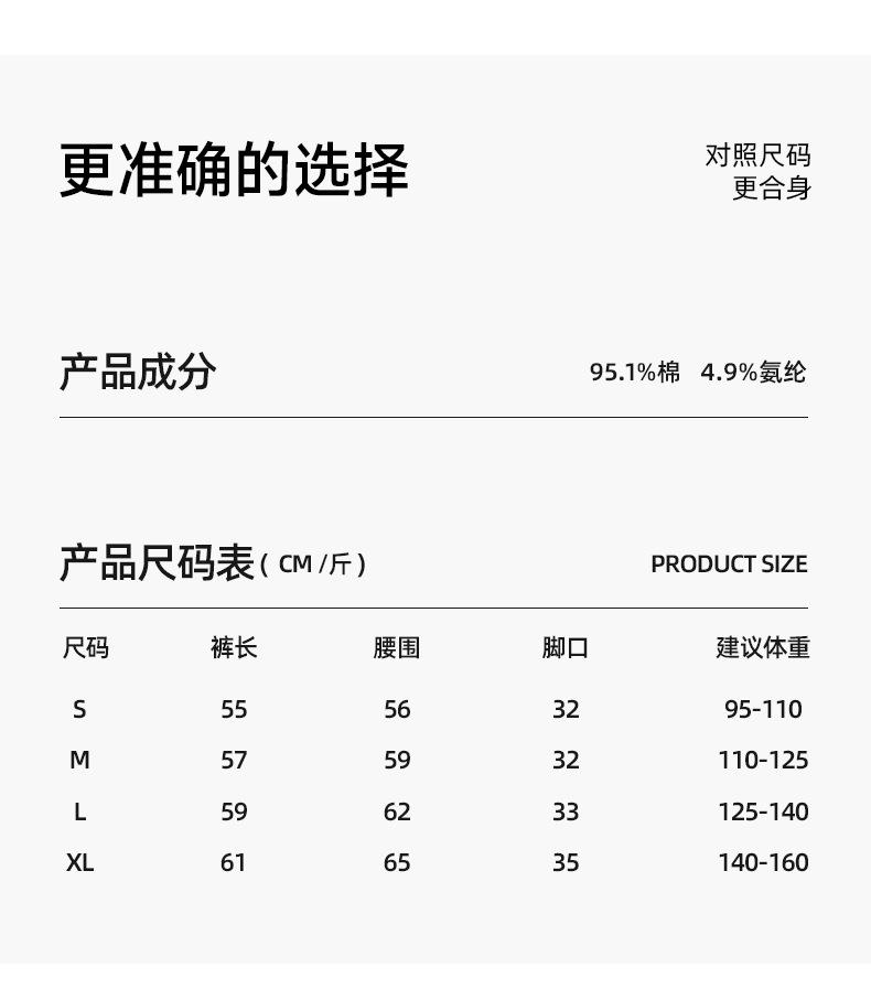 S (suitable for 95-110 jin), M (suitable for 110-125 pounds), L (suitable for 125-140 jin), XL (suitable for 140-160 pounds)