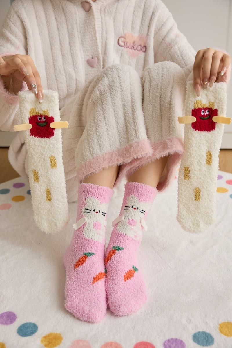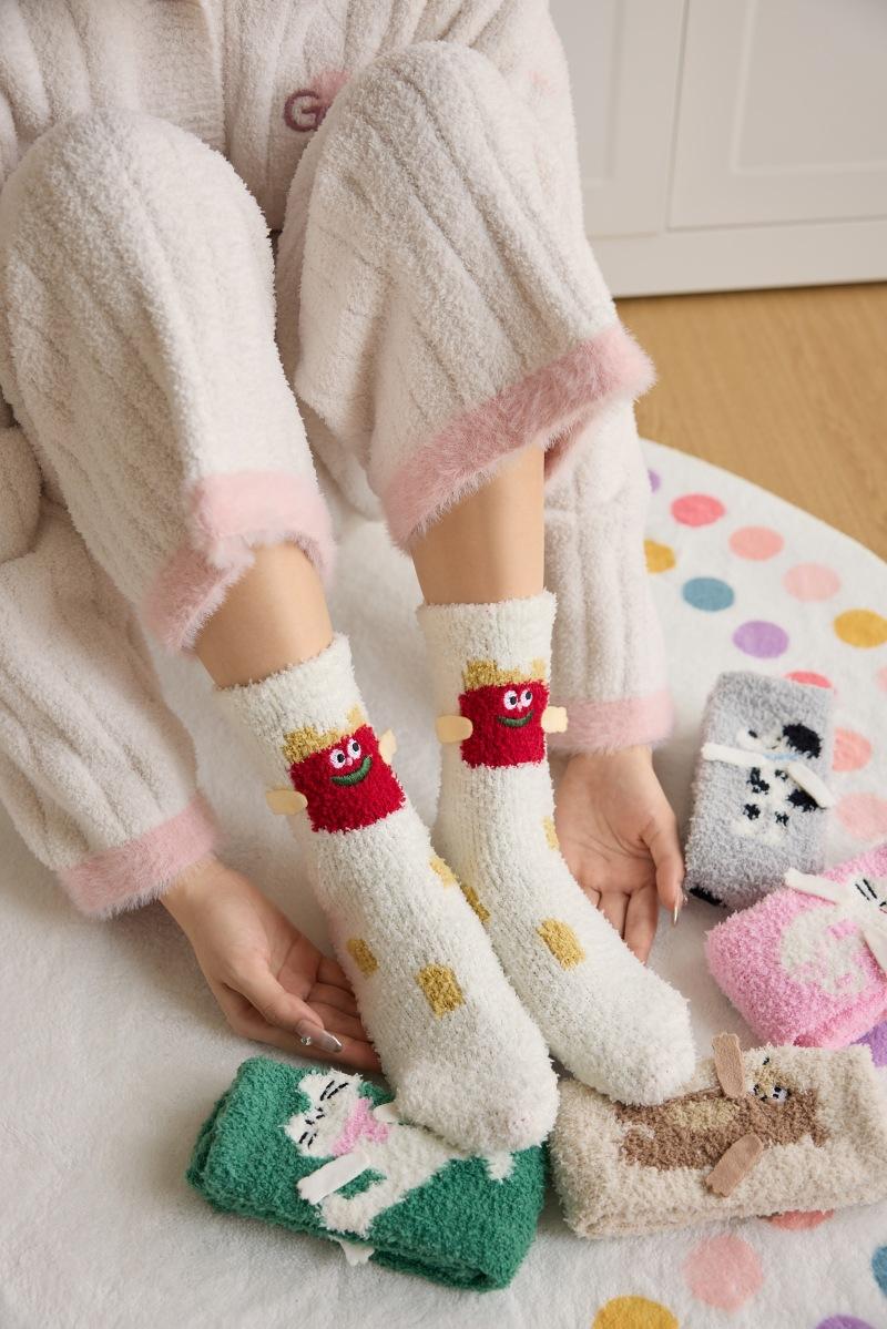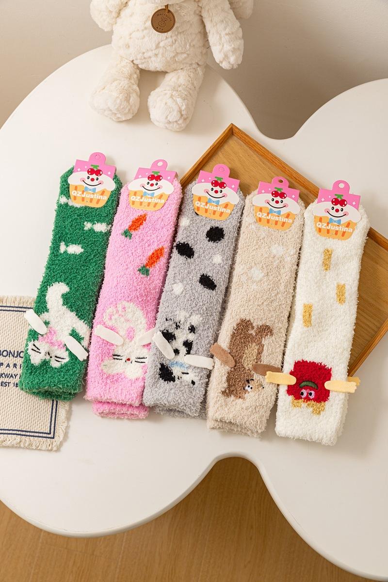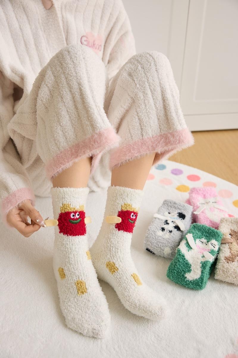 Calcetines de piso de forro polar de coral otoño e invierno nuevos calcetines lindos calcetines largos para dormir de mujer calcetines cálidos de felpa calcetines para casa de media pantorrilla